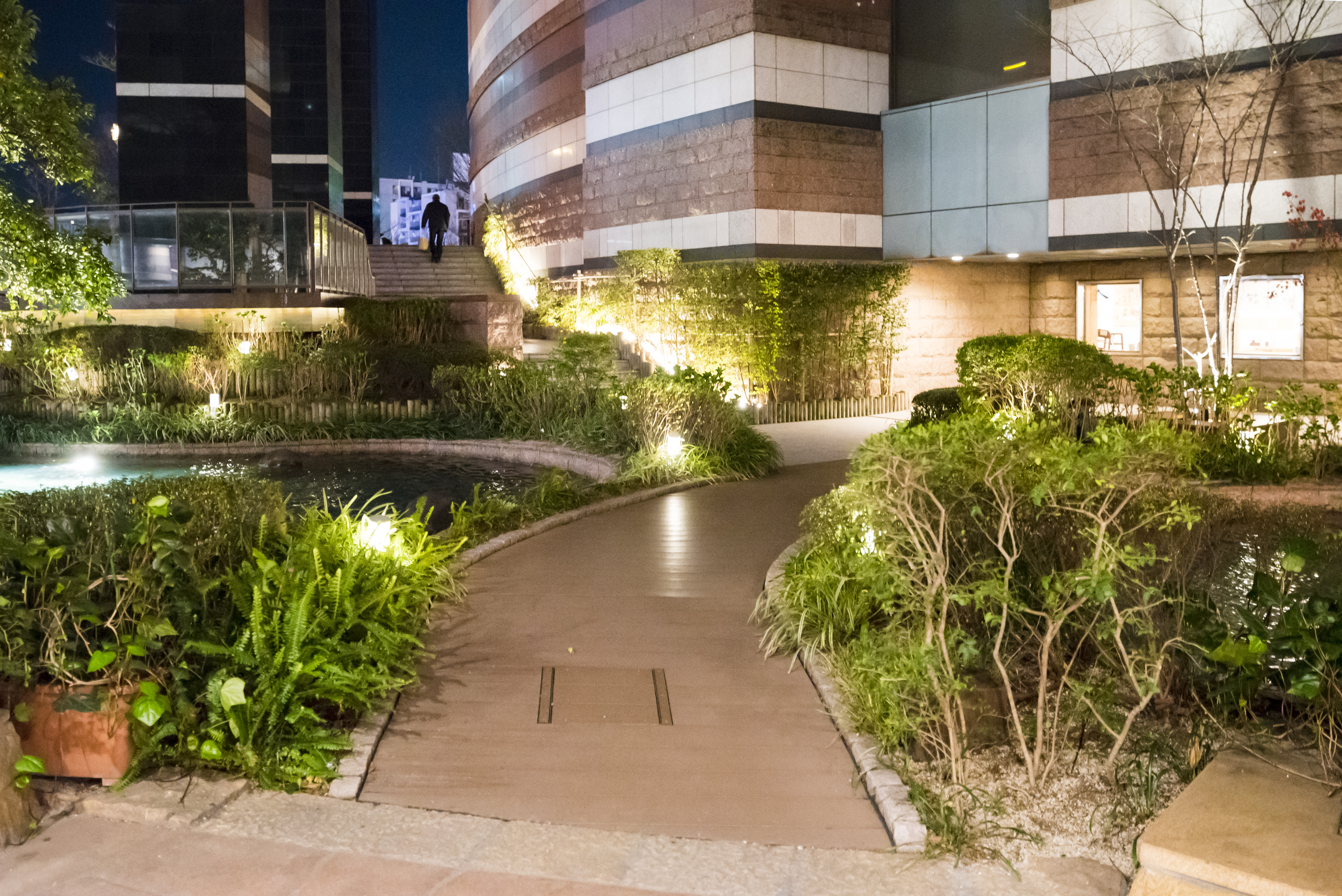 건축물이 양쪽에서 협곡을 만들고 아래에는 수공간과 각종 조경들이 있네요.