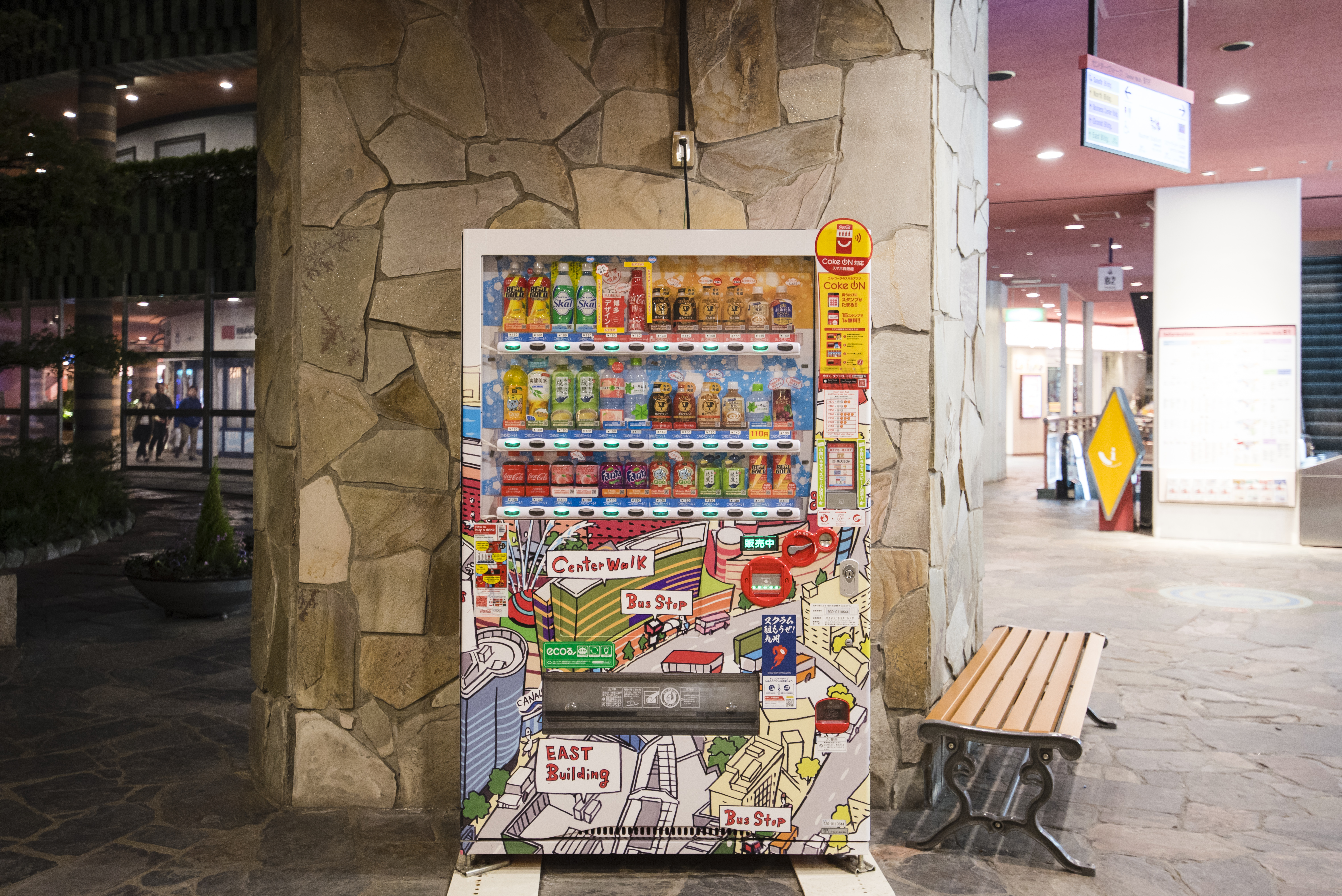 여기 자판기는 더 특별하네요. 캐널시티 주변을 그림으로 그려놓은 것이 아닐까요? ㅎㅎ