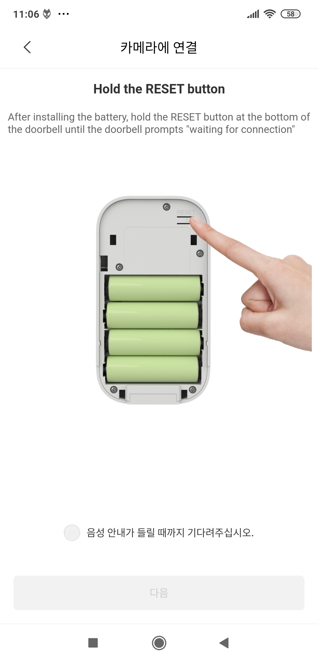 이 도어벨 시리즈는 국내에 정식 출시한 것이 아니라서 대한민국으로 설정하면 기기 연결을 지원하지 않는다 하네요.