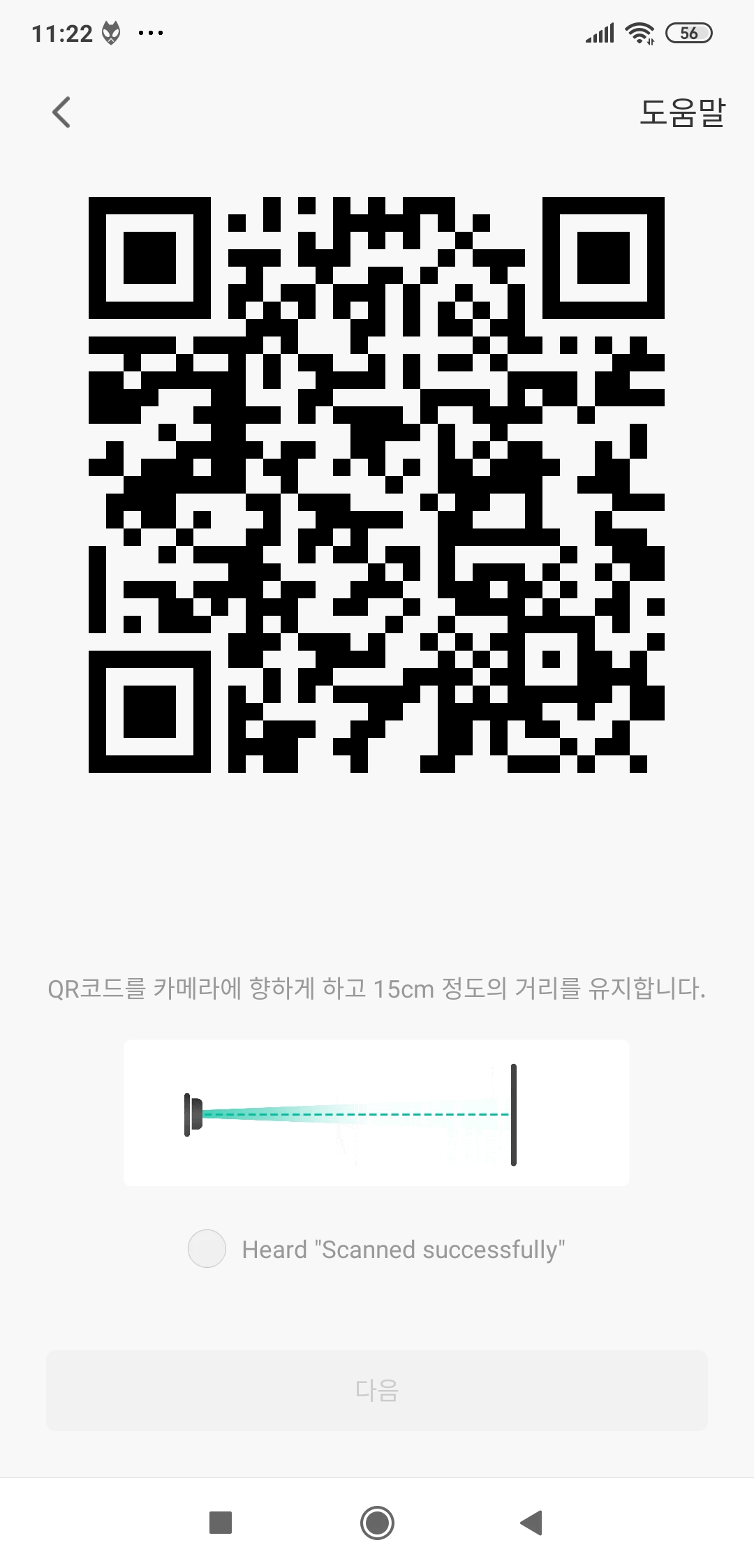 마지막 단계는 도어벨의 카메라 부분을 스마트폰 화면을 비추어서 QR코드를 읽게 하는 겁니다.
