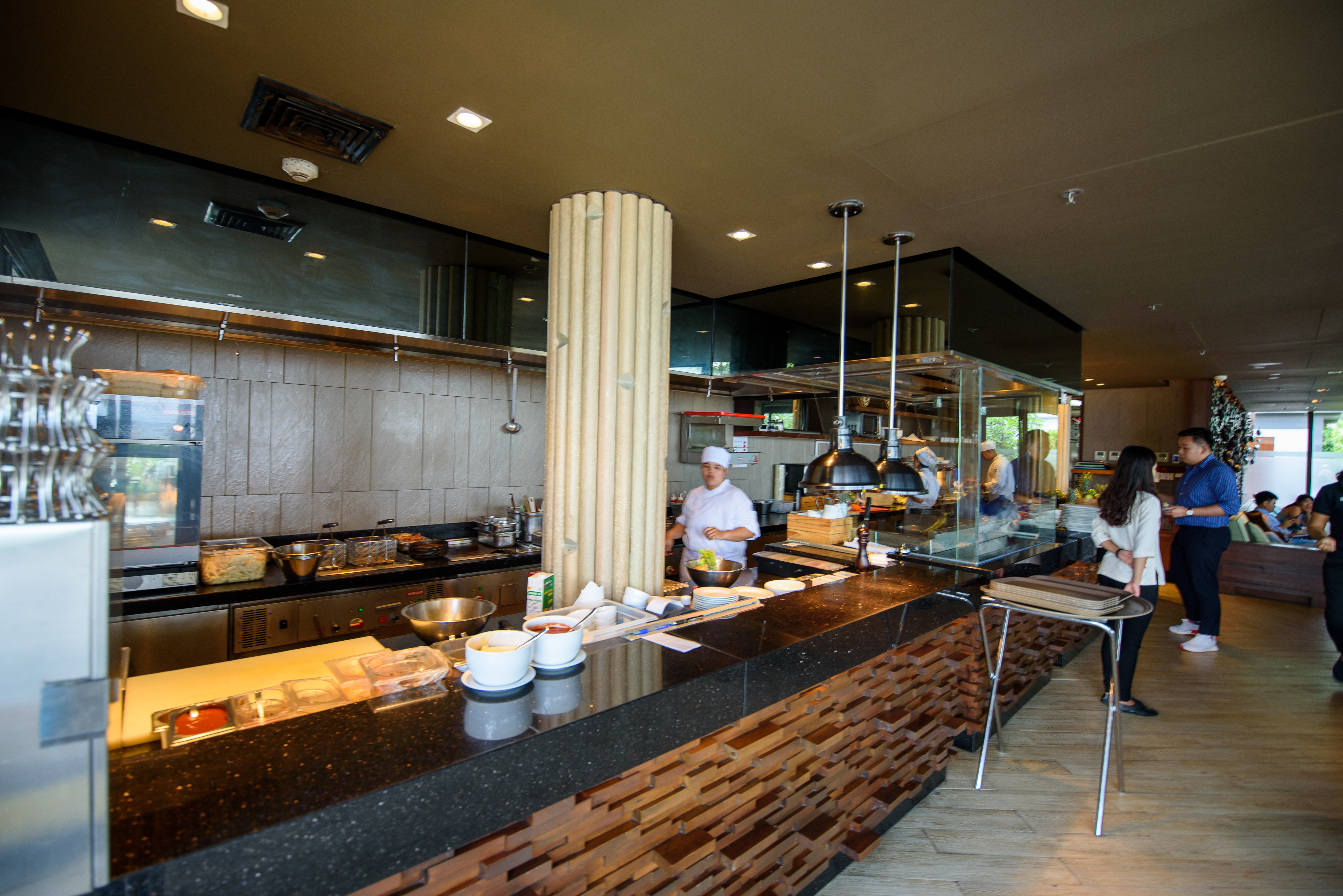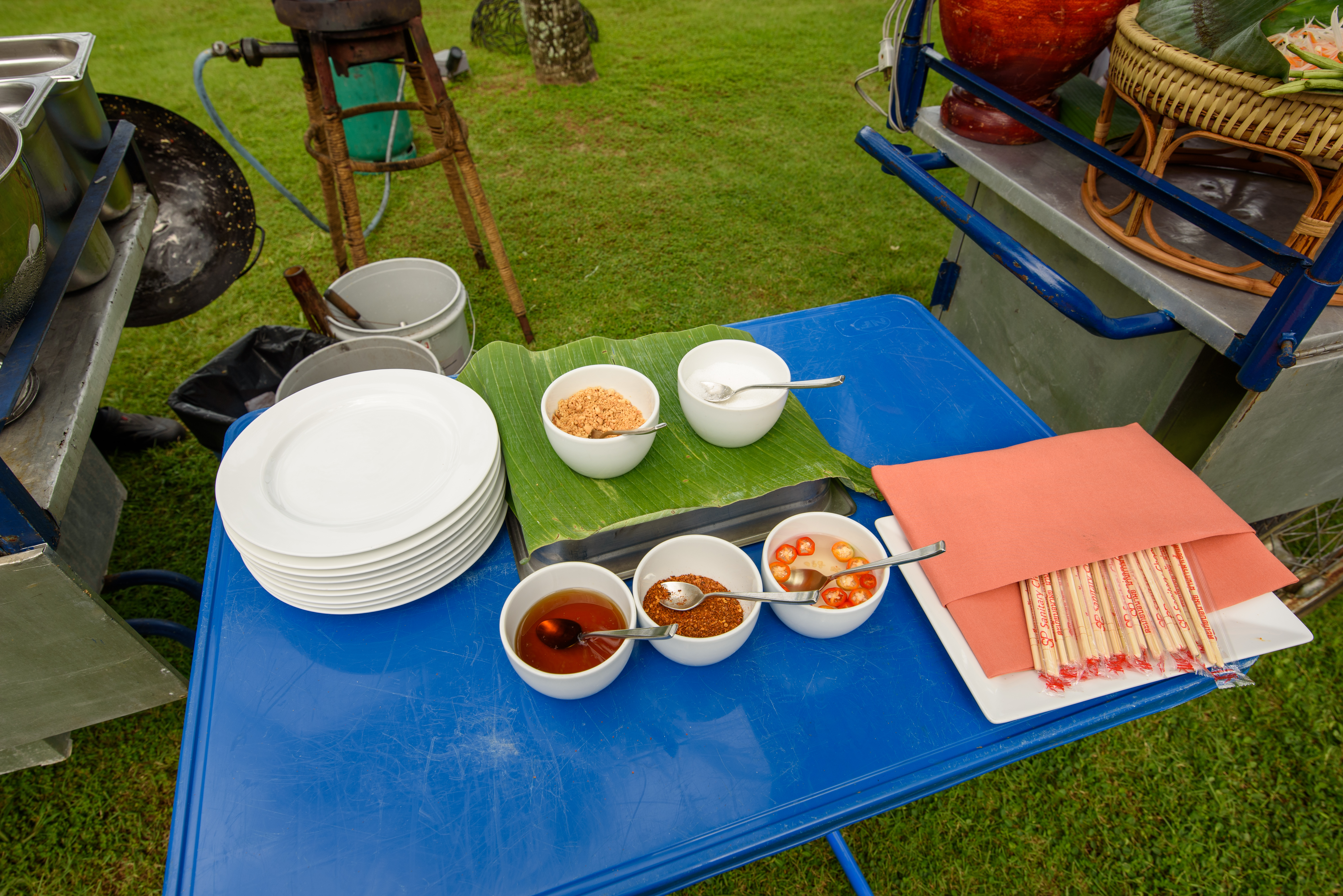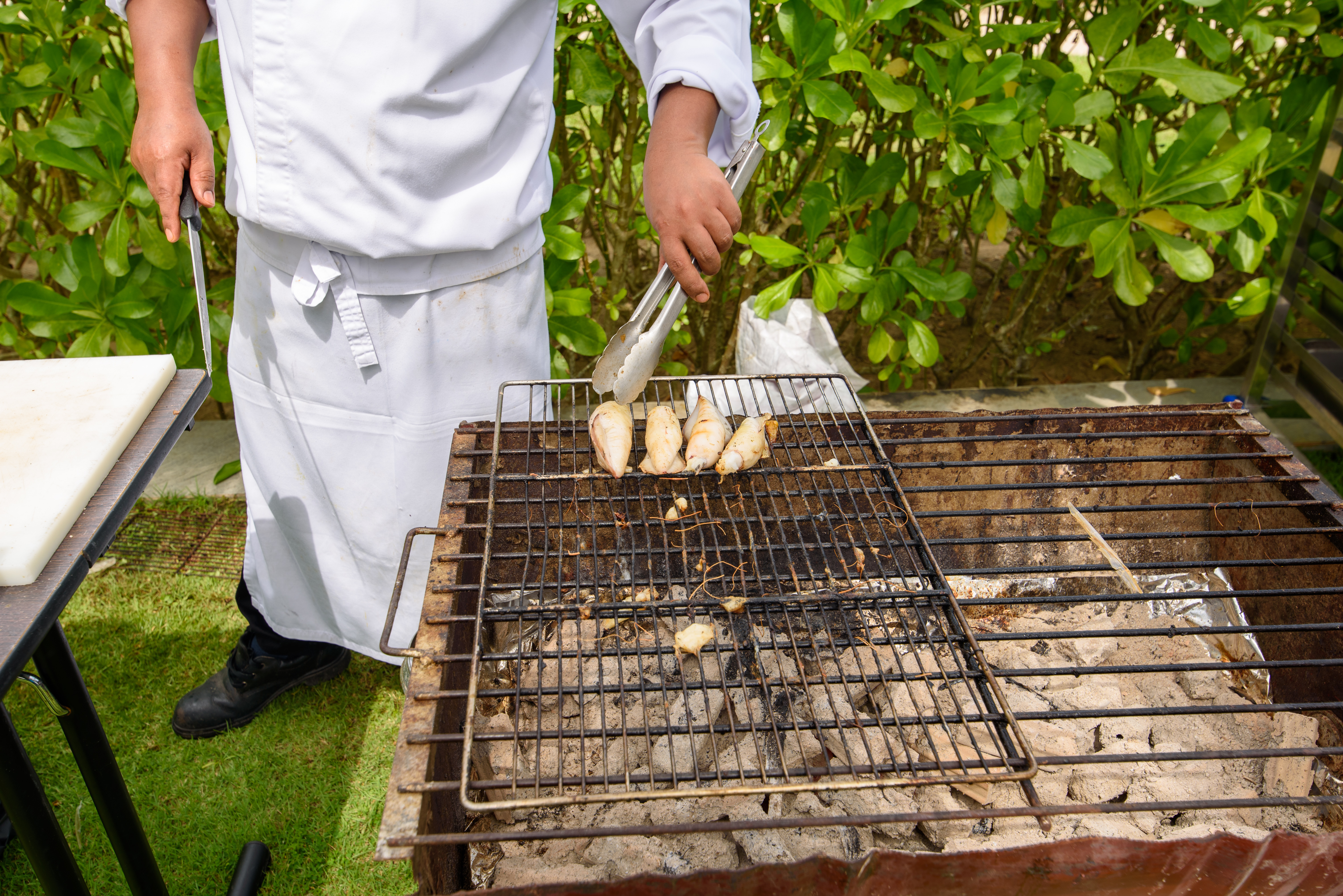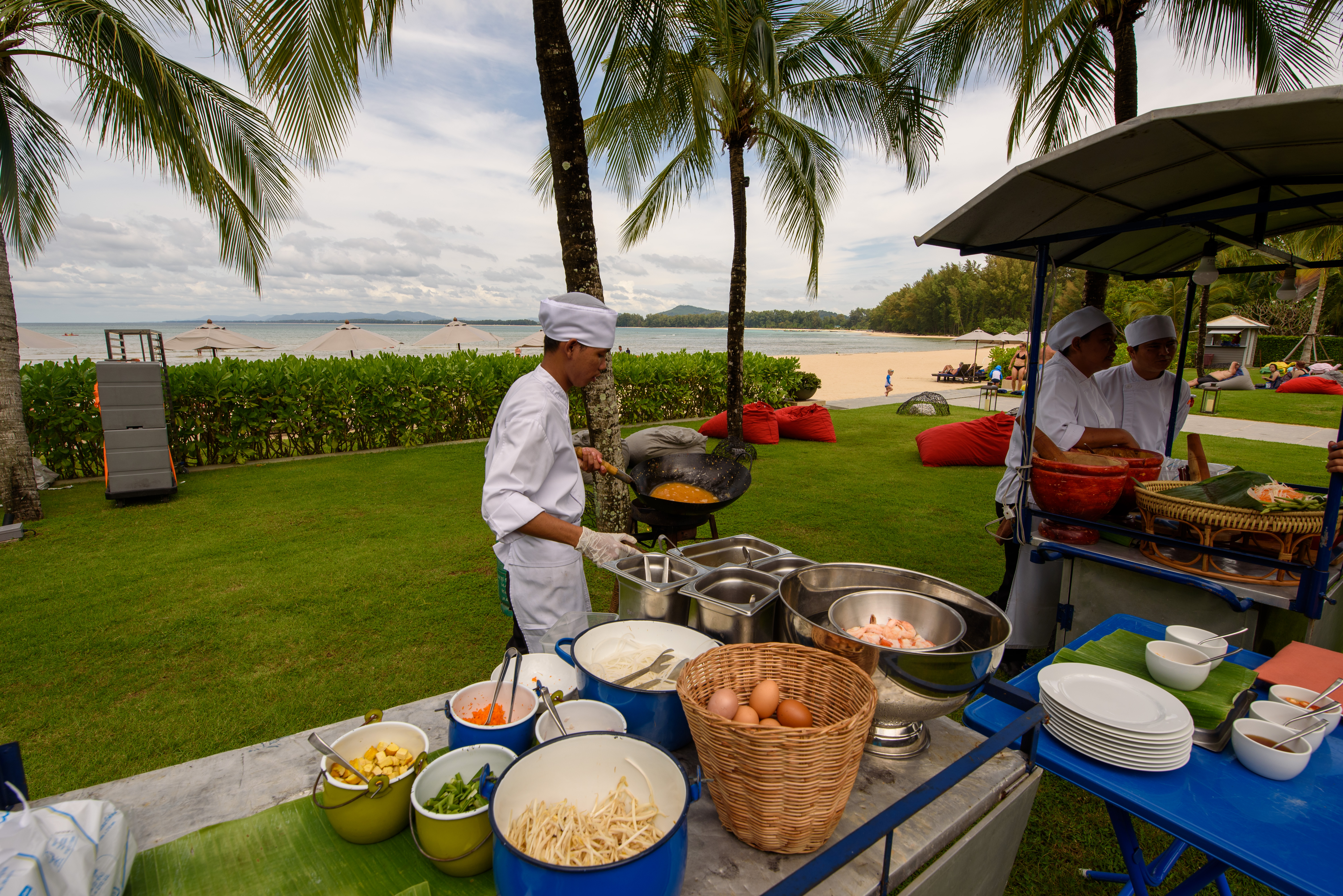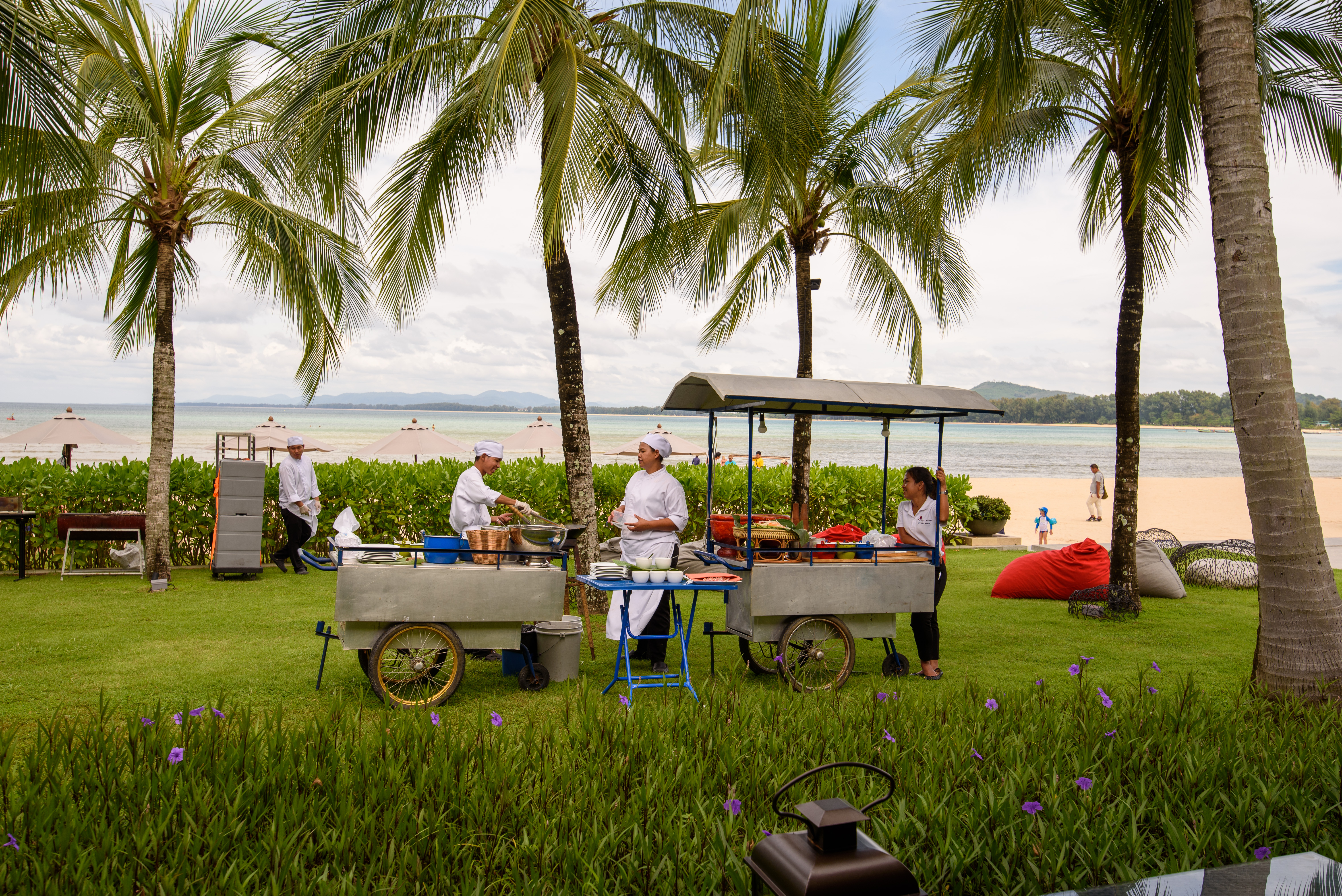 정원 곳곳에서 즉석 요리를 만들어주고 있습니다.