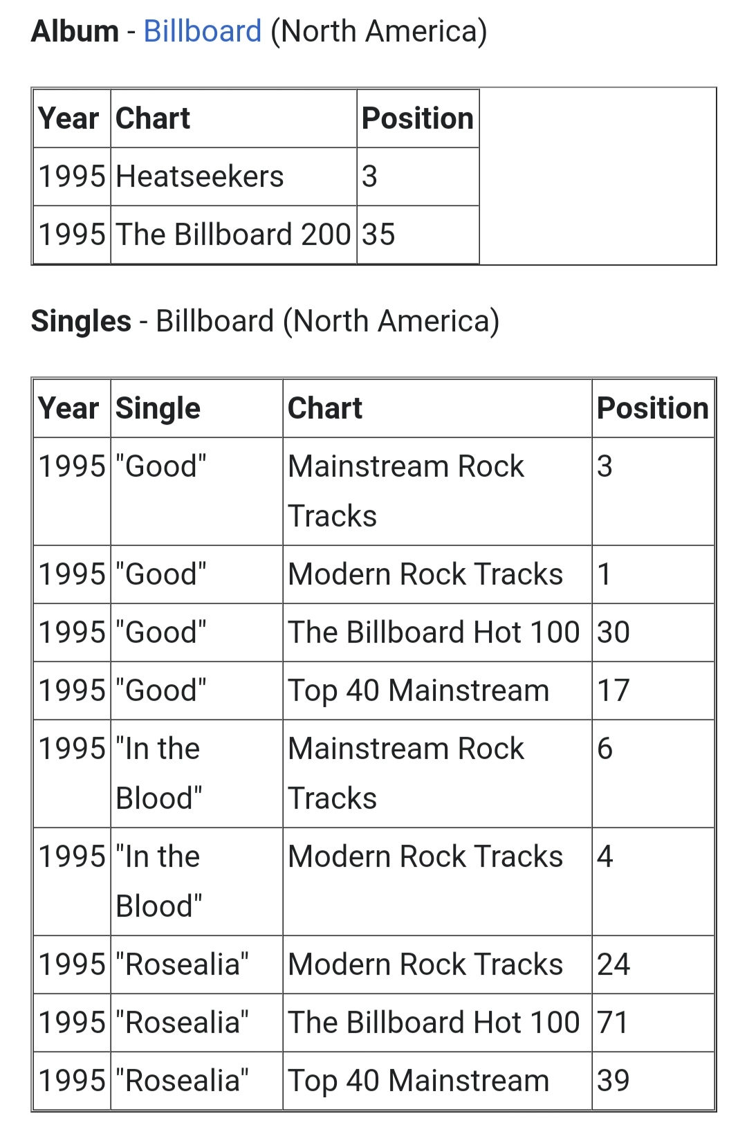 Good은 빌보드 메인스트림 락 차트 3위.
