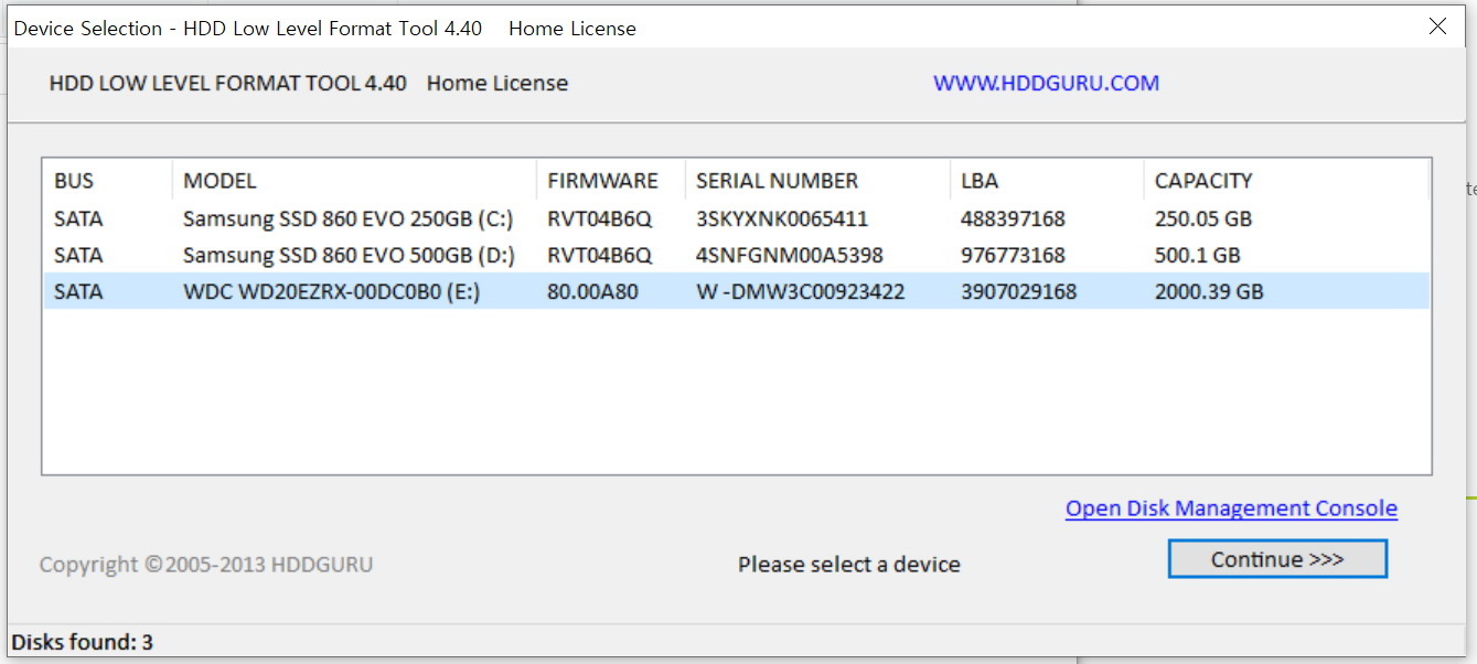HDD LLF Low Level Format Tool Low Level Format Tool — Click to enlarge Developer: HDDGURU.COM License terms: Free for personal/home use (speed is capped at 180 GB per hour which is 50 MB/s) Just $3.30 for personal/home use (no speed limit): Order Persona