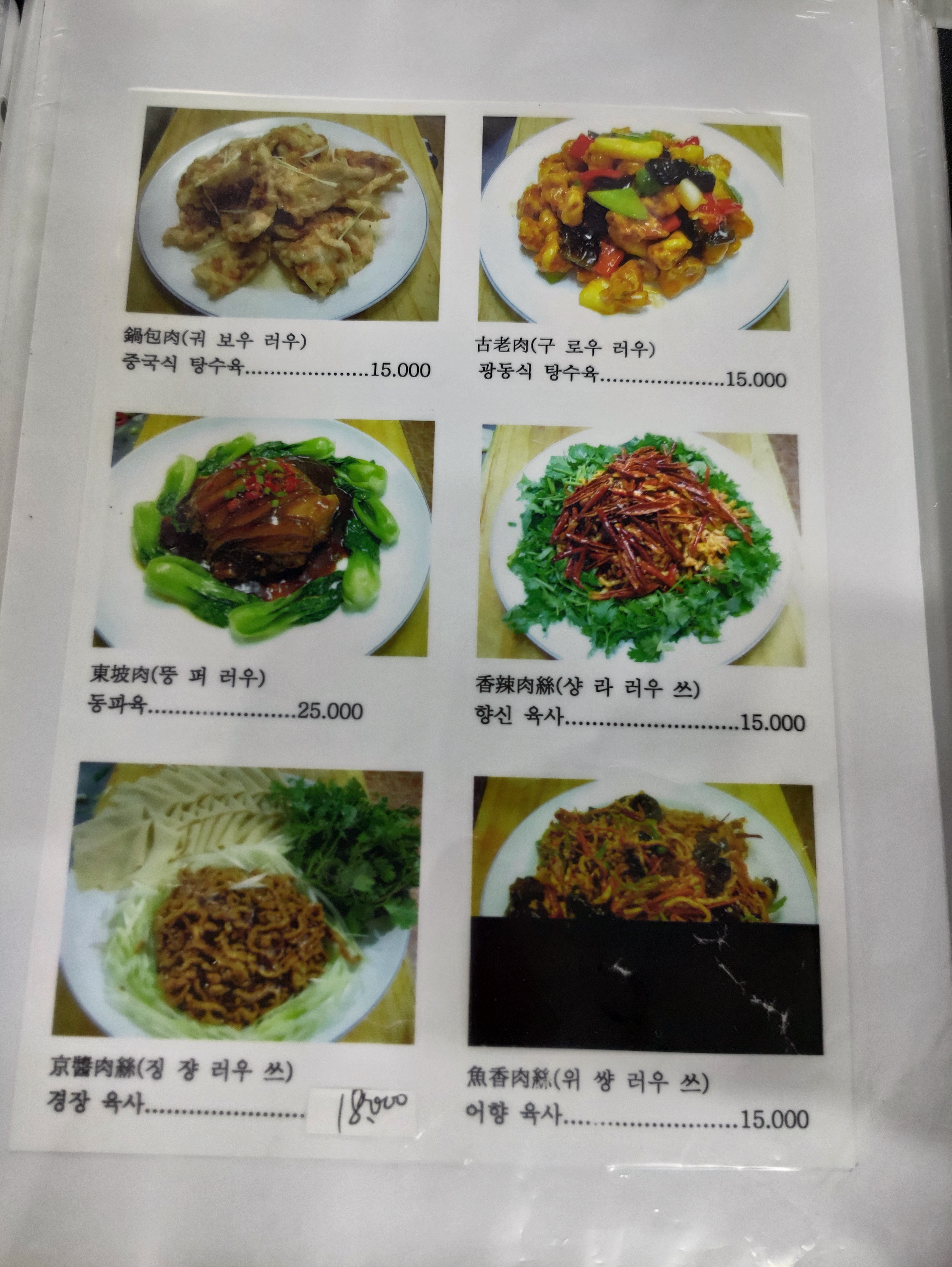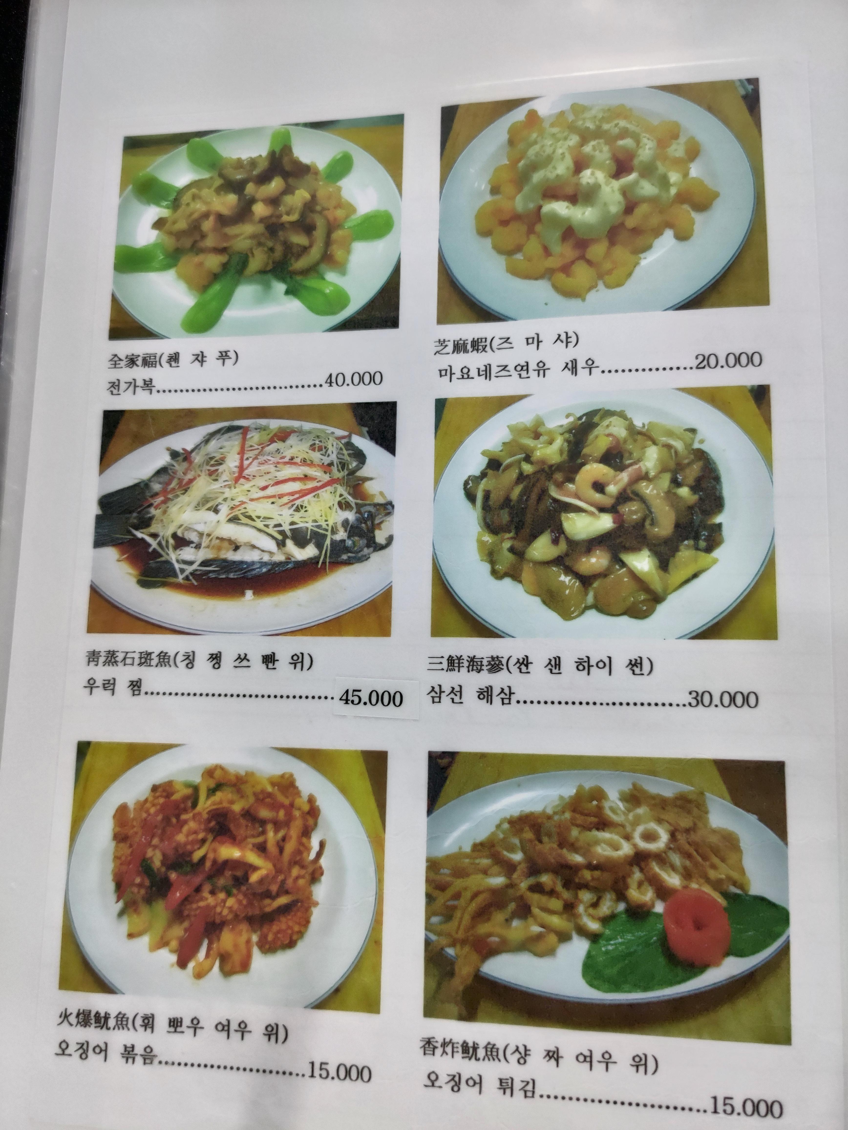 고기를 시켜도, 야채를 시켜도, 두부 요리를 시켜도, 계란 볶음을 시켜도 기본 15000원이다.