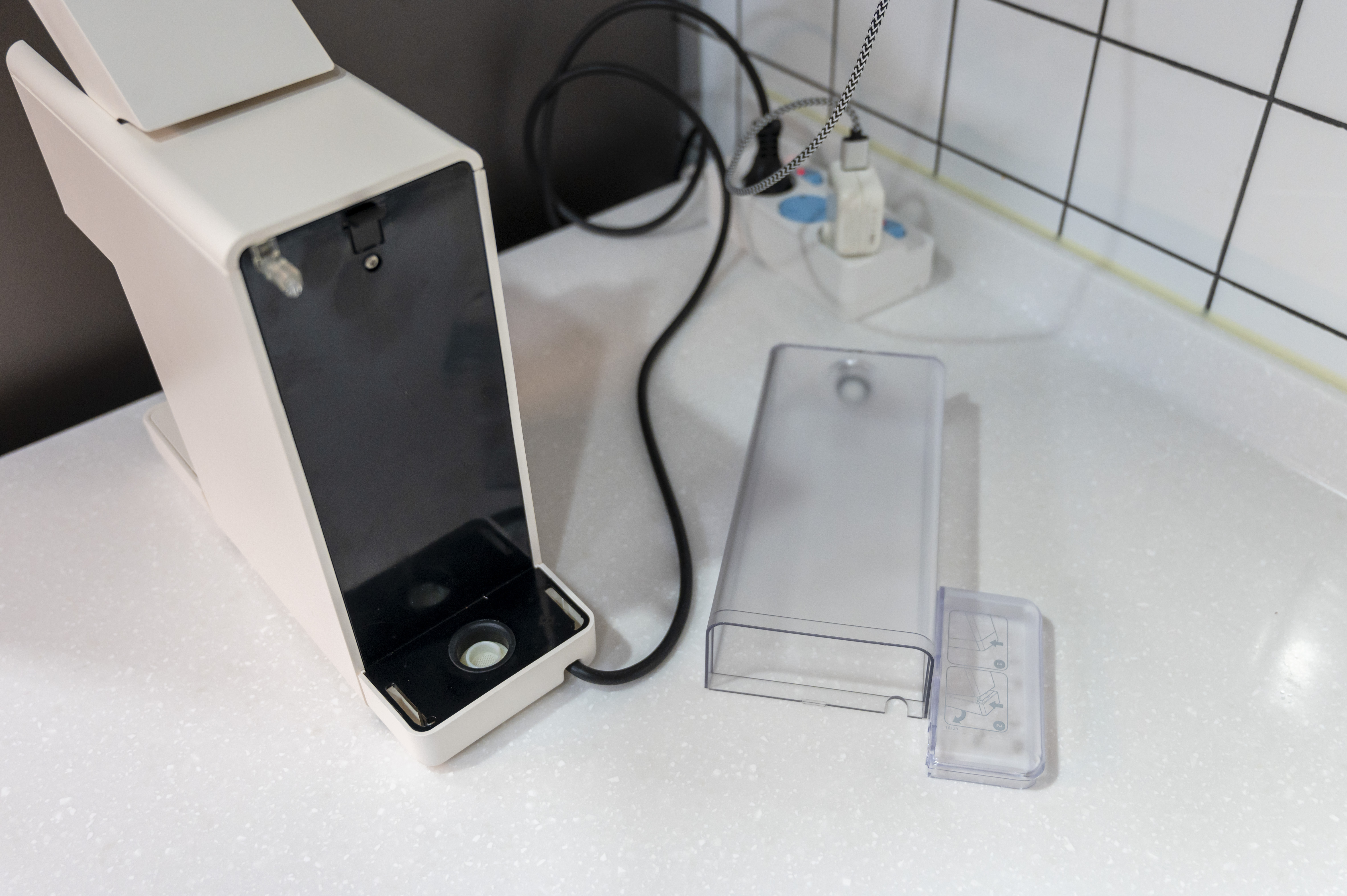 뒷면 물탱크를 분리해서 한번 씻어주고, 물을 보충해서 다시 결합해주자.