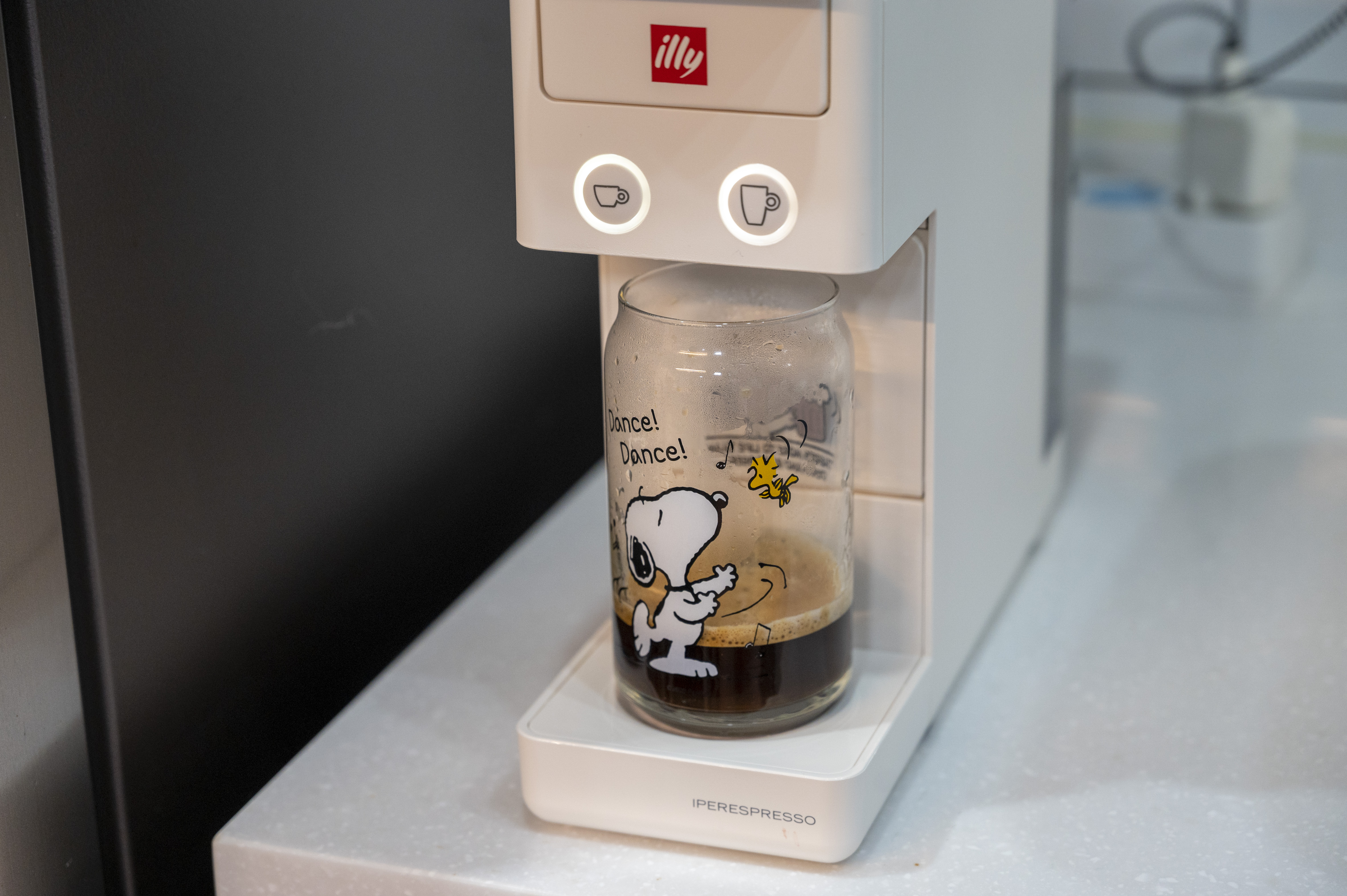 커피잔을 최근에 산 스누피 컵으로 했다.