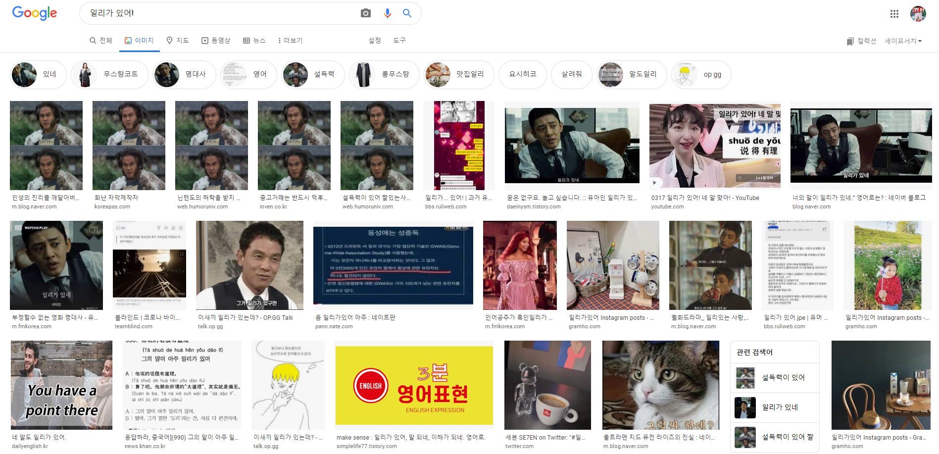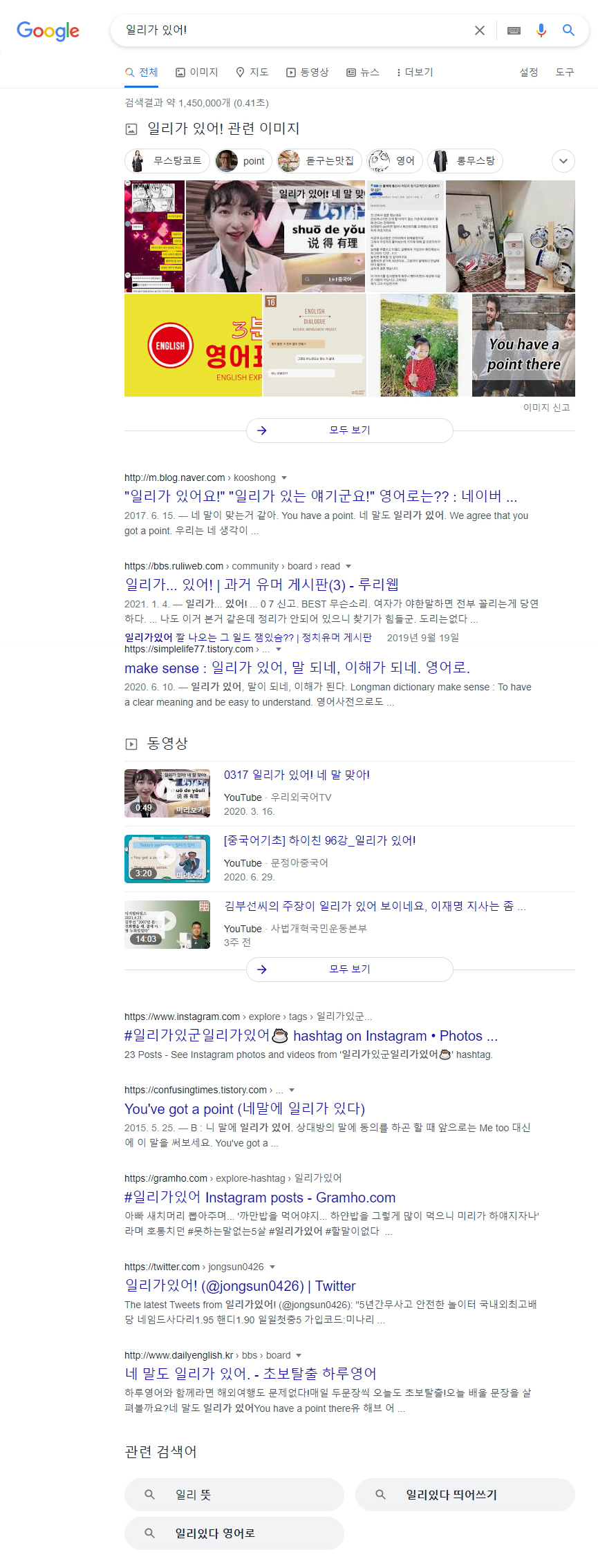 그러나 짤의 실제 내용은 설득력이 있어!!! 였고, 나는 일리가 있어! 라고 검색한다.