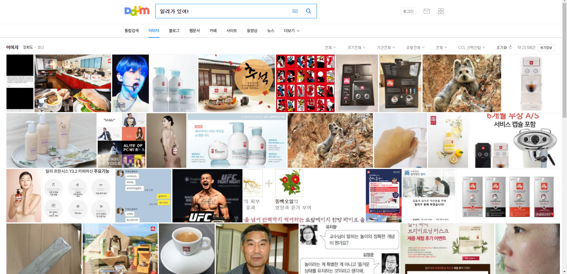 대략 30%가 일리커피와 관련성이 있는 검색 결과다.