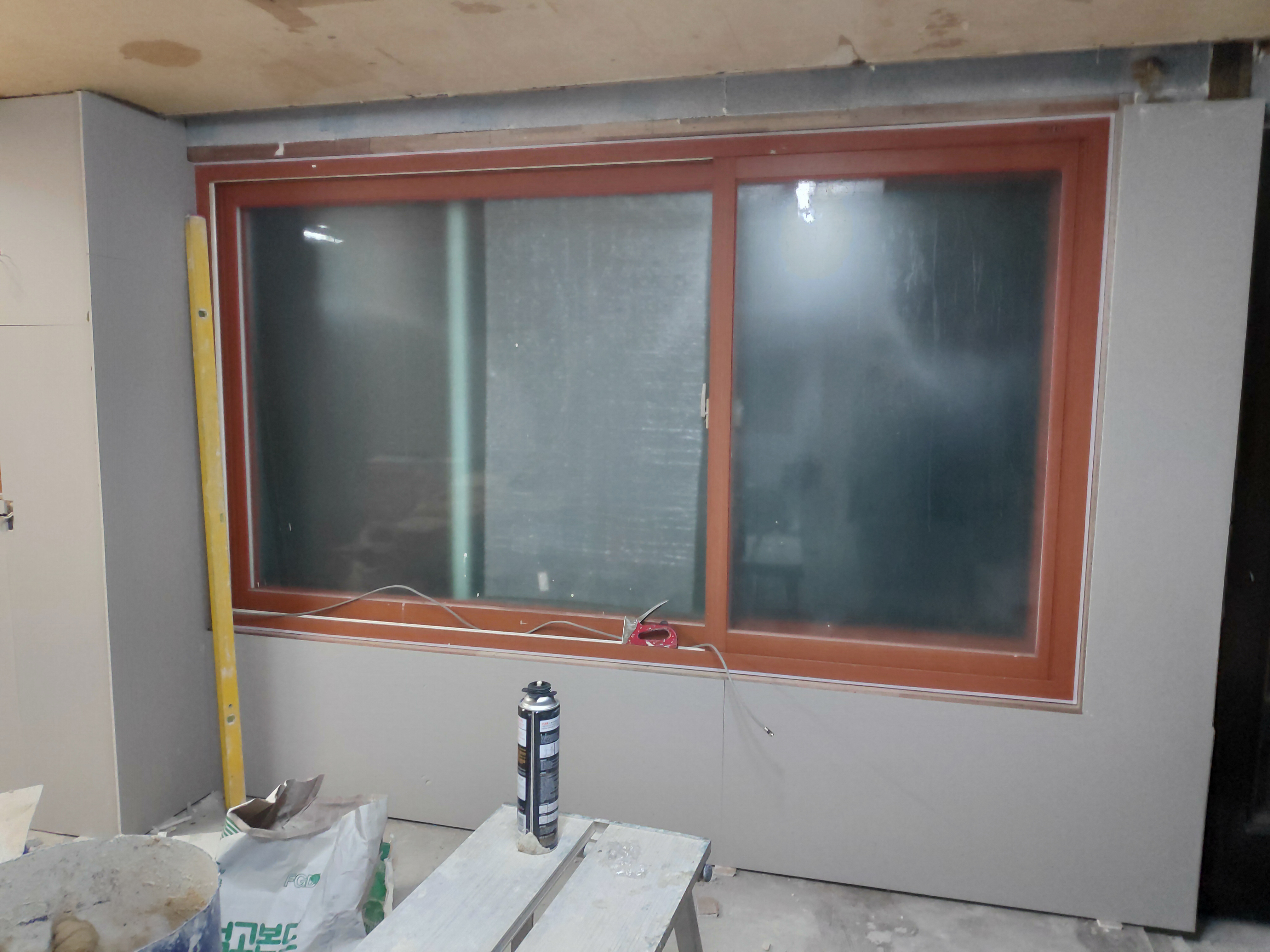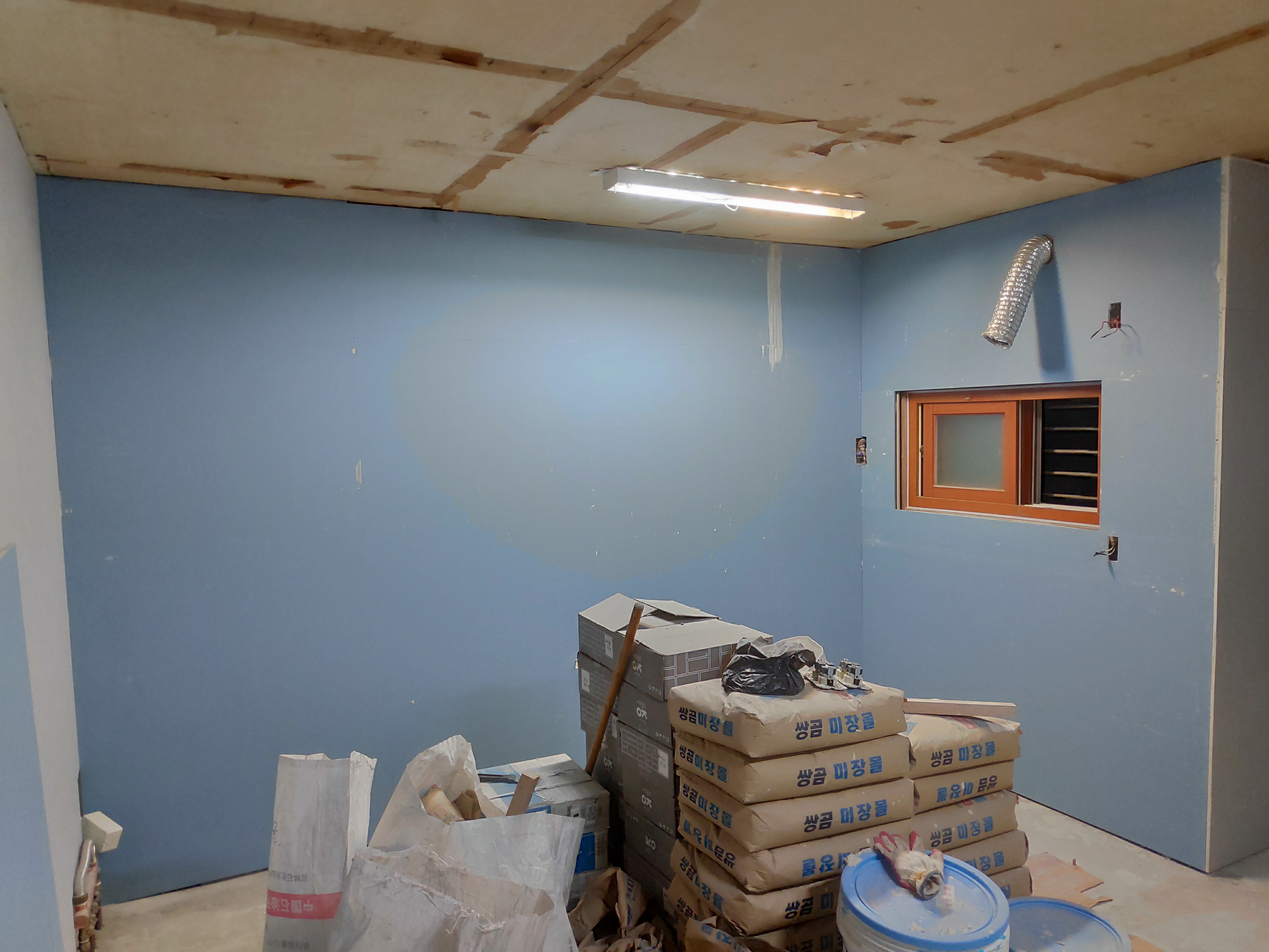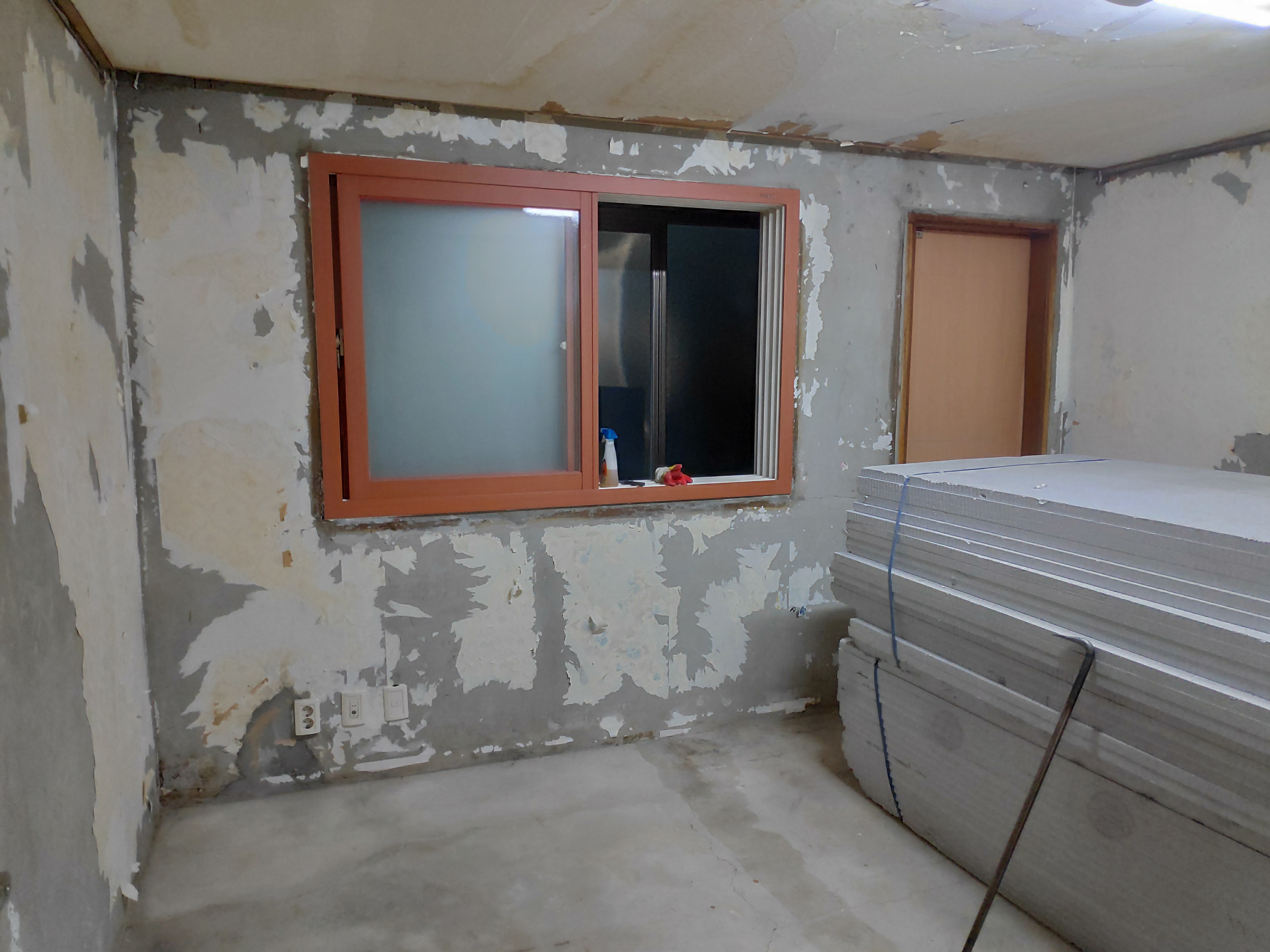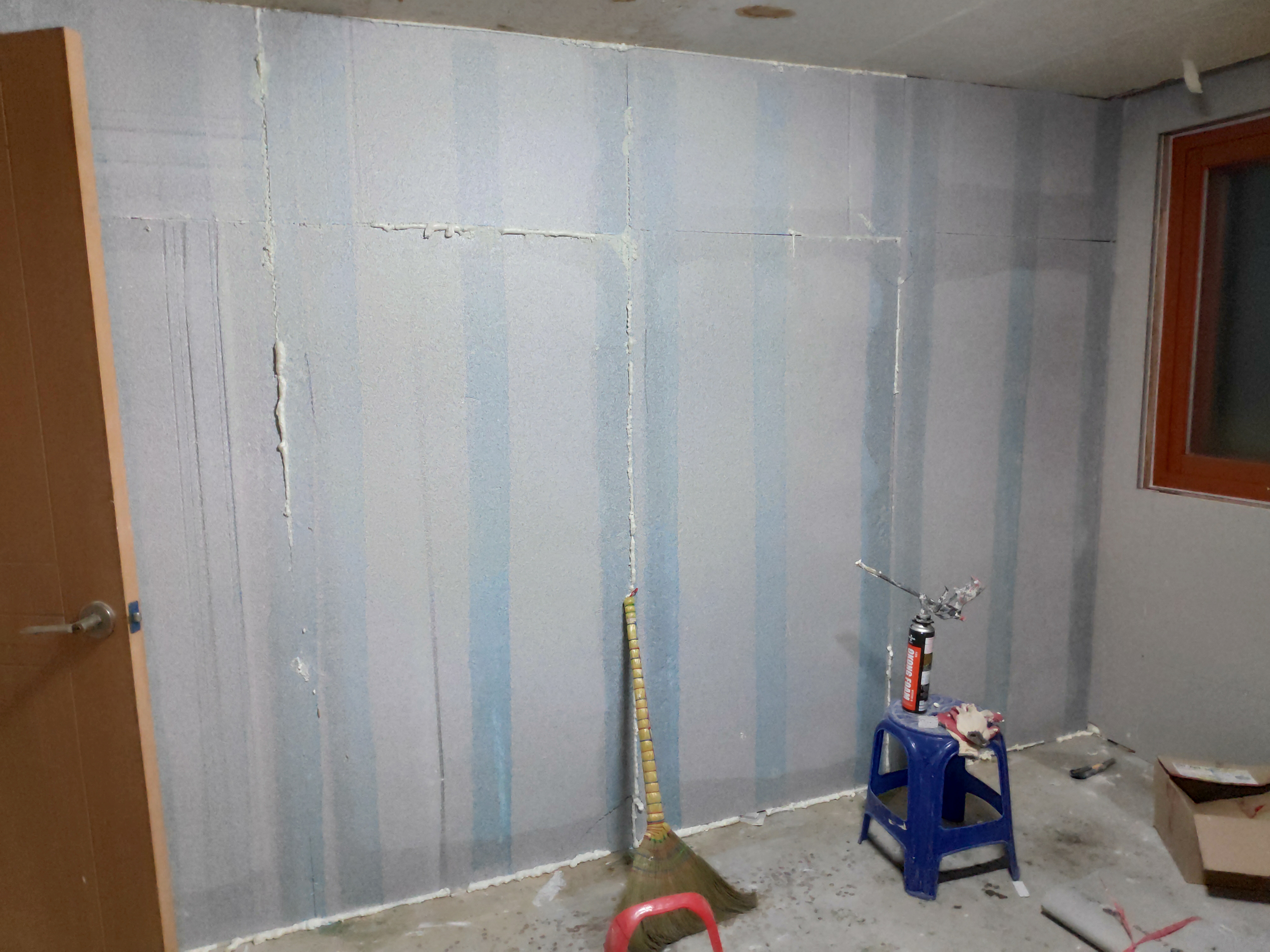 외벽 방향으로는 단열재 시공을 하고, 내벽측은 석고보드 1ply만 시공했다.