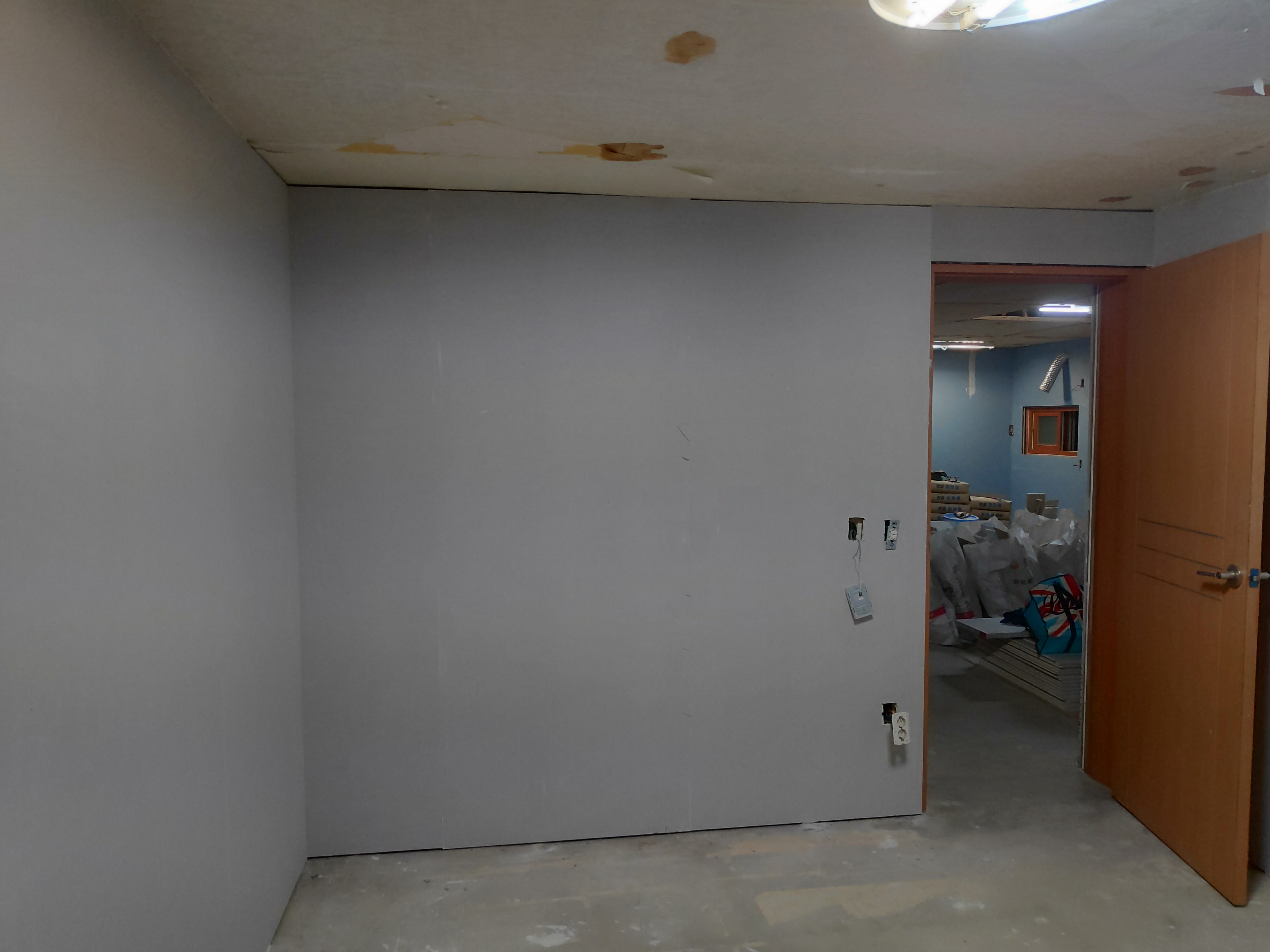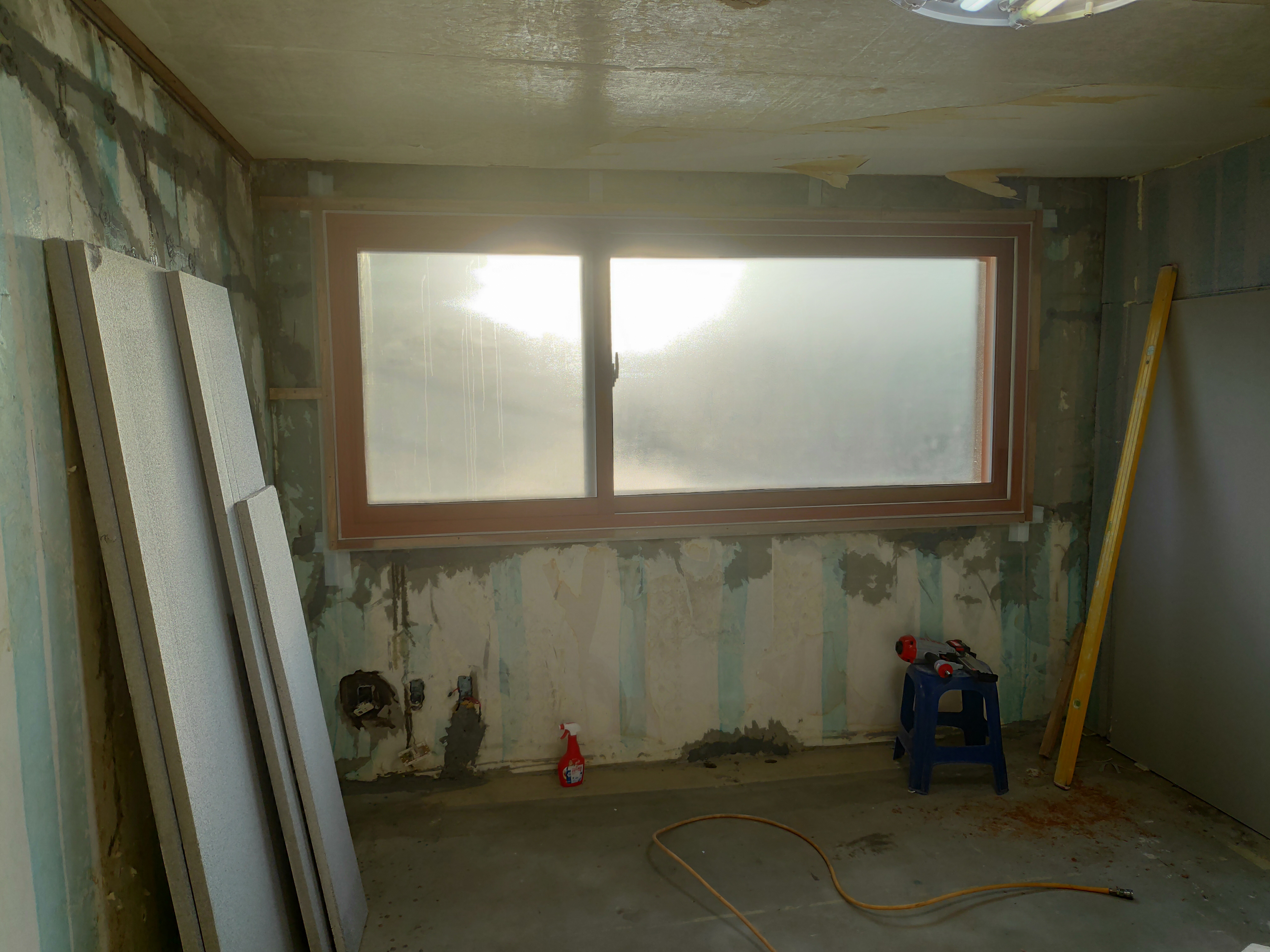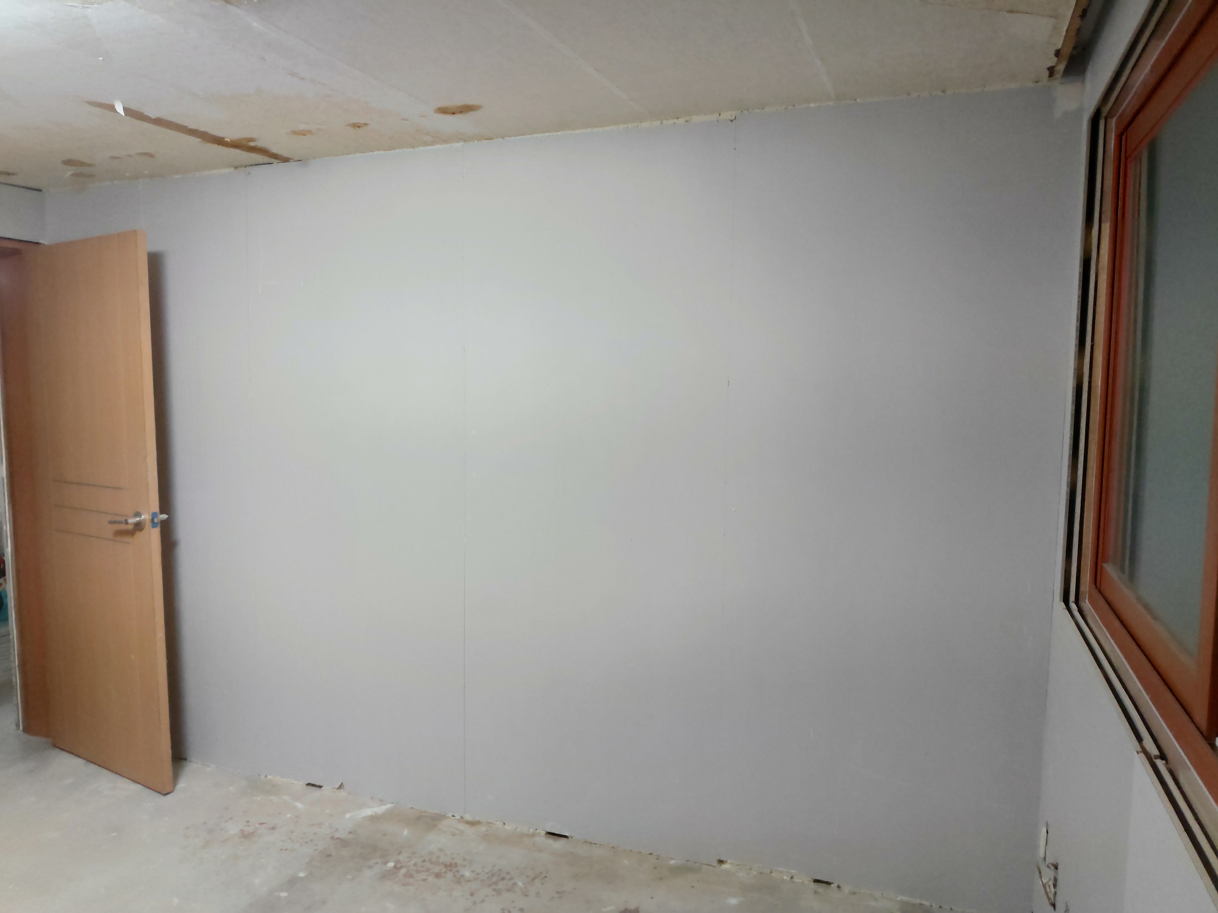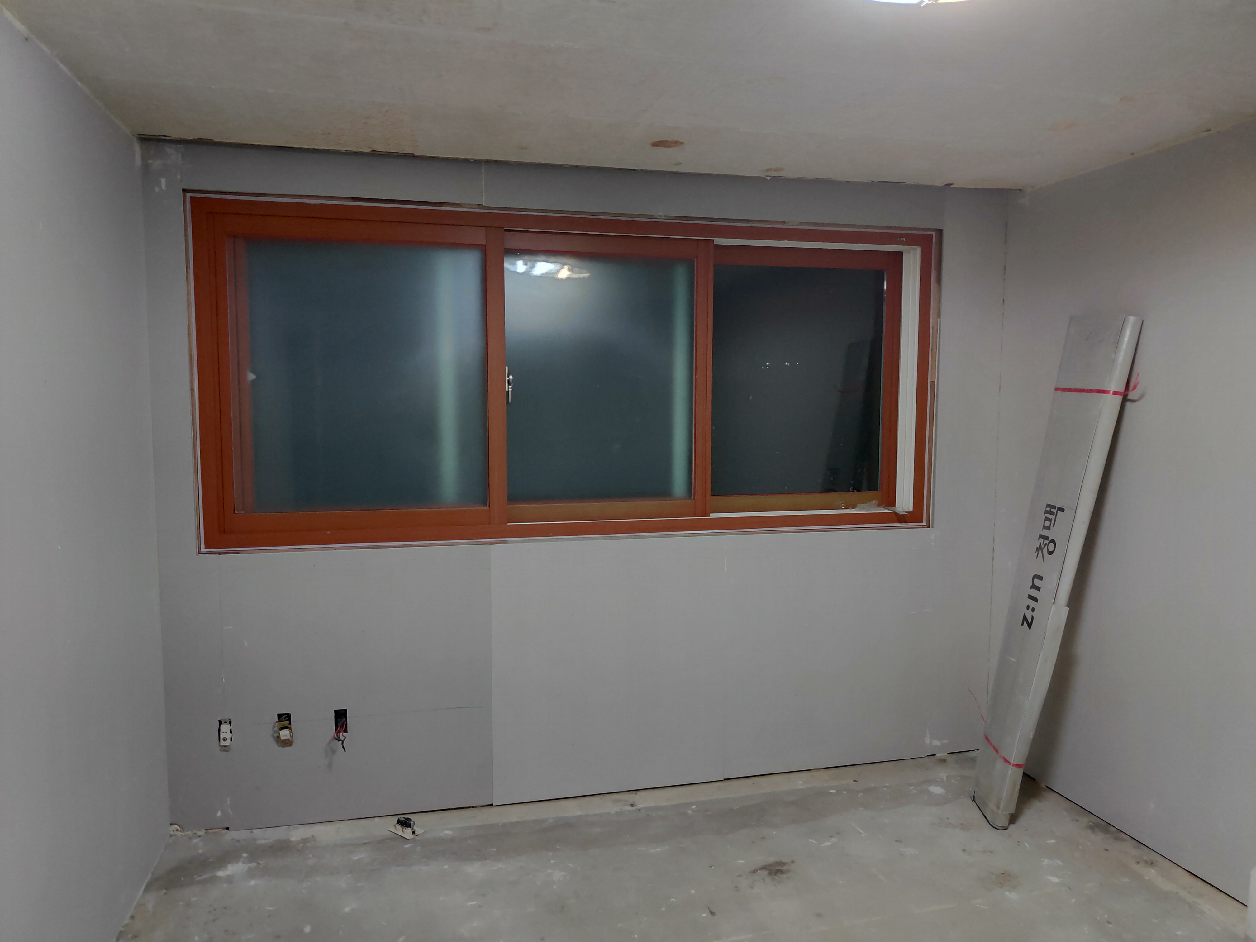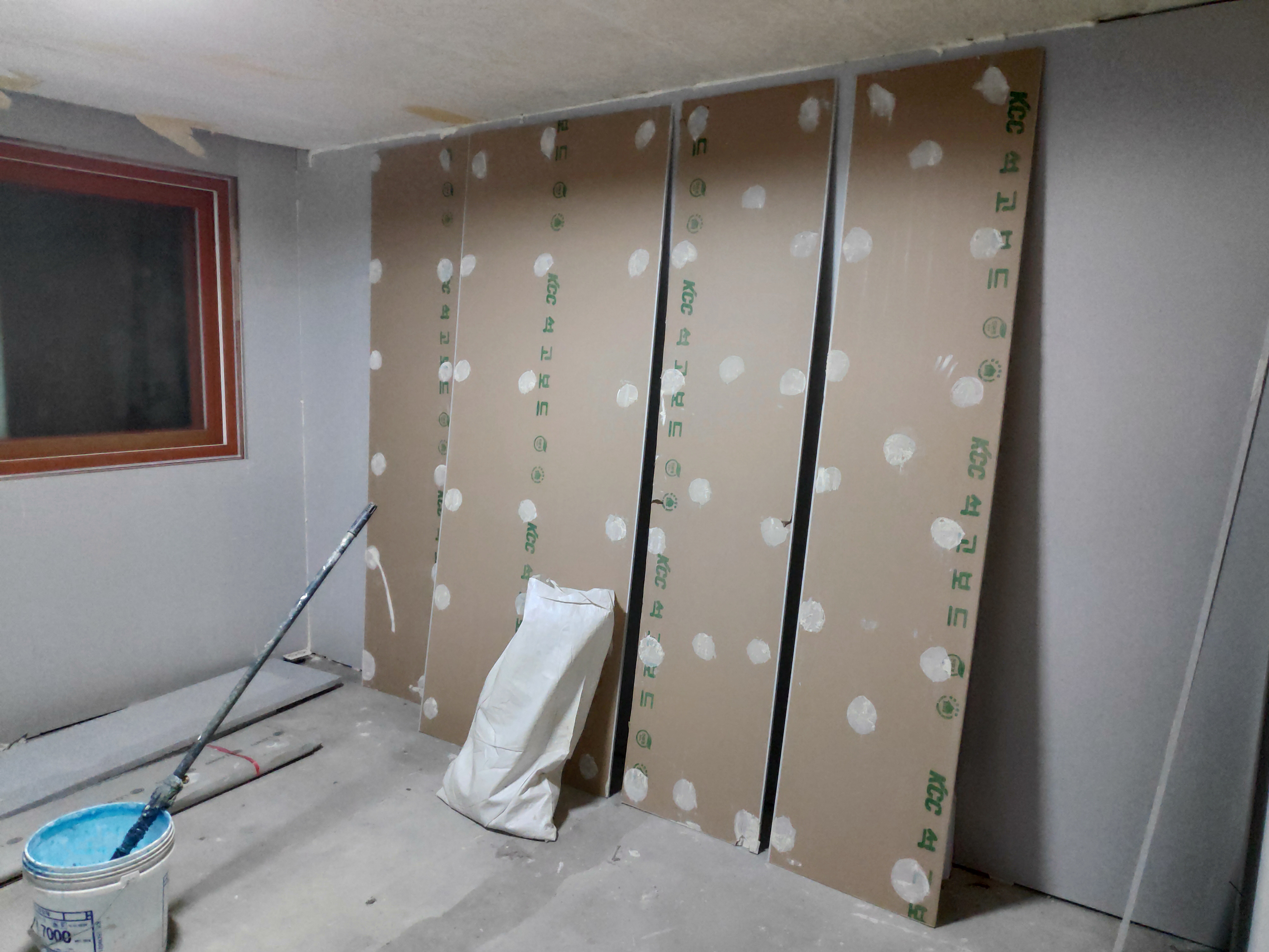 외벽 방향으로는 단열재 시공을 하고, 내벽측은 석고보드 1ply만 시공했다.