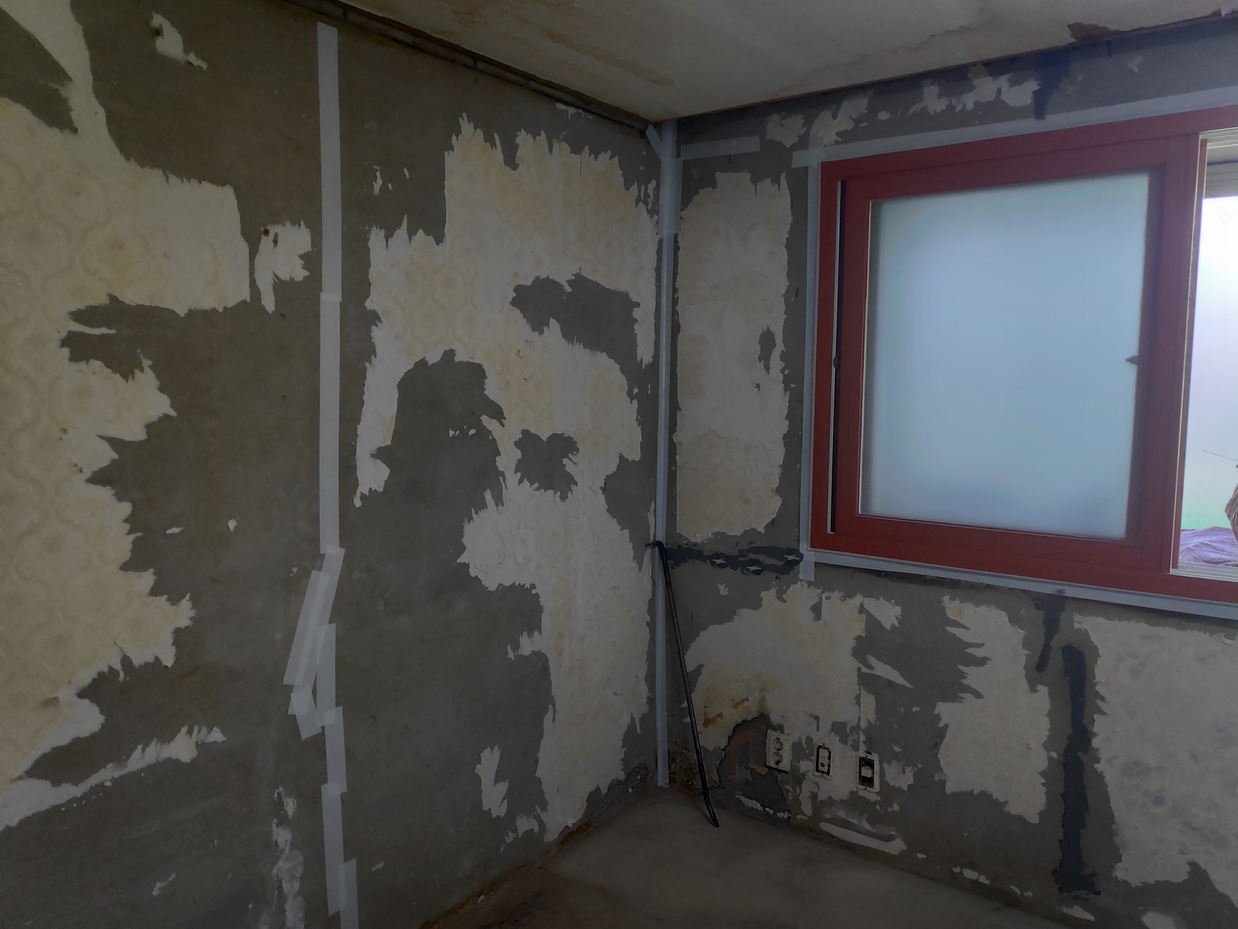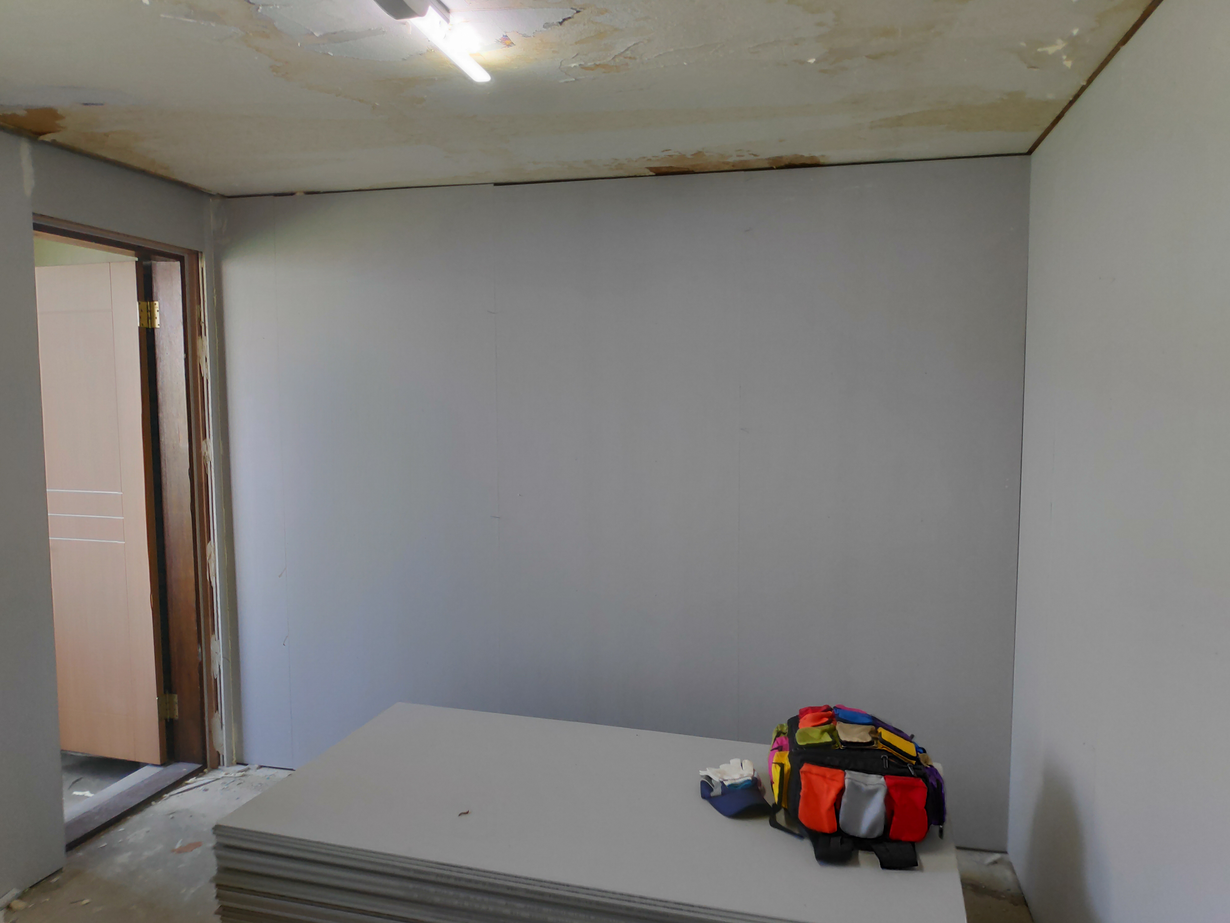 위 사진 우측을 보면 석고보드 사이에 간격이 보이는데