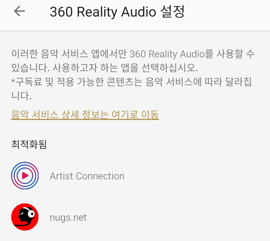 현실은 딱 2개의 스트리밍 서비스 앱에서만 작동이 가능하고 Artist Connection에서 몇몇 음원들을 테스트 가능하고 nugs.net은 구독 안 하면 테스트도 불가능하다.
