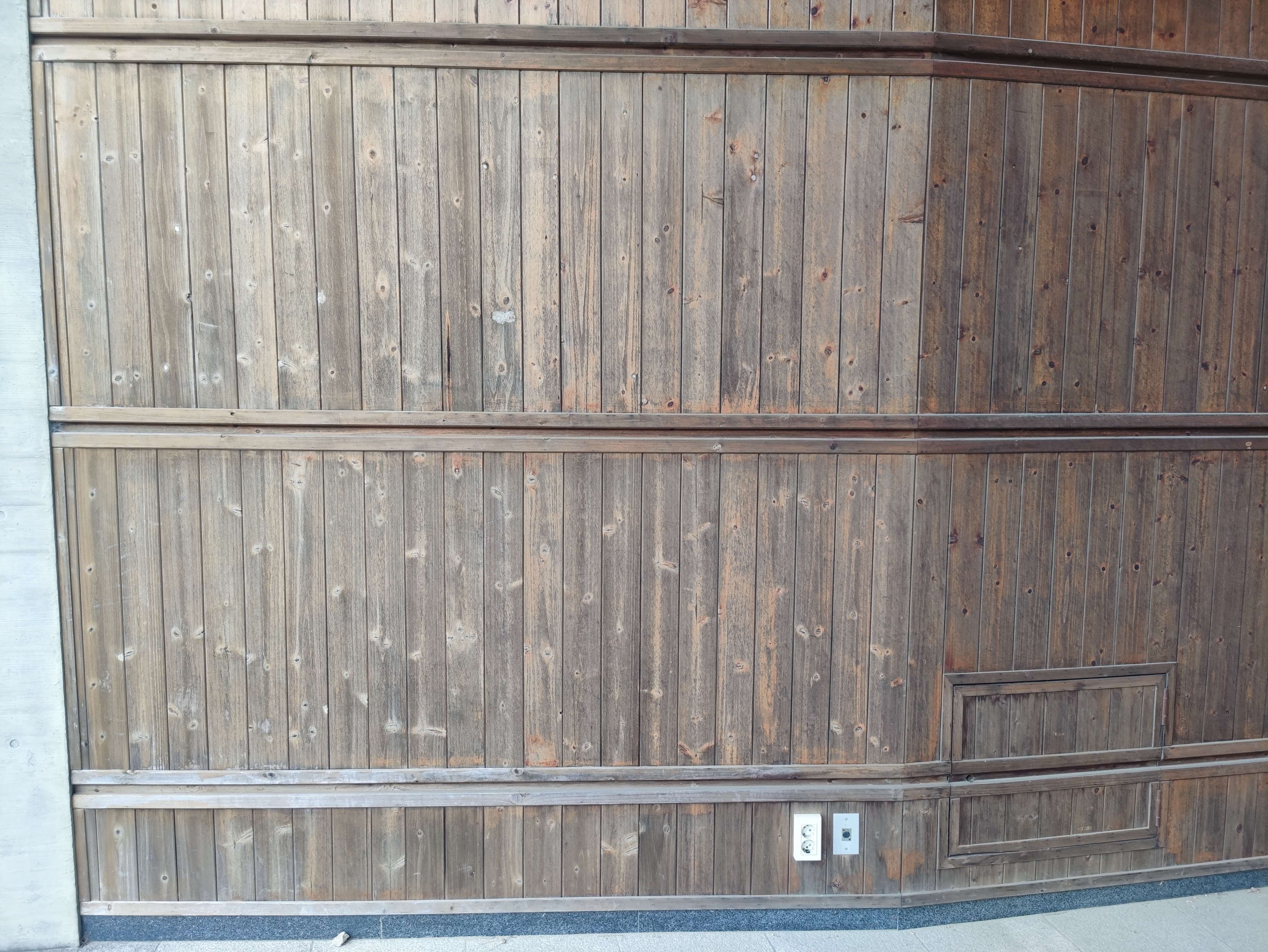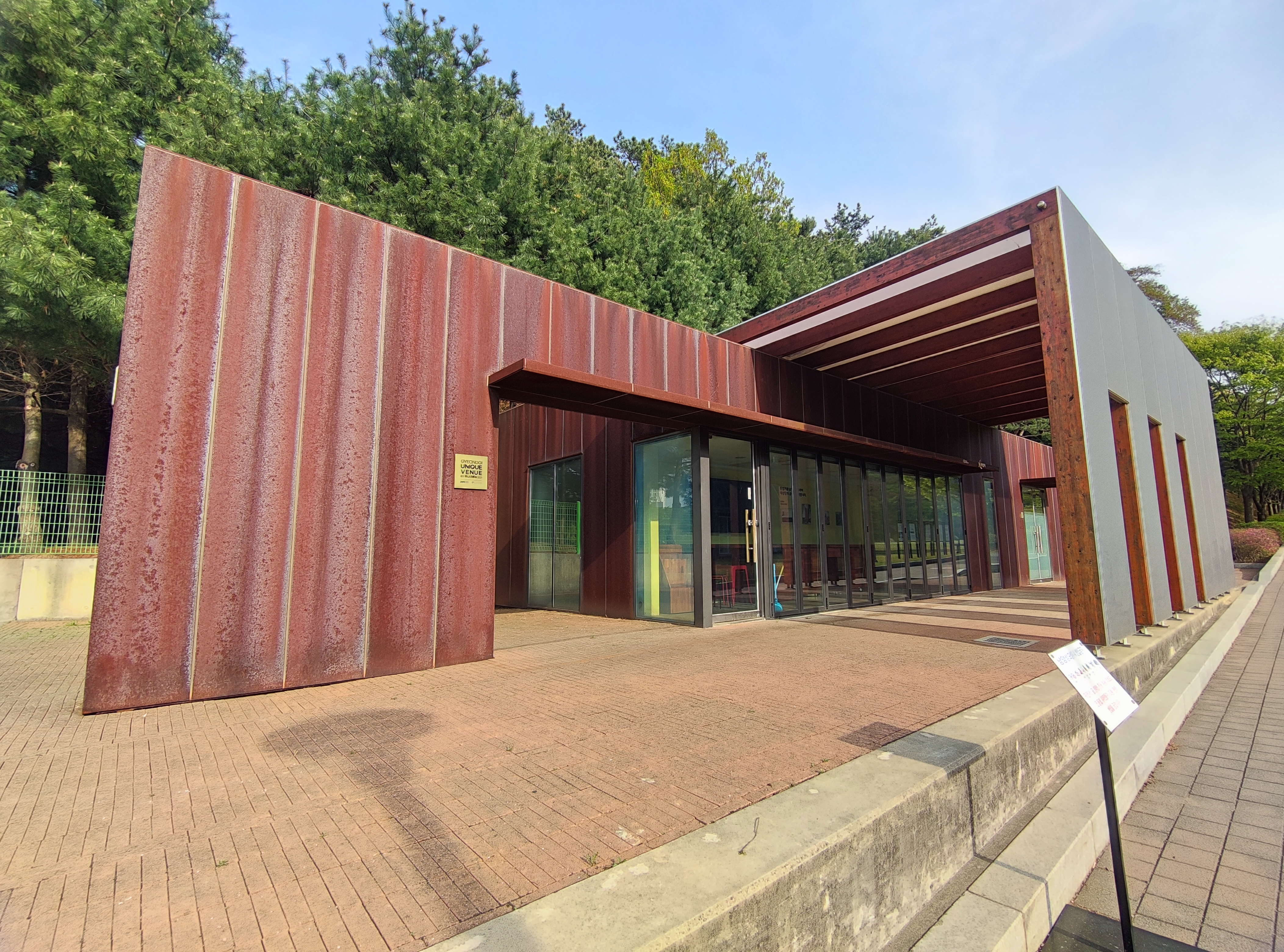 공터 앞의 건물 내측에는 원목으로 마감되었다.
