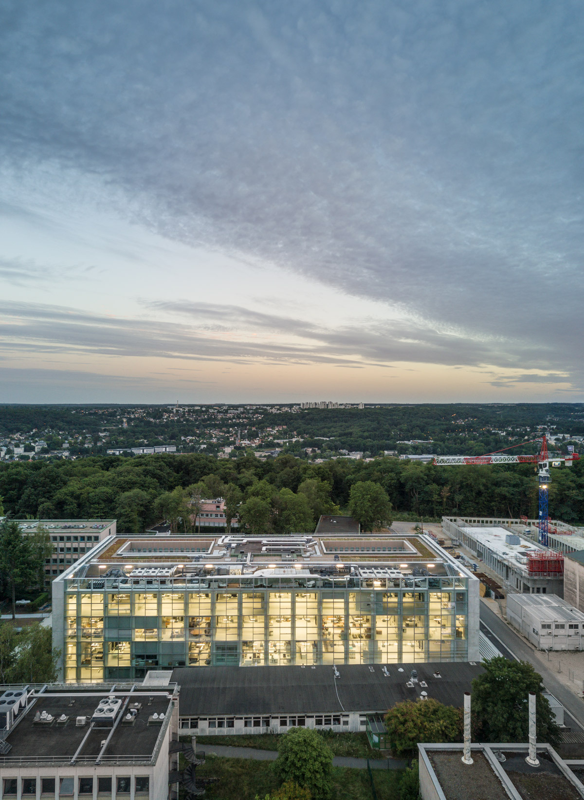 The Institut des Sciences Moléculaires d’Orsay (ISMO) has recently moved into new premises designed by KAAN Architecten. The building is located on the Plateau de Saclay, 20 km south-west of Paris. Initiated in 2010, and born of the fusion of three research laboratories, this higher institute for molecular physics and physico-chemistry, under the supervision of Université Paris-Sud and CNRS, employees a staff of 170 collaborators. ISMO merges with the Centre de Physique Matière et Rayonnement, grouping physics laboratories, an educational building and a reception centre for international researchers.