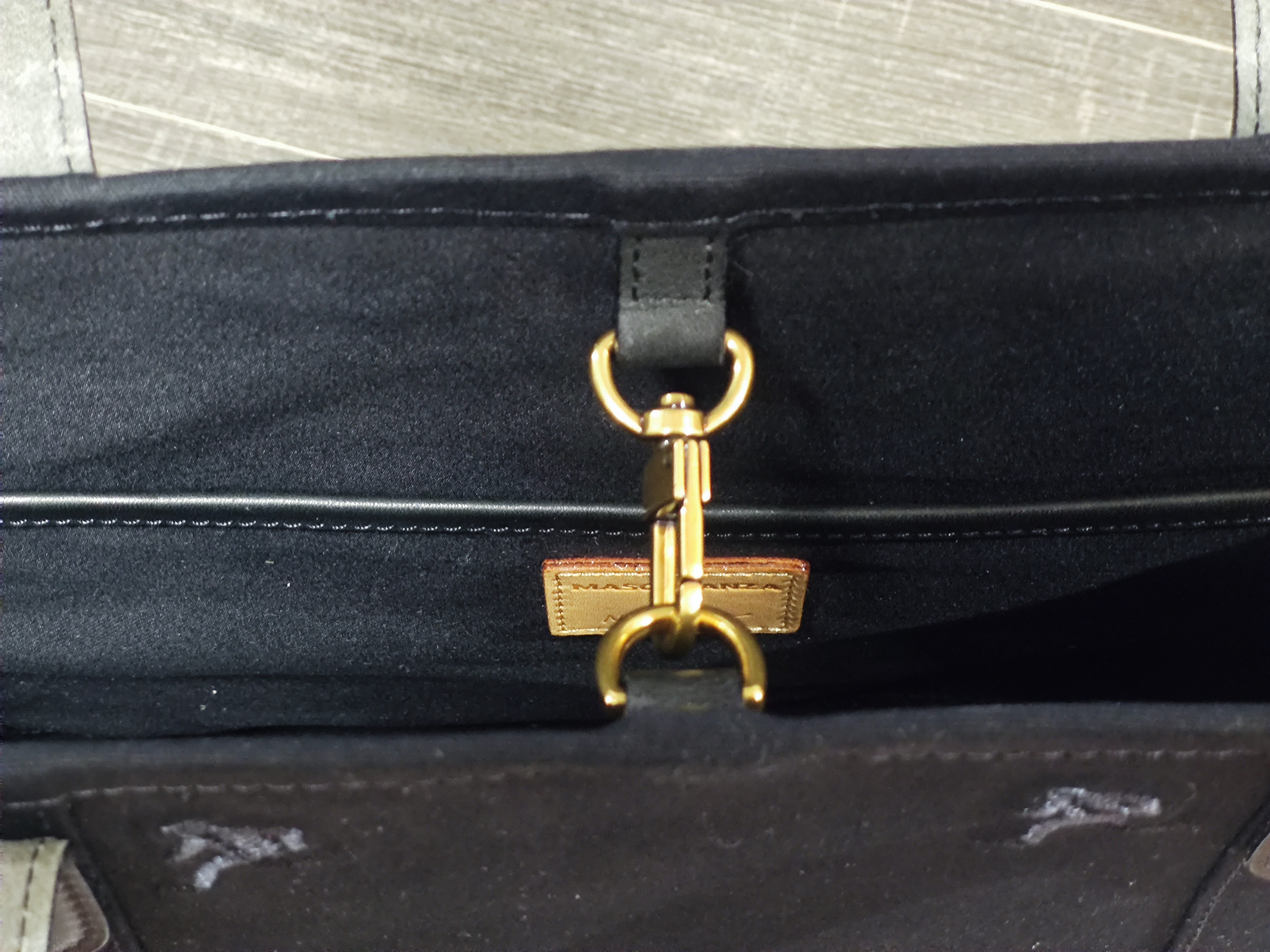 내측에는 금색 고리가 있고, 내부 포켓 한 칸을 제외하면 다른 디테일은 없다.