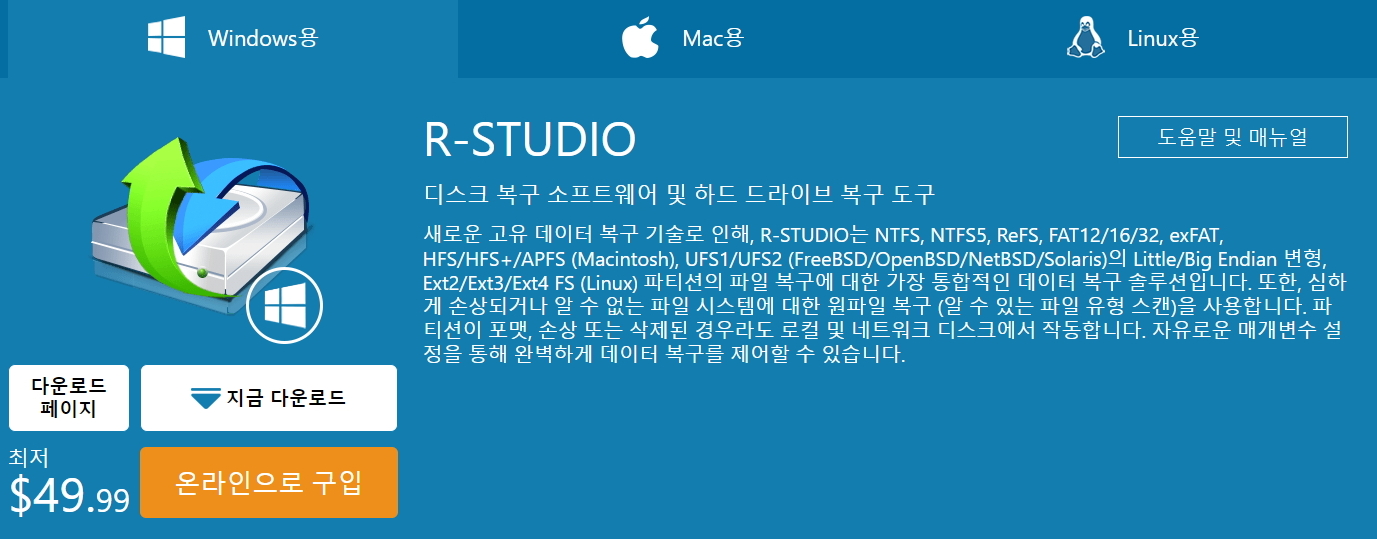 50만원을 아껴주는 우리 효자 R-Studio 단돈 49.99$에 구매할 수 있다.