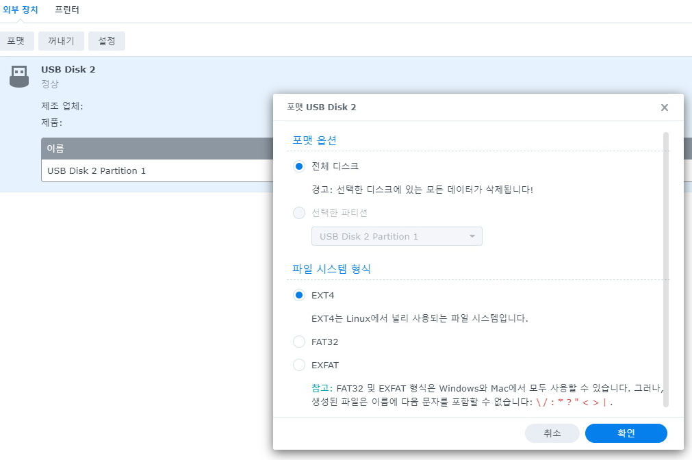 외장하드 02 : NTFS -> NTFS 포맷 -> EXT4로 포맷