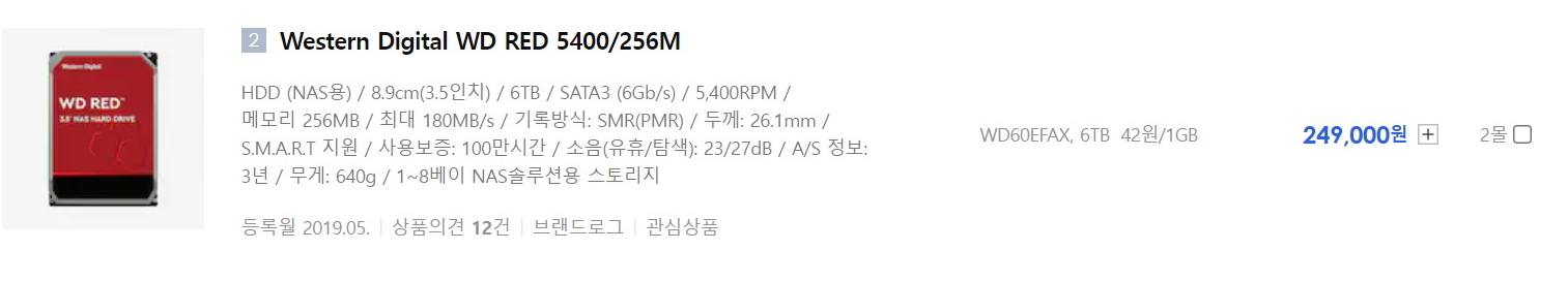 주요 스펙은 6TB, SATA3, 5400RPM, 256MB, SMR방식 등일 듯 하다.