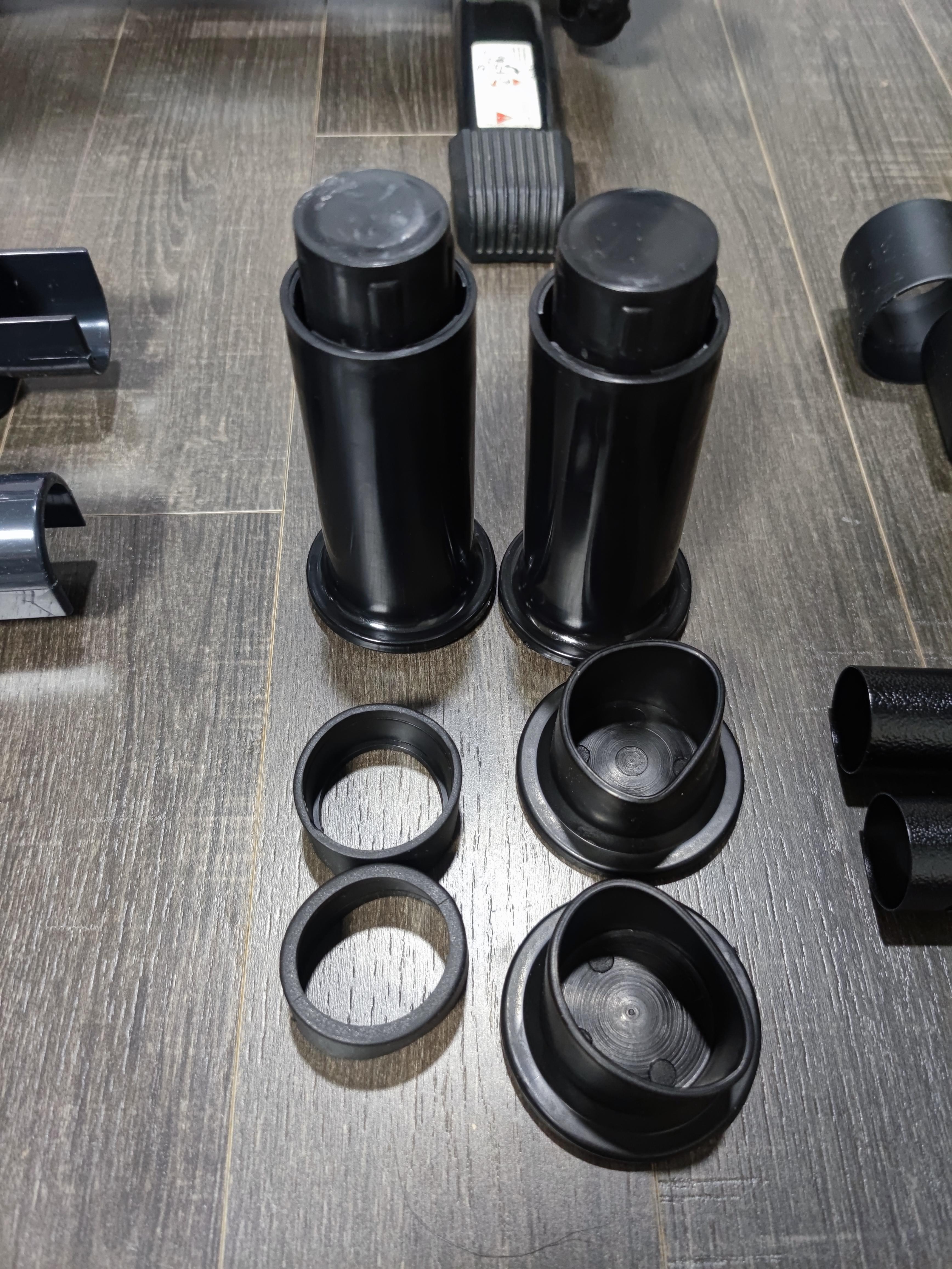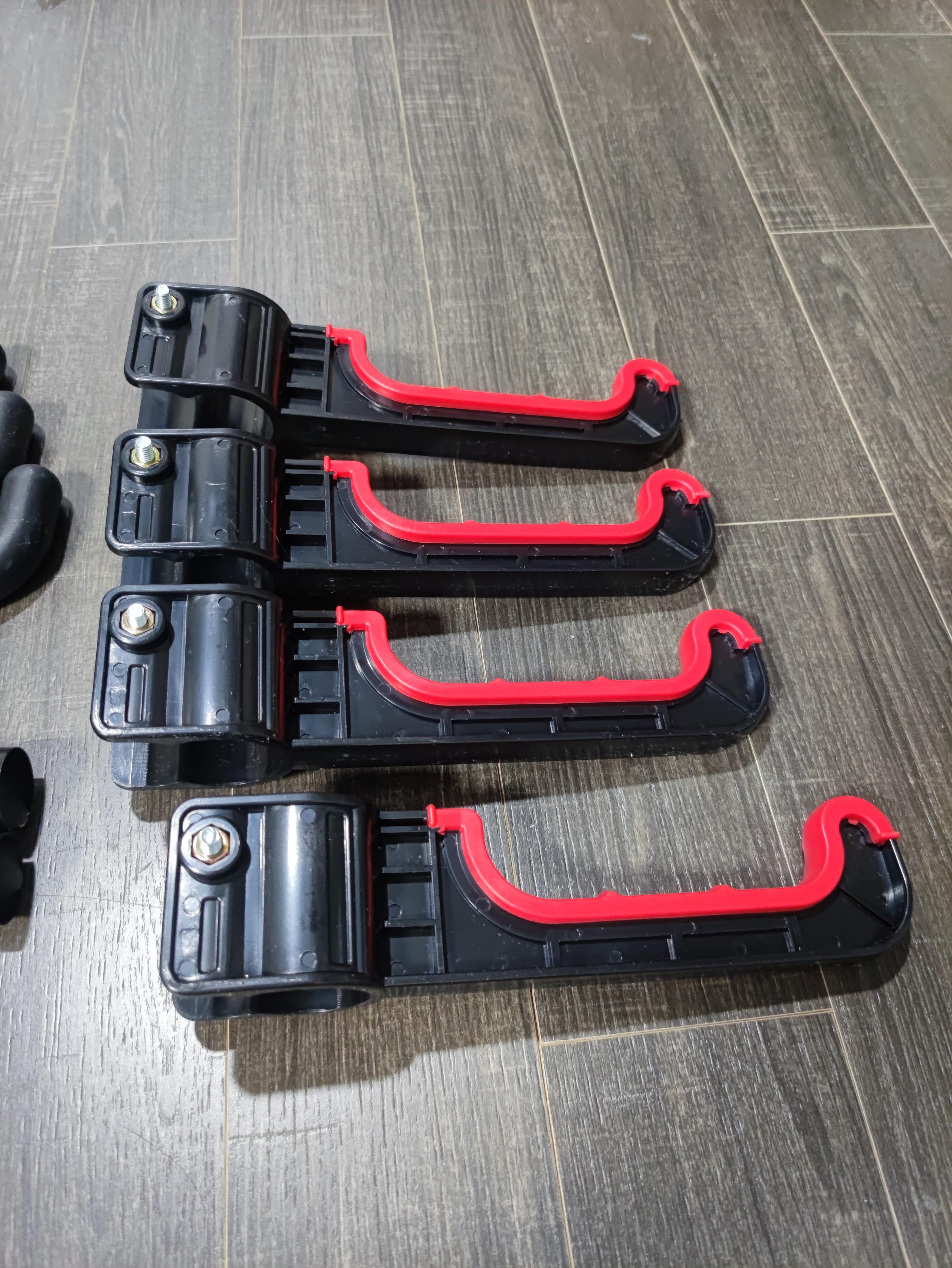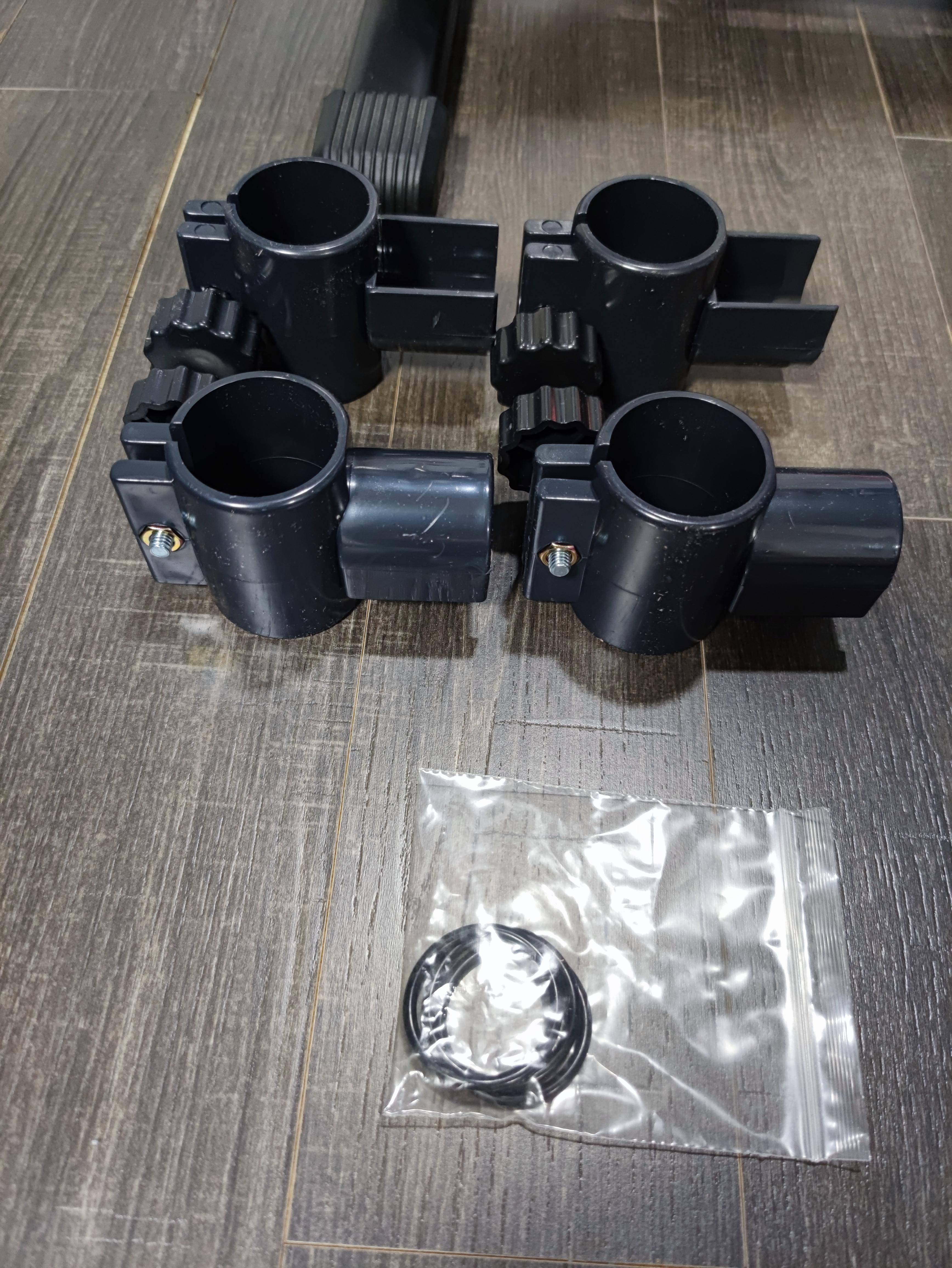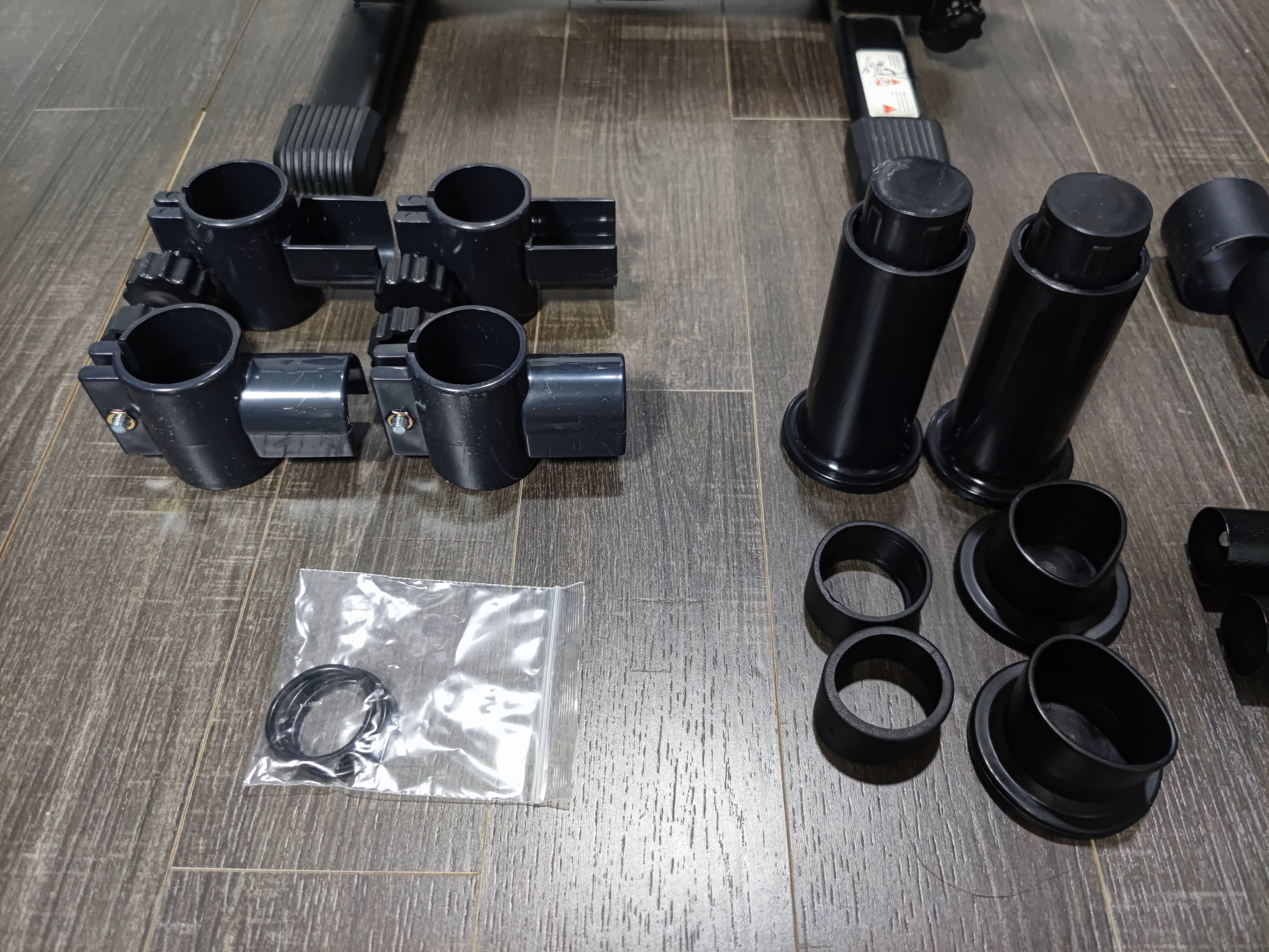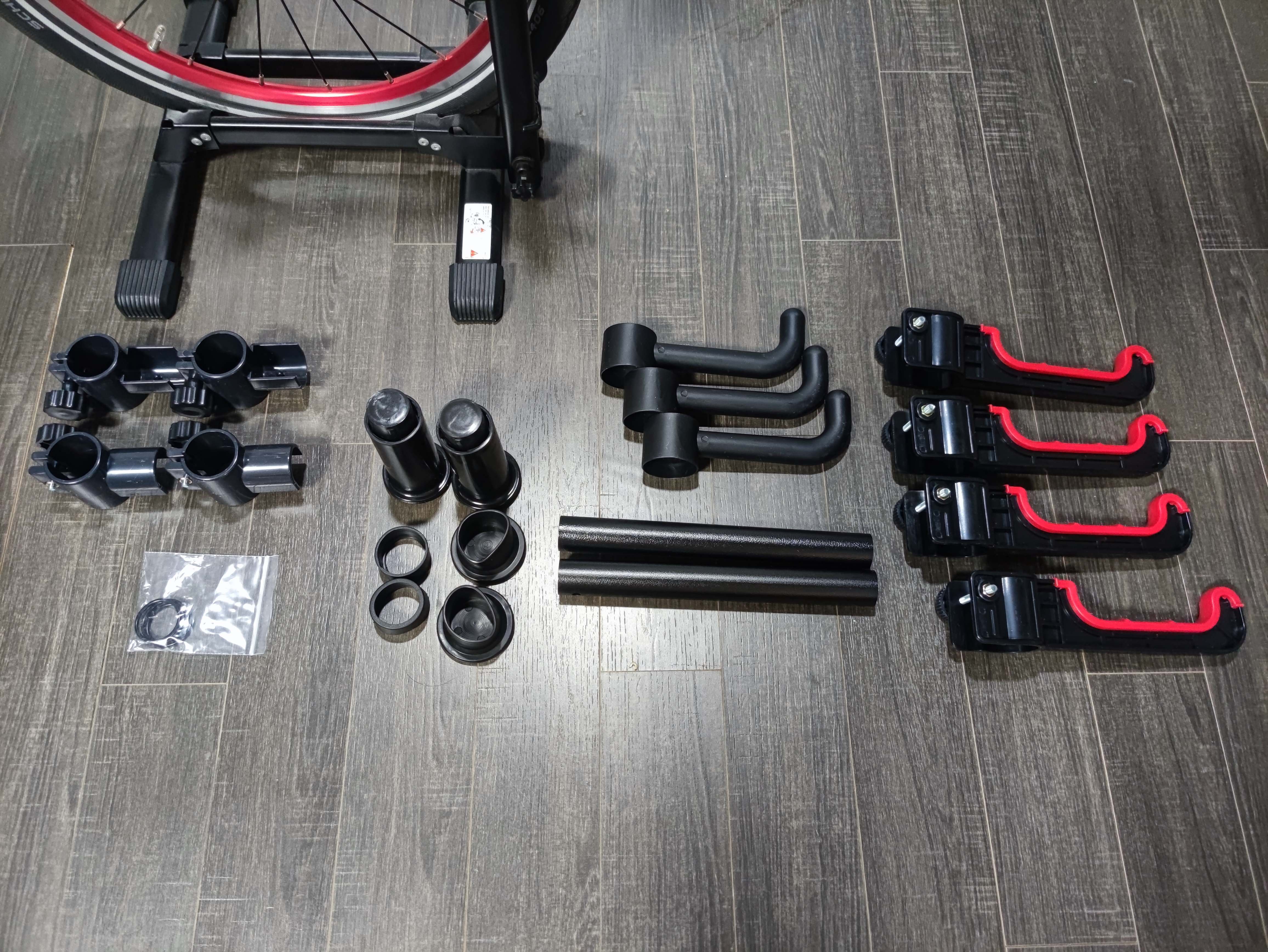 4. 윗봉으로부터 자전거 거치대를 물려주고, 파이프 홀더를 물려주고, L자 옷걸이후크를 물려주고, 중간링(대)를 물려준다.