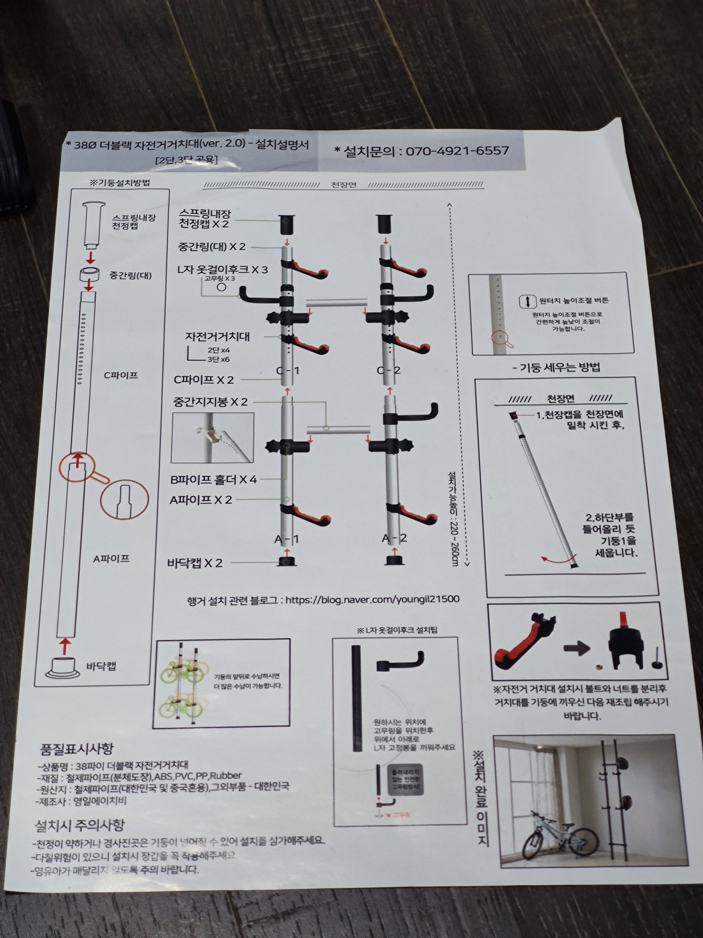 자전거를 거치해서 지지봉 위치를 최종 마무리한다.