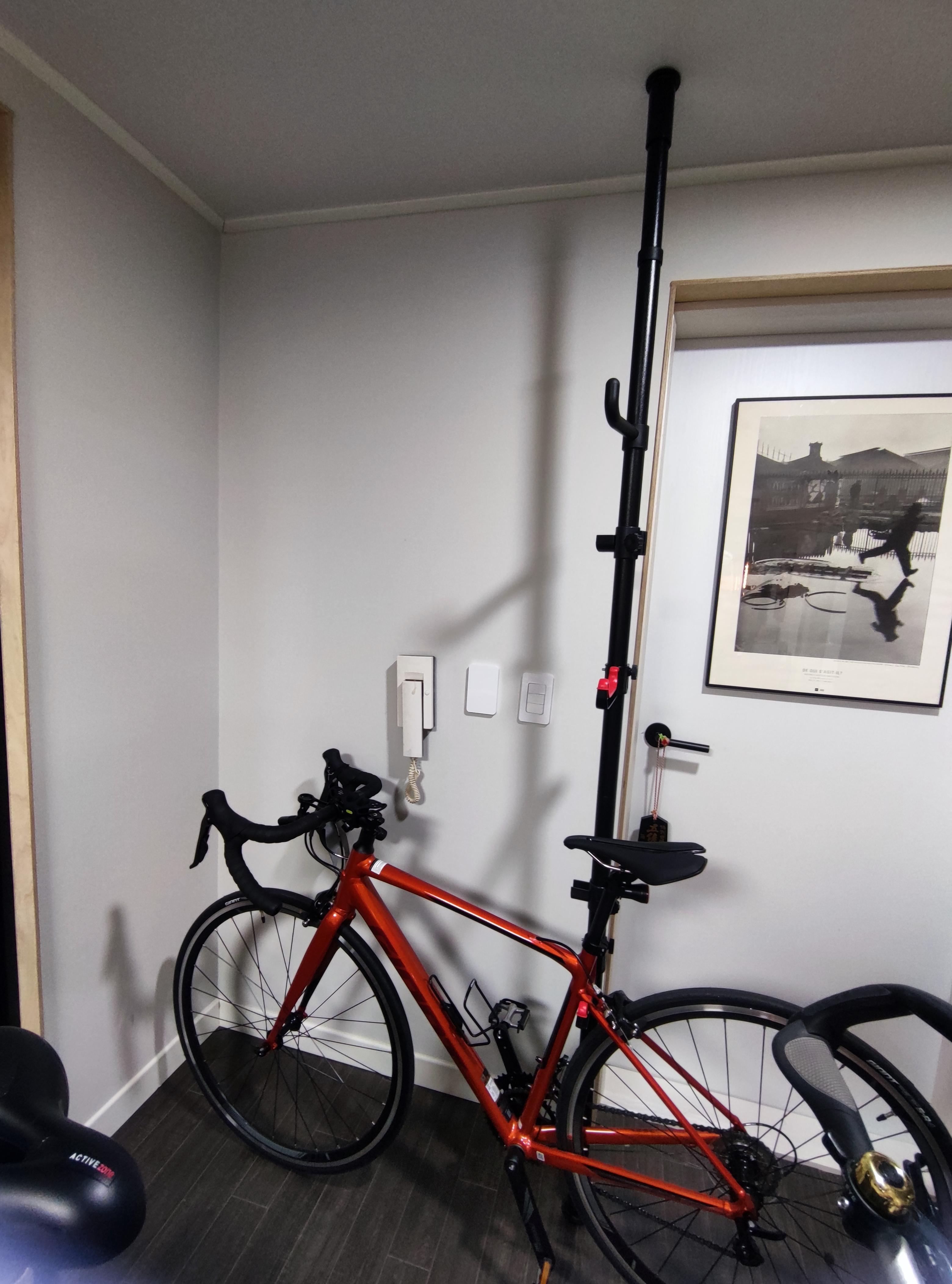 자전거를 슬쩍 거치해서 설치 완료 시의 거치 상황을 시뮬레이션 해보며 위치를 확인한다.