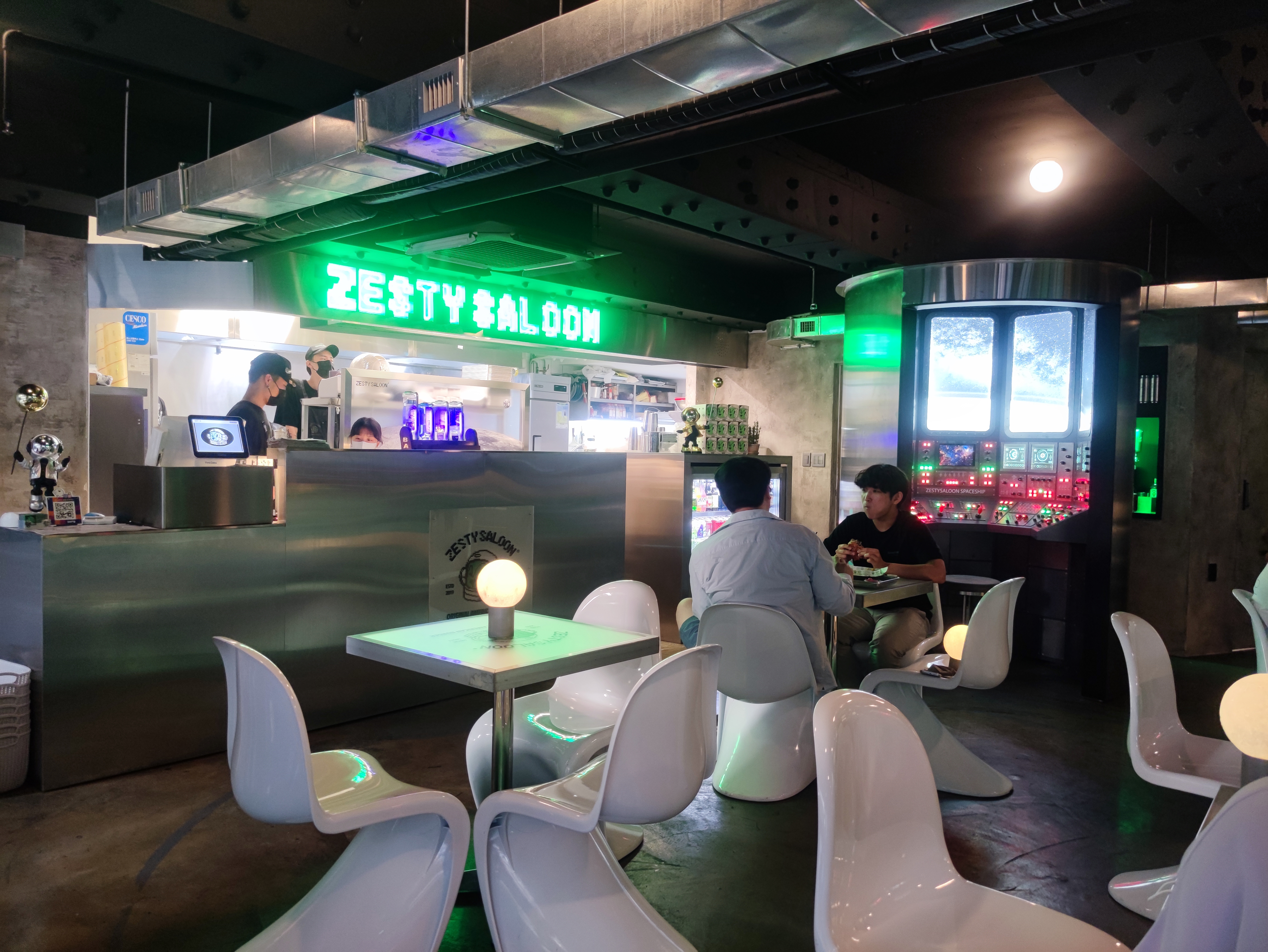 실내는 실버 톤의 금속재질과 미래 지향적인 가구들로 채워져 있다.