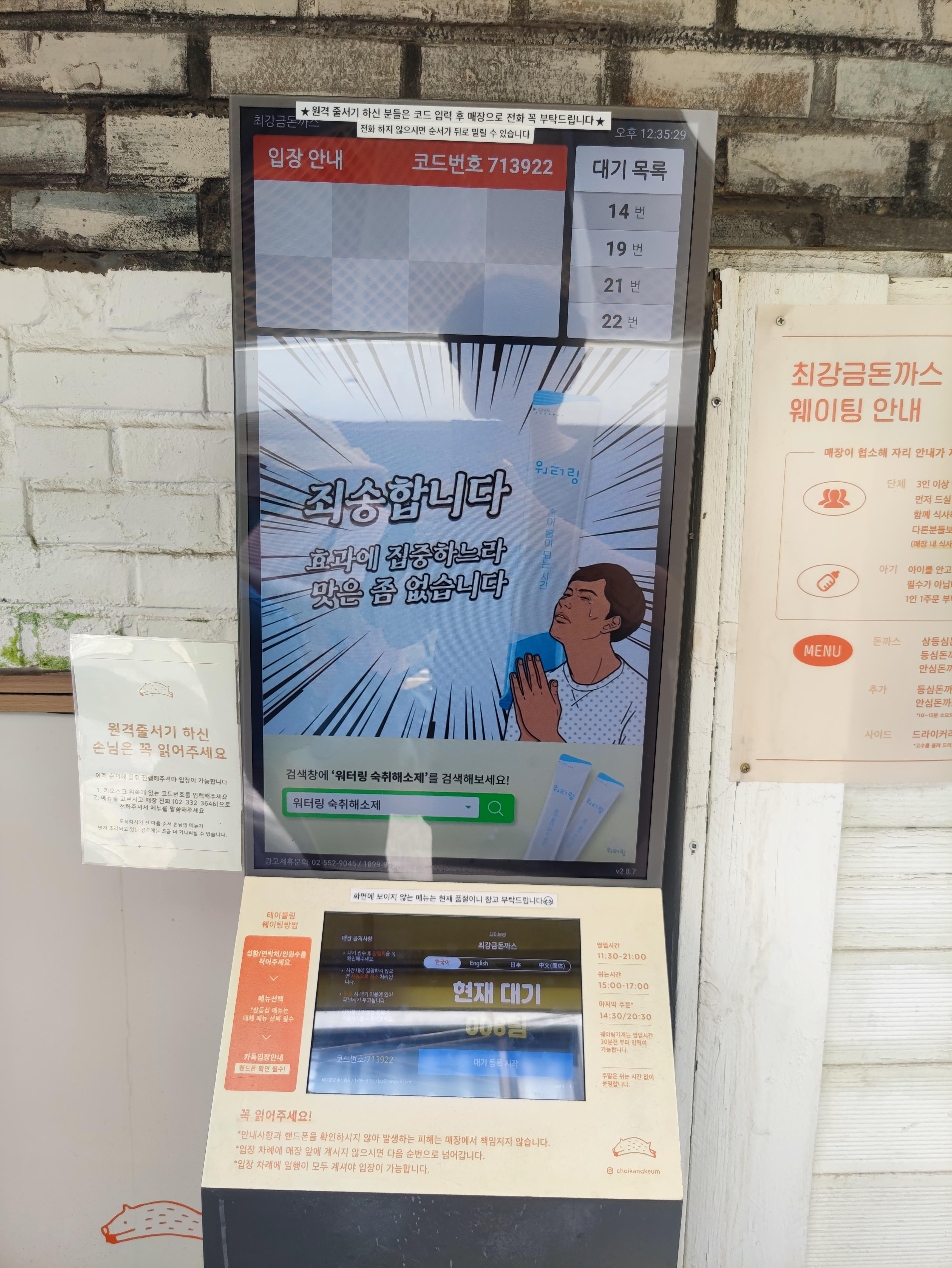 줄서기를 등록한다음 현장에 가서 기계에 등록코드를 입력하면 대기줄에 등록된다.