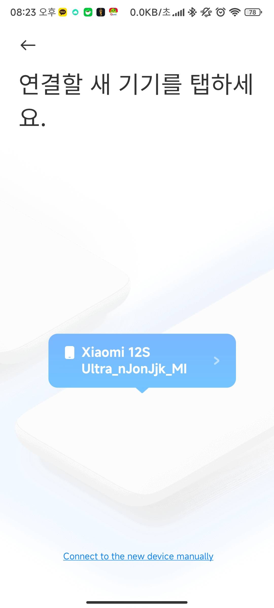 두 개의 핸드폰을 가까이 붙여놓고 작동시키면 12S의 이름이 뜬다.