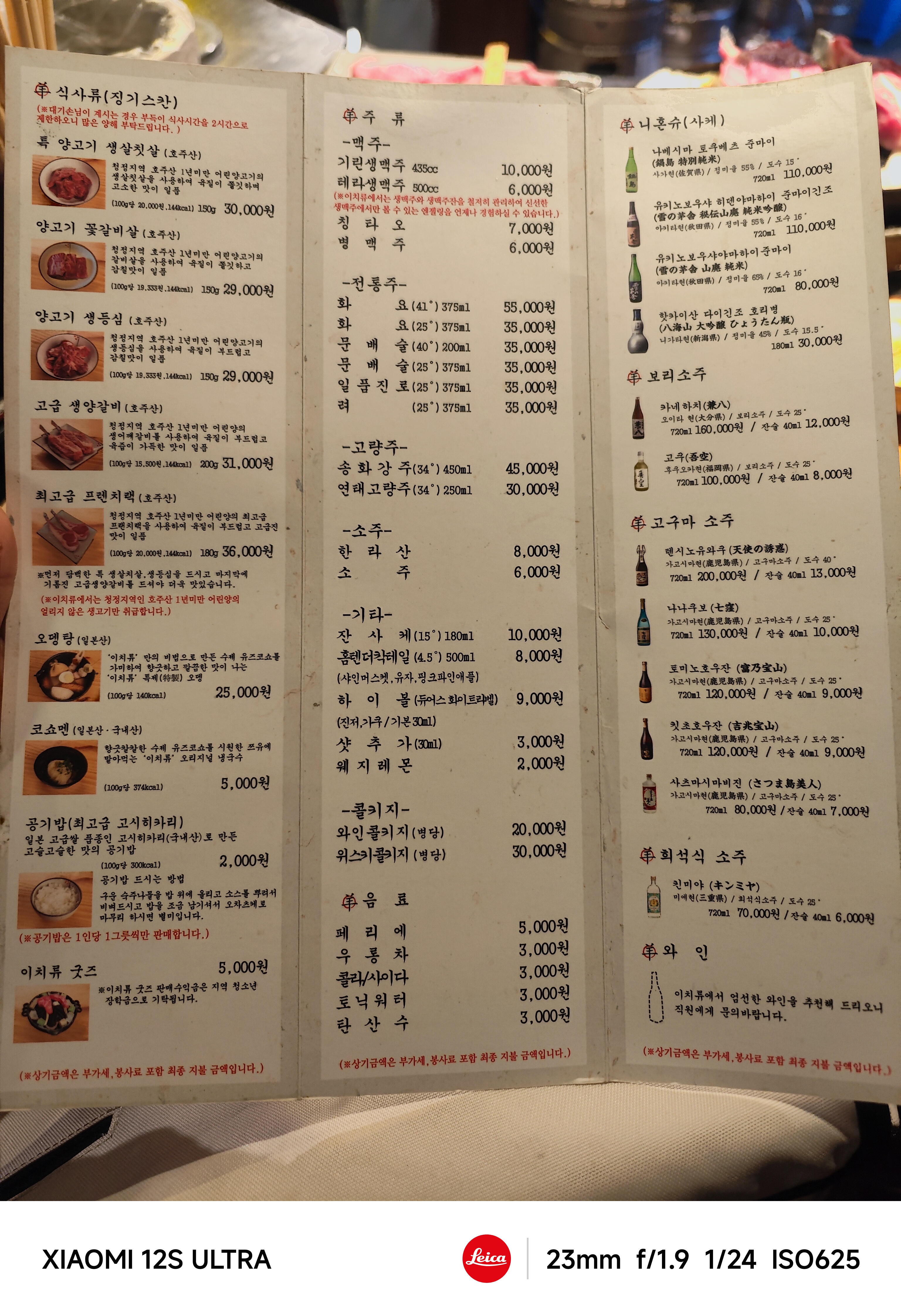 메뉴는 살칫살, 꽃갈비살, 생등심, 생양갈비, 프렌치랙 5개가 메인인 양고기이고, 그 외에 오뎅탕이나 이런 저런 요리가 있다만 아무래도 우리 관심은 양고기에 있다고 봐야겠다.