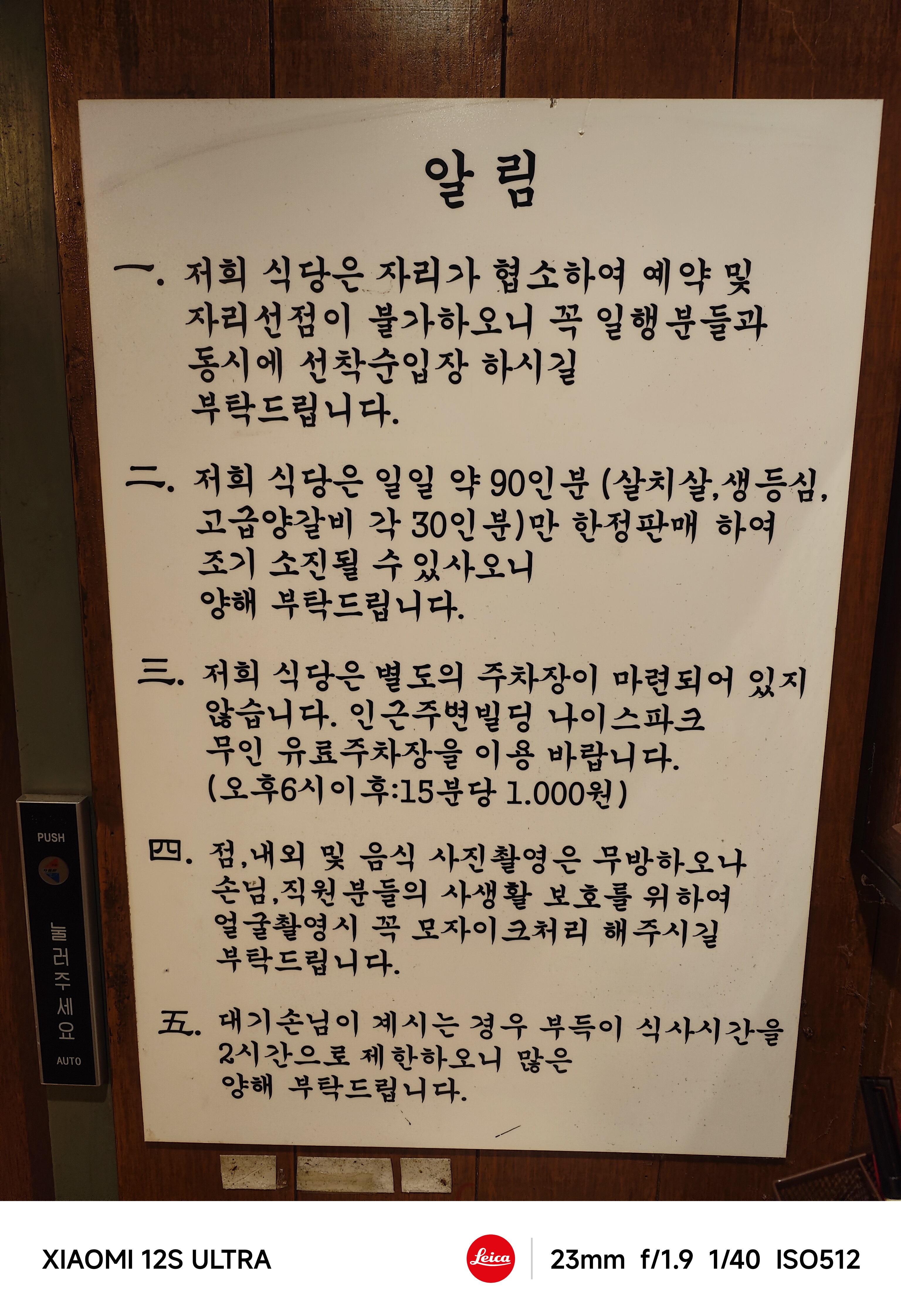 대기 명단에 이름을 적고 자리에 앉는데까지 정확히 1시간이 걸렸다.