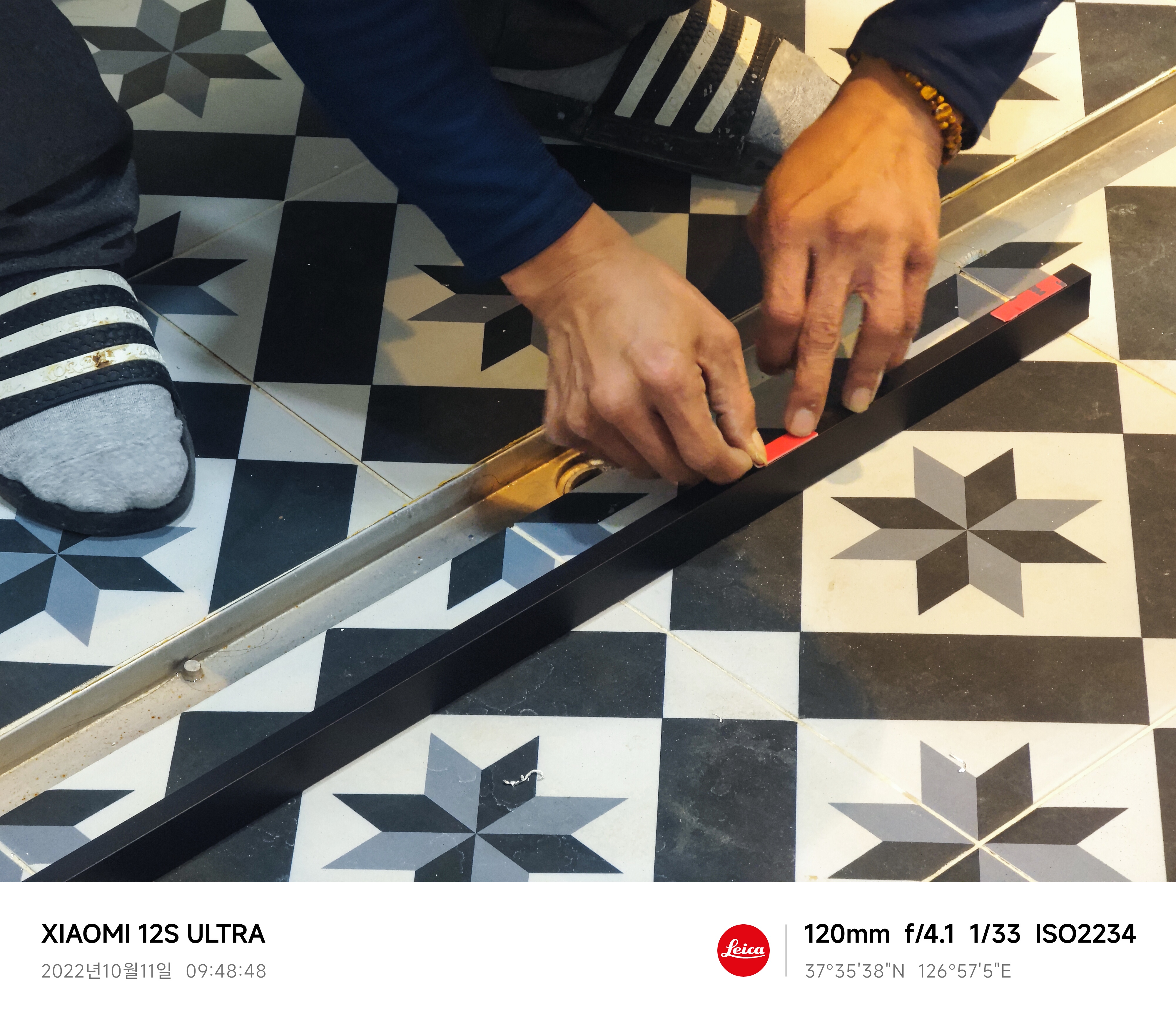 바닥에 양면테잎을 쓰는 이유는 바닥에 구멍을 냈다가는 자칫 난방 배관에 구멍을 낼 수 있기 때문이다...ㅠ
