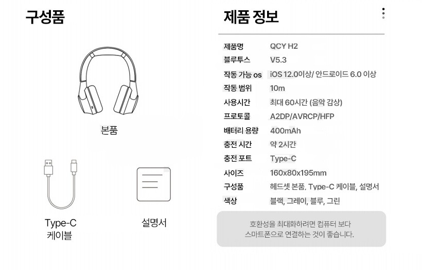 QCY H2 헤드폰의 후기는 이렇게 한 마디로 정리할 수 있을 것 같다.