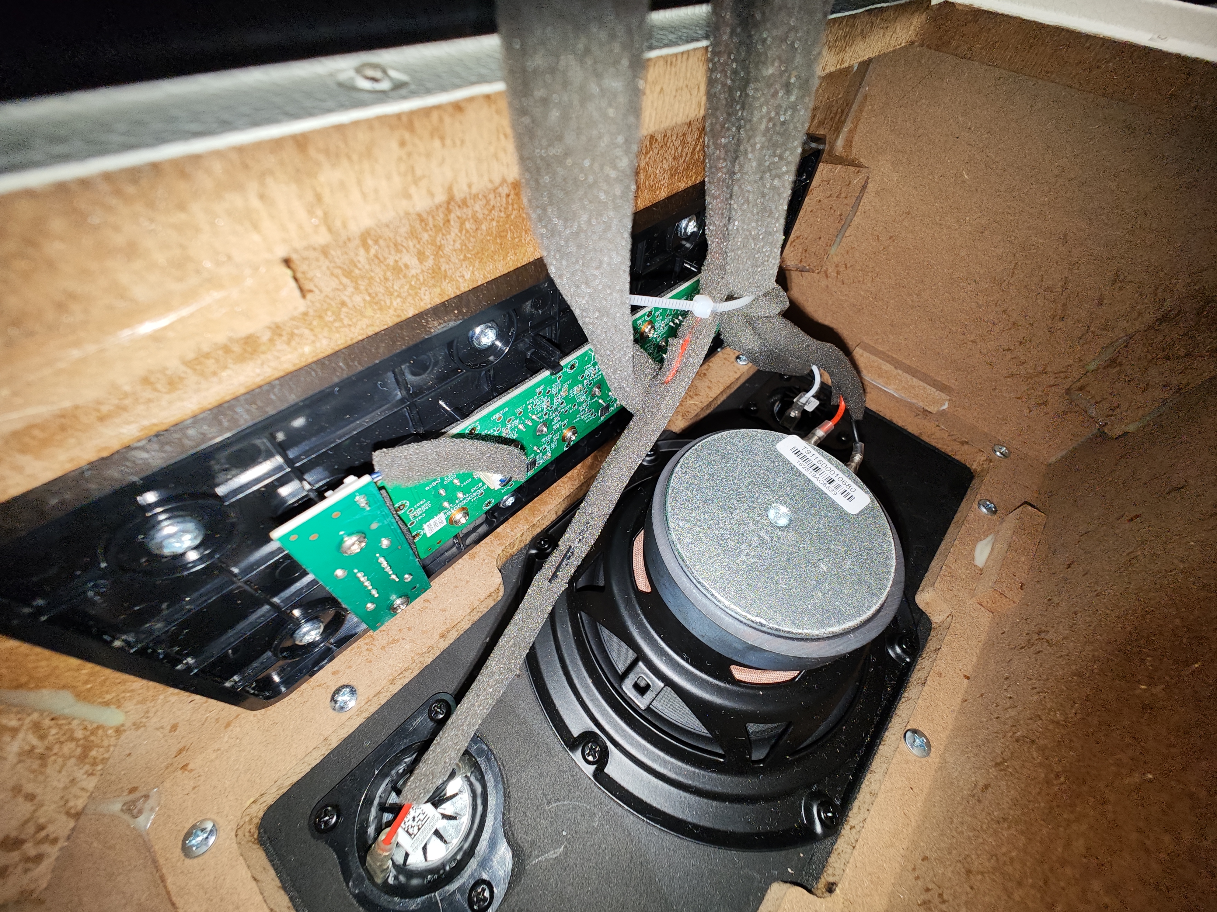 메인보드-컨트롤패널 사이의 케이블만을 우퍼 덕트 너머로 감아서 연결하고, 이 케이블이 움직이지 않게 한번 더 덕트에 고정시켰다.