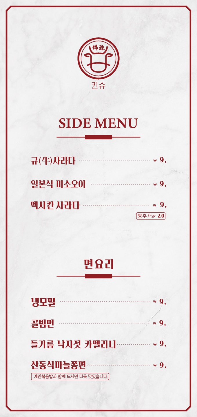 그 외에도 샐러드, 면요리, 국물요리와 식사 메뉴까지 있어서 상당히 선택의 폭이 넓다.