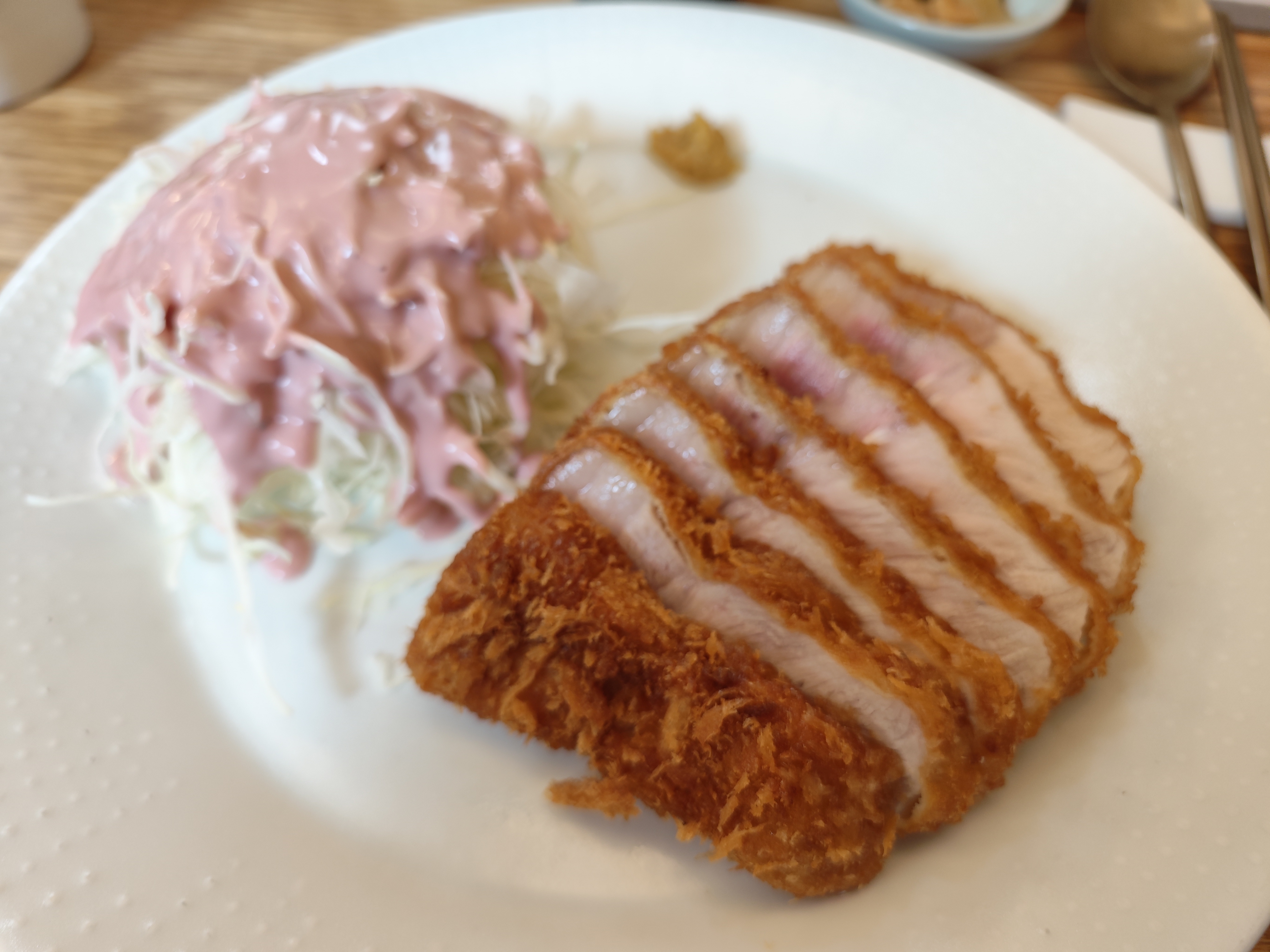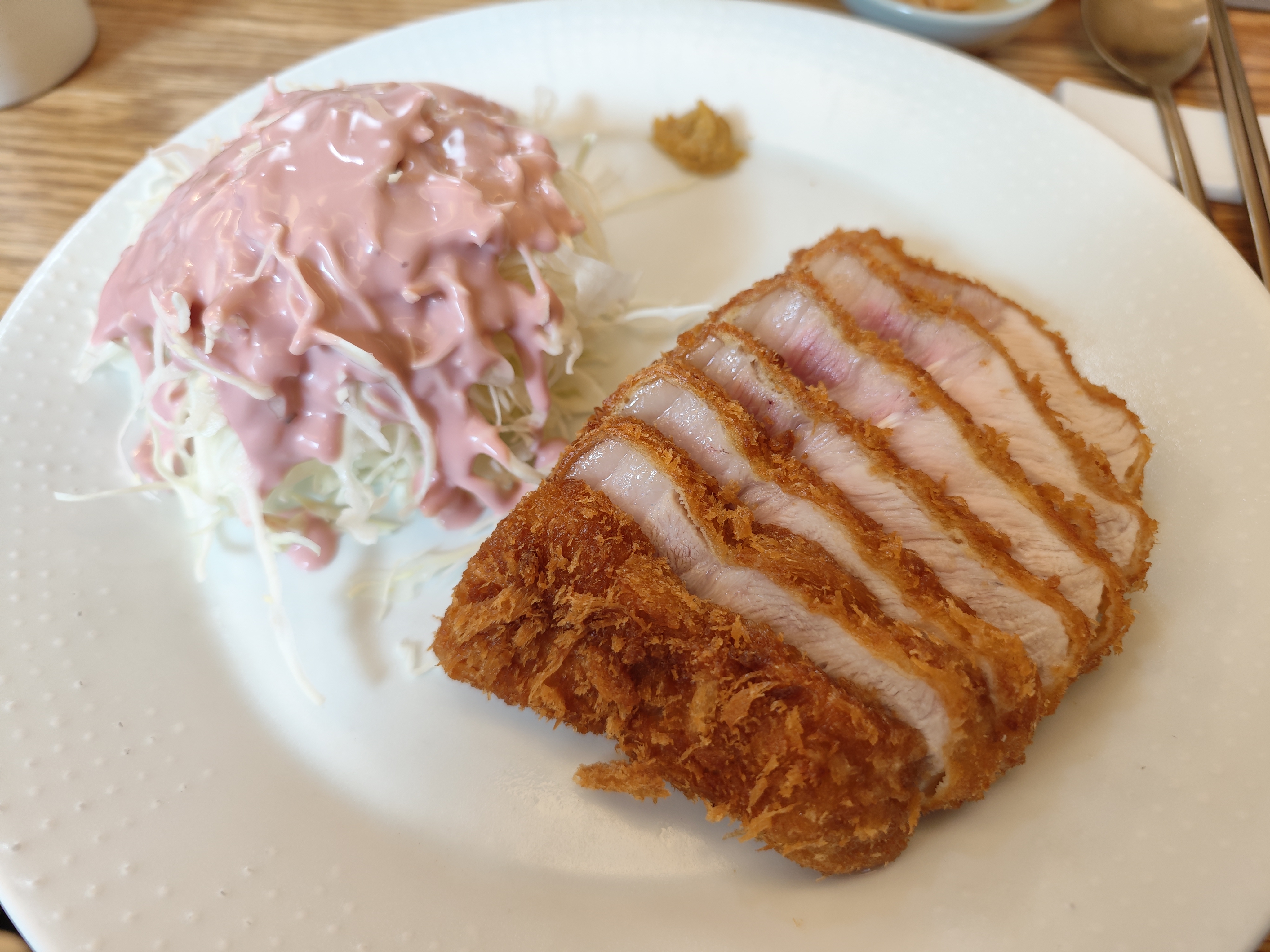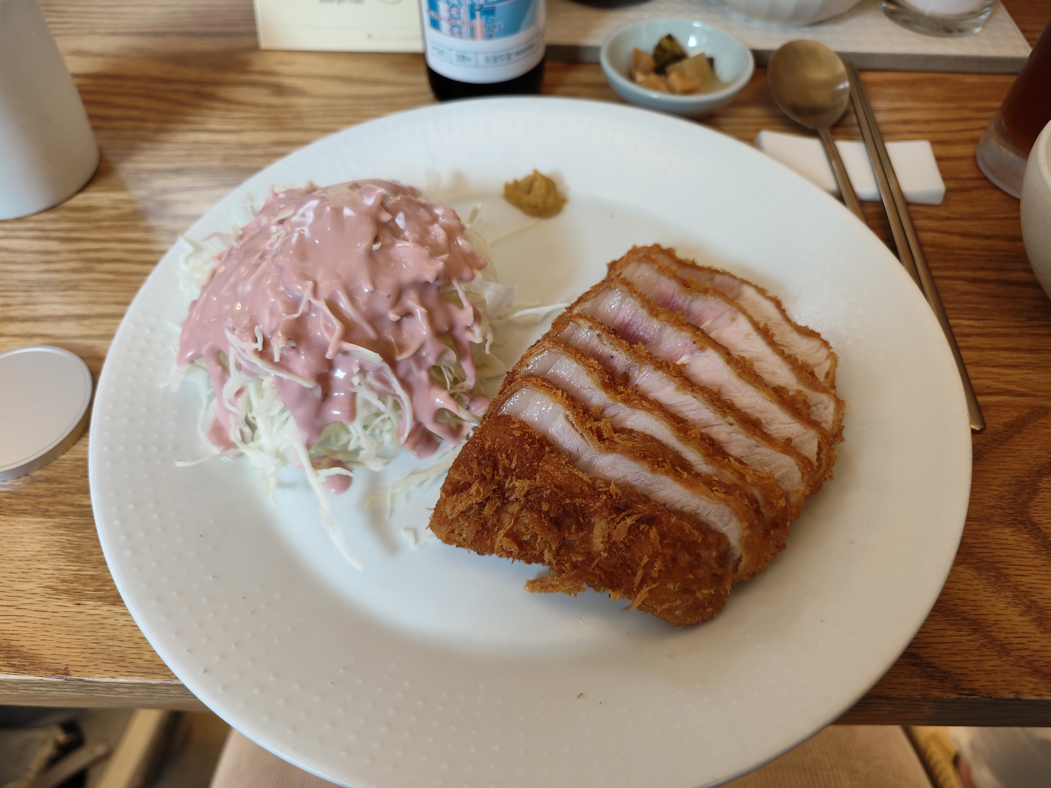 게다가 살짝 붉은 빛이 돌던 지난 포스팅의 돈까스와 달리 꽤 오버쿡된 것으로 보인다는 거다.