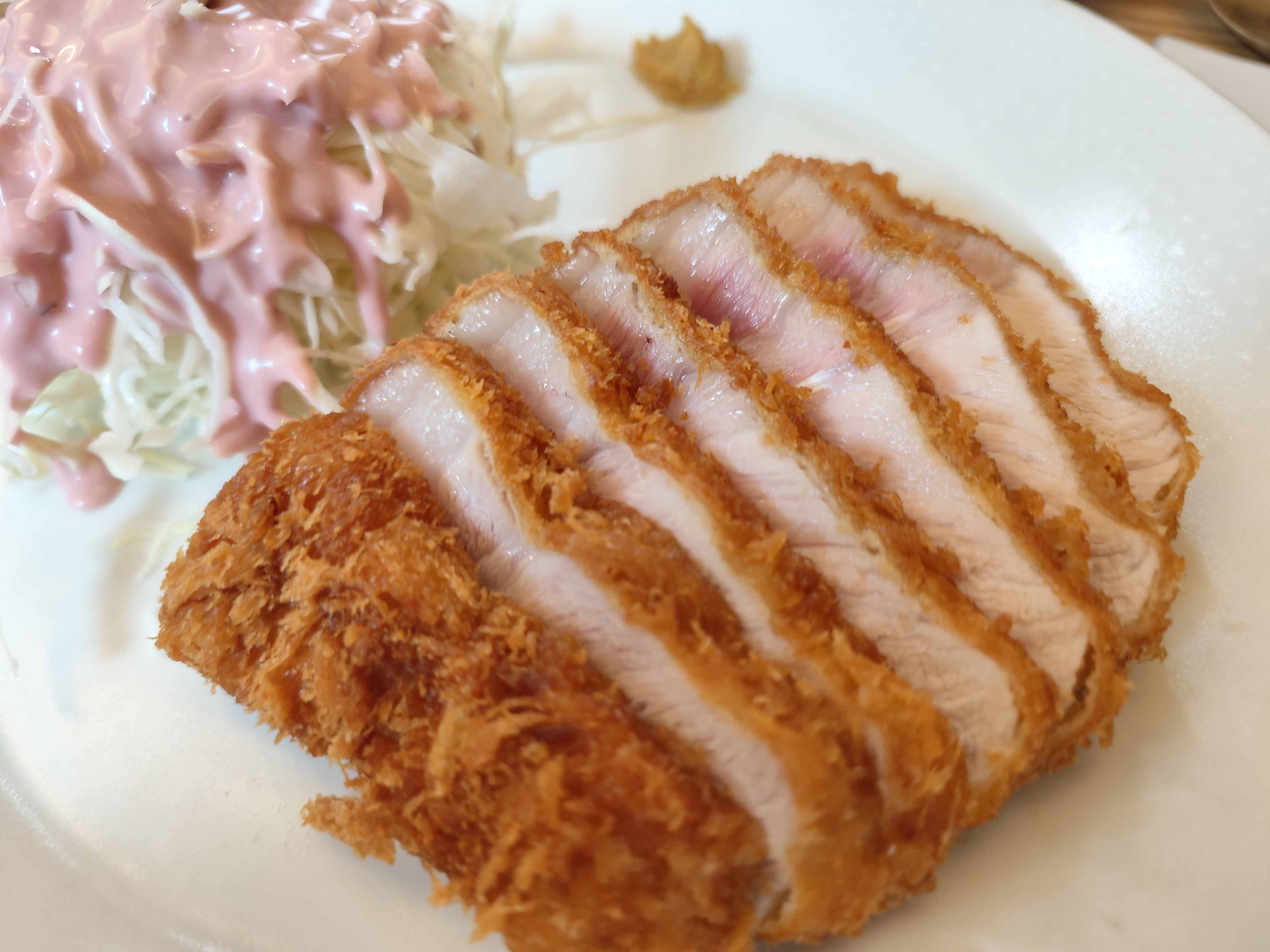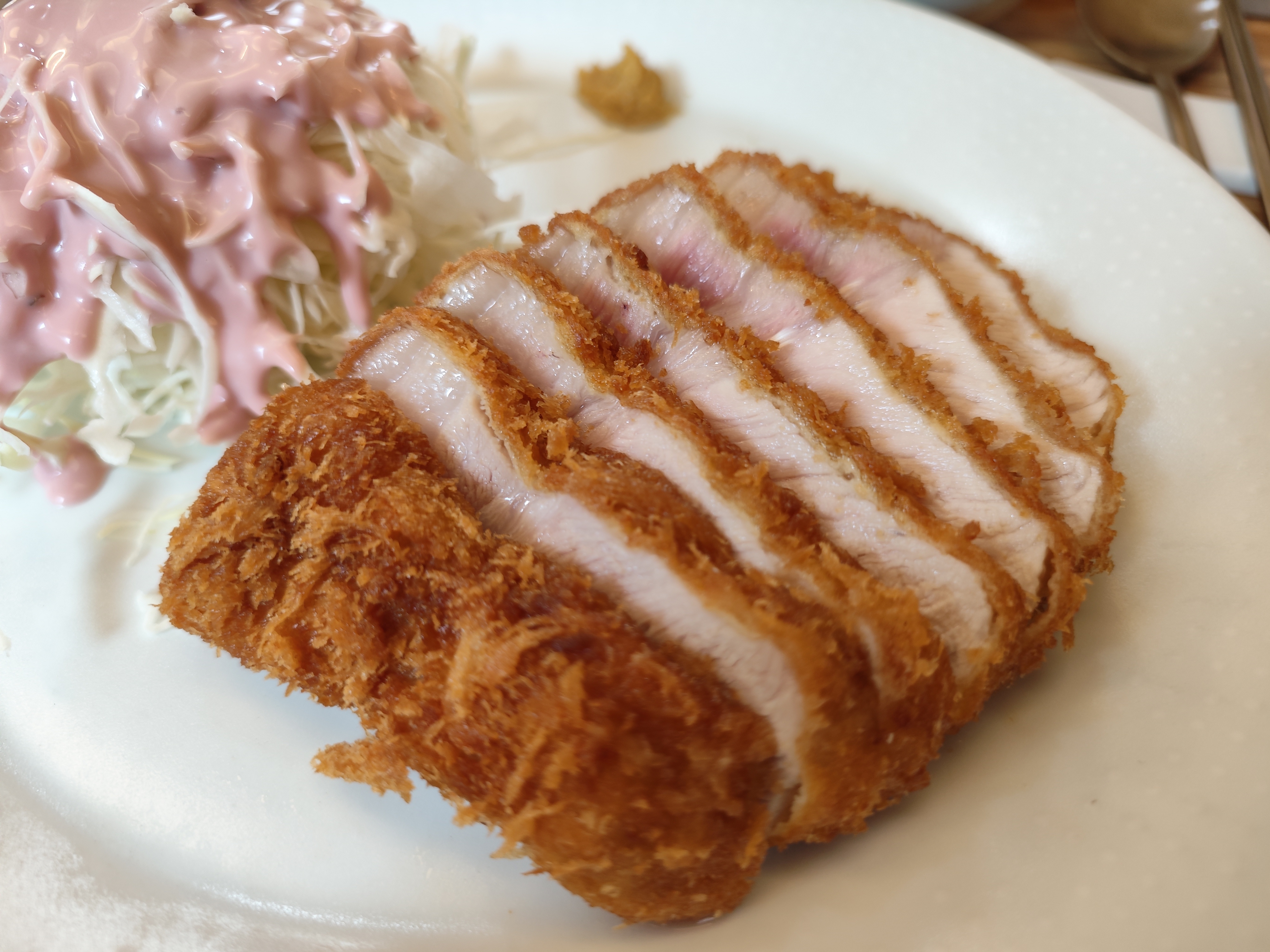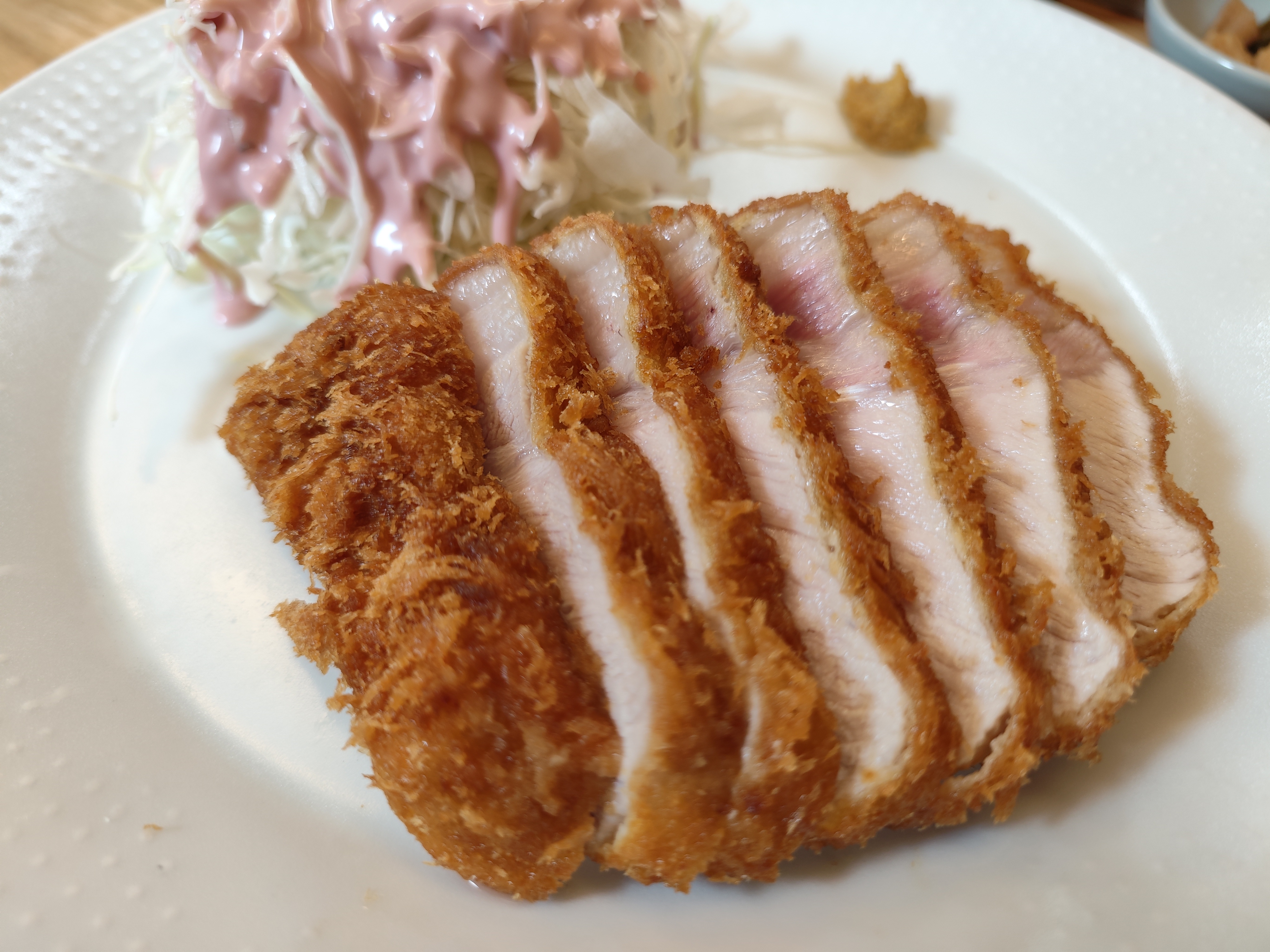 게다가 살짝 붉은 빛이 돌던 지난 포스팅의 돈까스와 달리 꽤 오버쿡된 것으로 보인다는 거다.