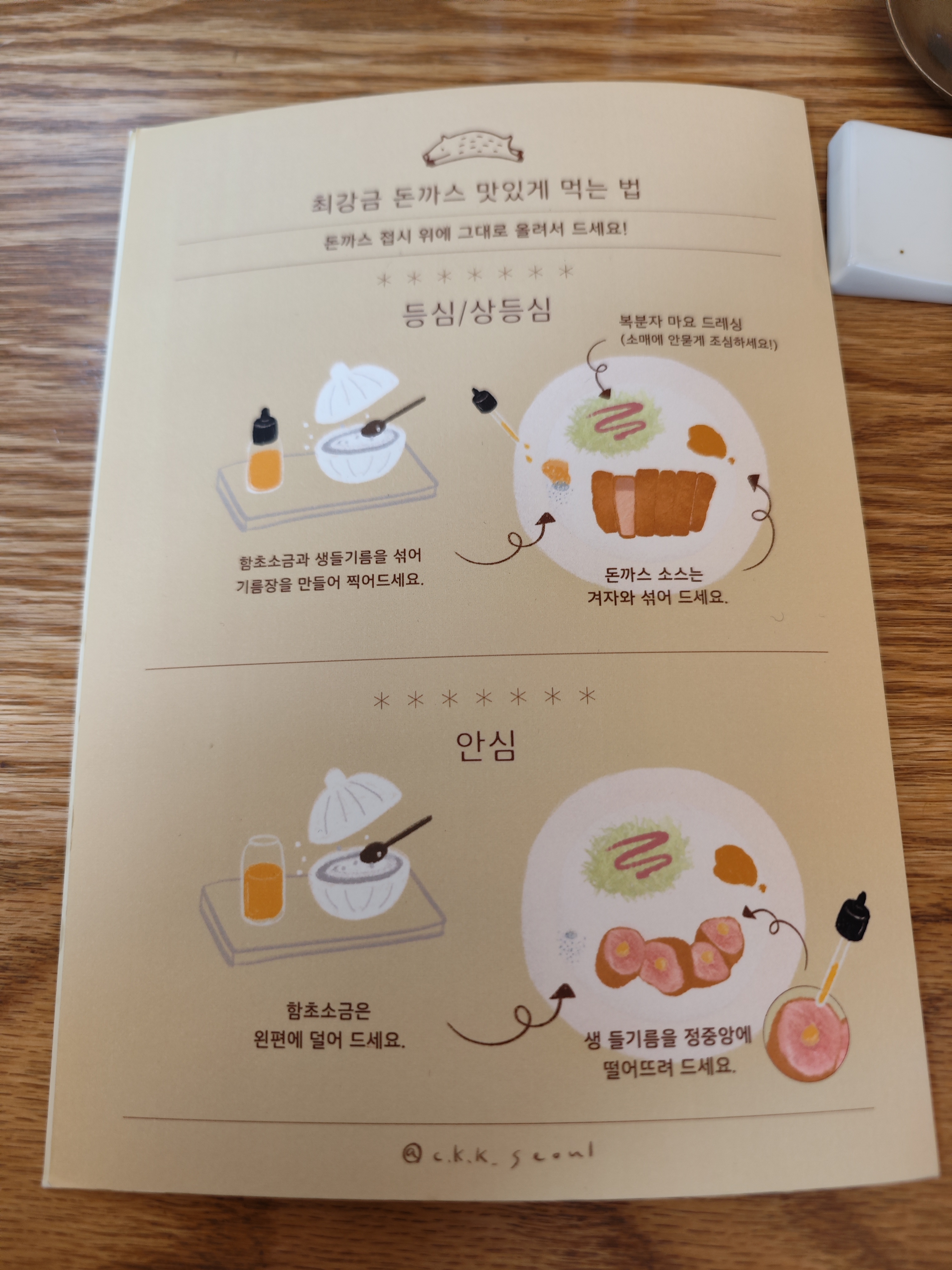 기본 돈까스 소스는 구색 맞추기용이고, 들기름 + 소금이 진짜다.