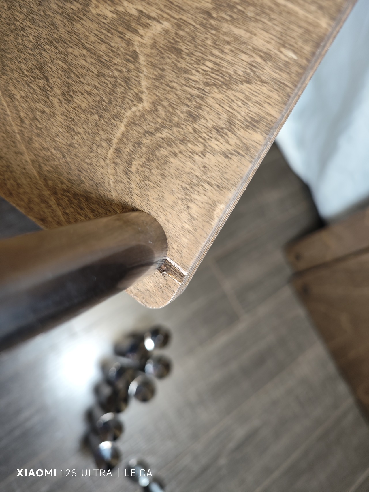 구멍을 뚫을 때 요령이 없으면 아래 사진처럼 합판 마지막 부분이 찢어진다.