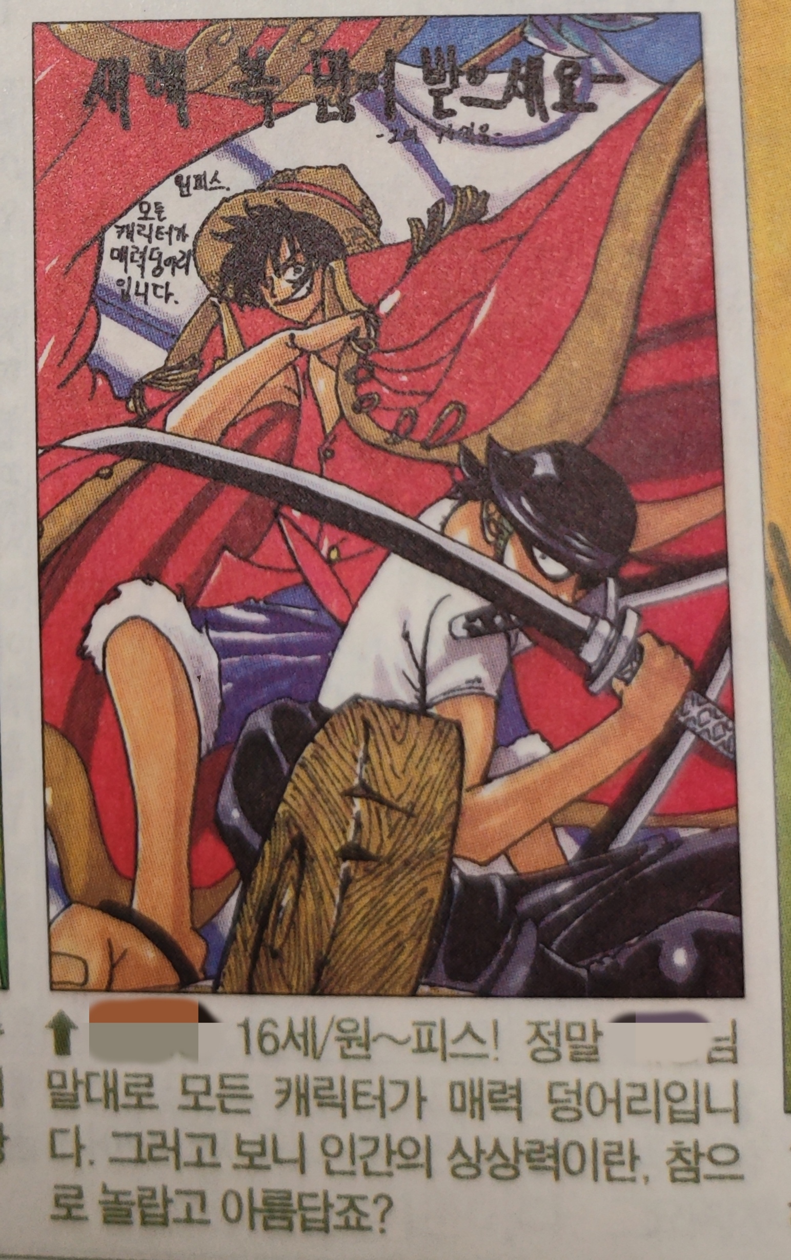 당시에 아마 원피스에 빠져있었던 때로 아버지께 선물로 받은 마커 펜으로 색칠까지 열심히 해가지고 보냈었다.