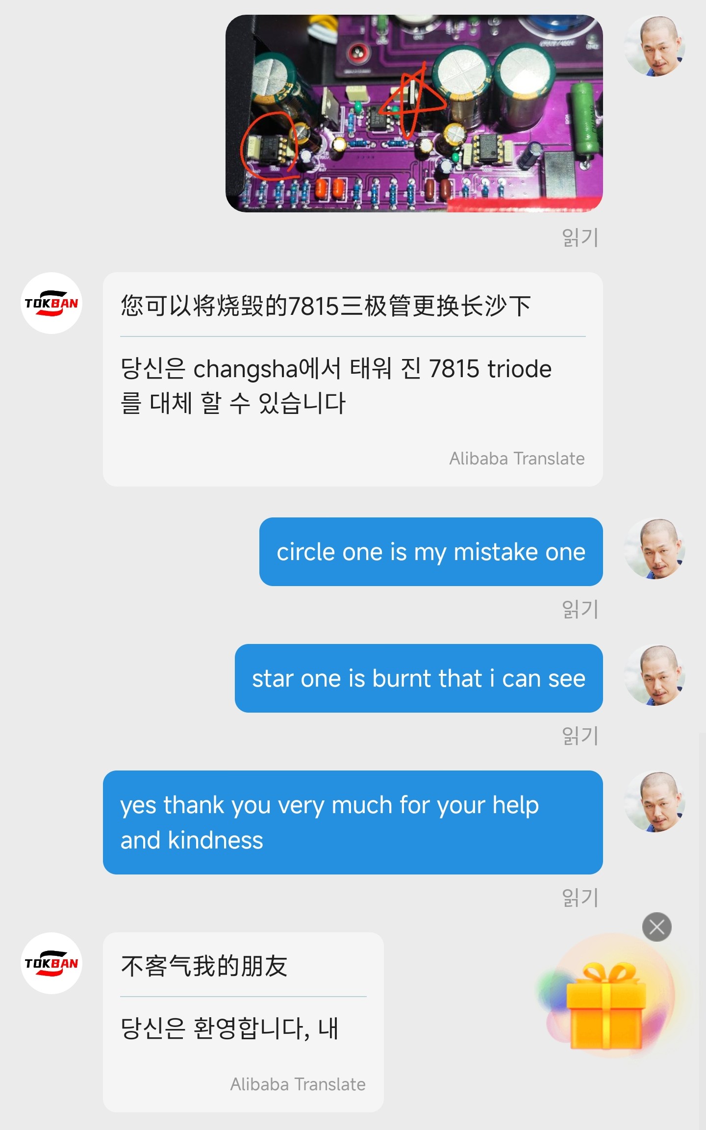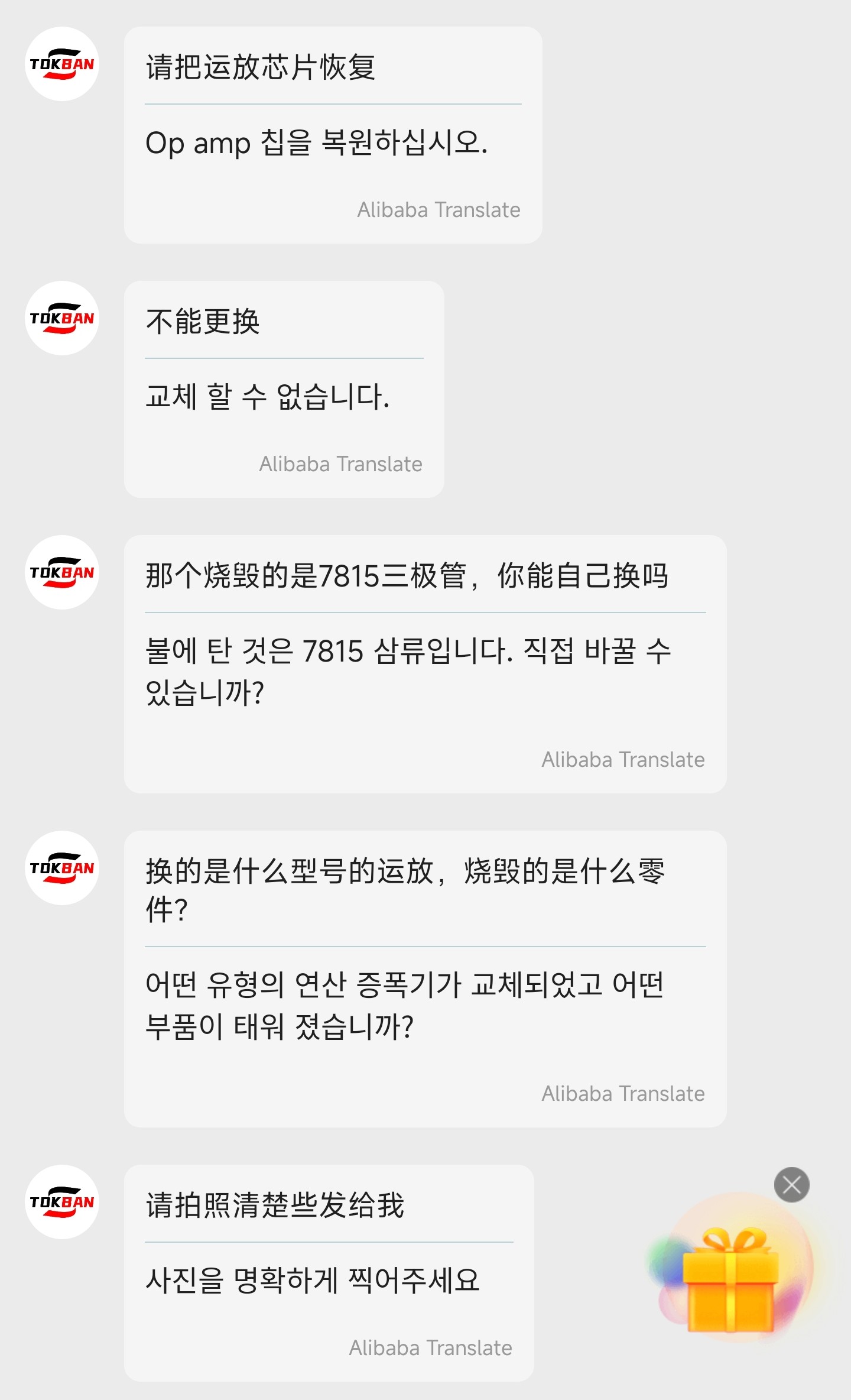 그래서 톡반 공식 셀러에게 문의했습니다.