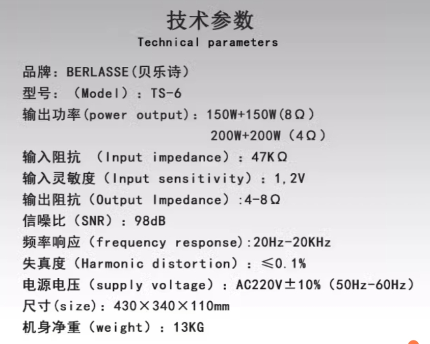 기본 스펙은 위와 같으며, 8옴 150W, 4옴 200W 출력으로 TS-12의 3/4 정도의 출력이다.