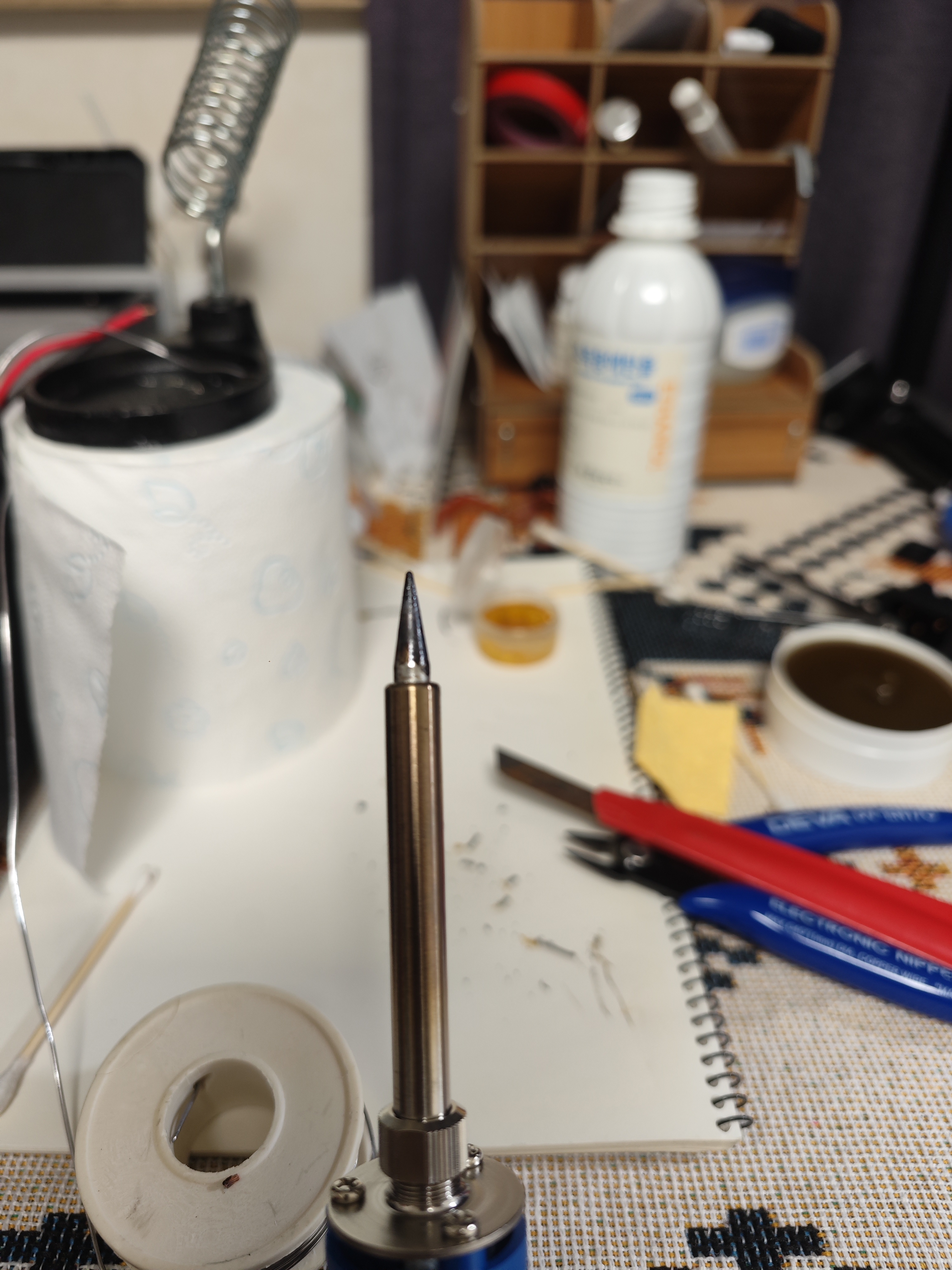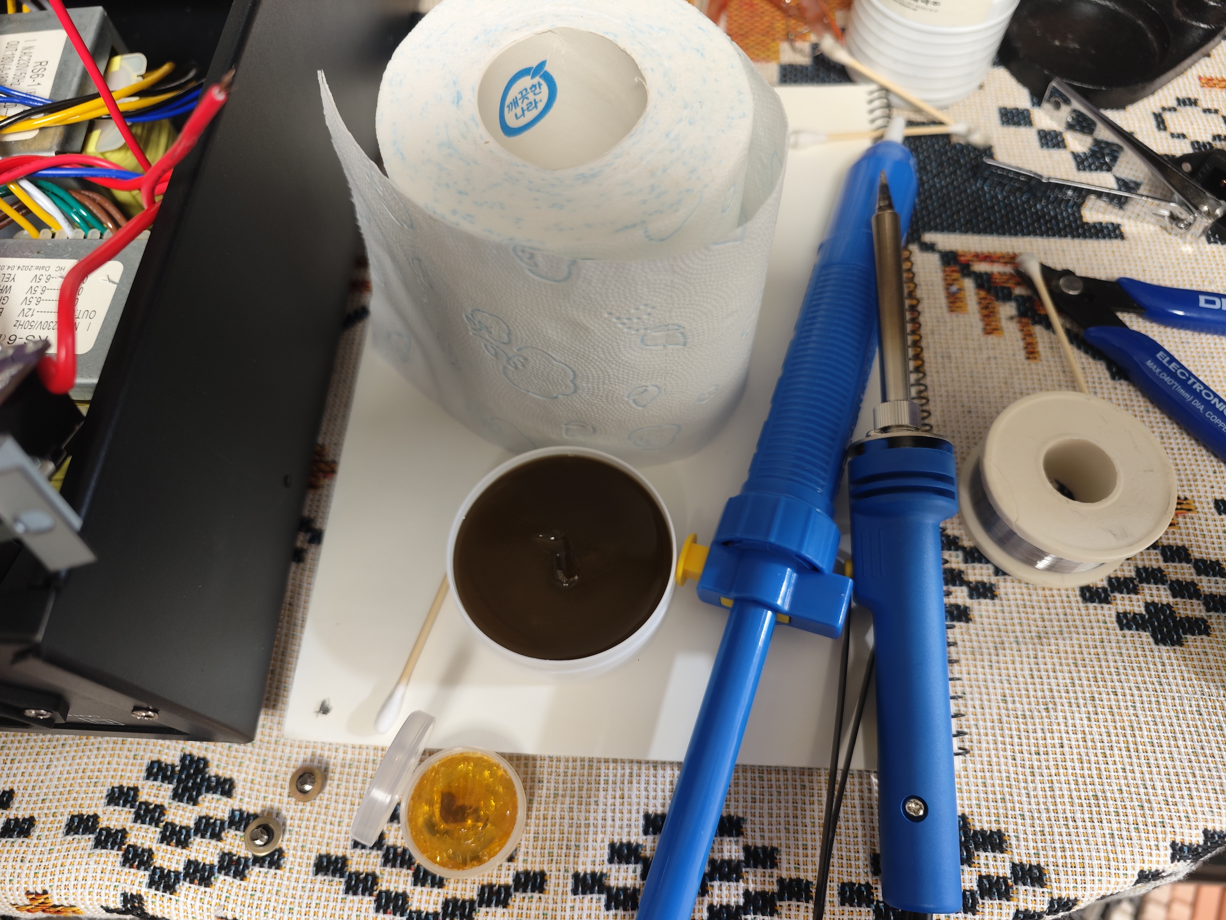 안타까운 것은 필자는 인두 팁에 납이 묻어있으면 안 되는 줄 알고 다 긁어낸 것이었는데 이후로는 납에 열전달이 안 되는 바람에 작업이 제대로 되지 않았다.