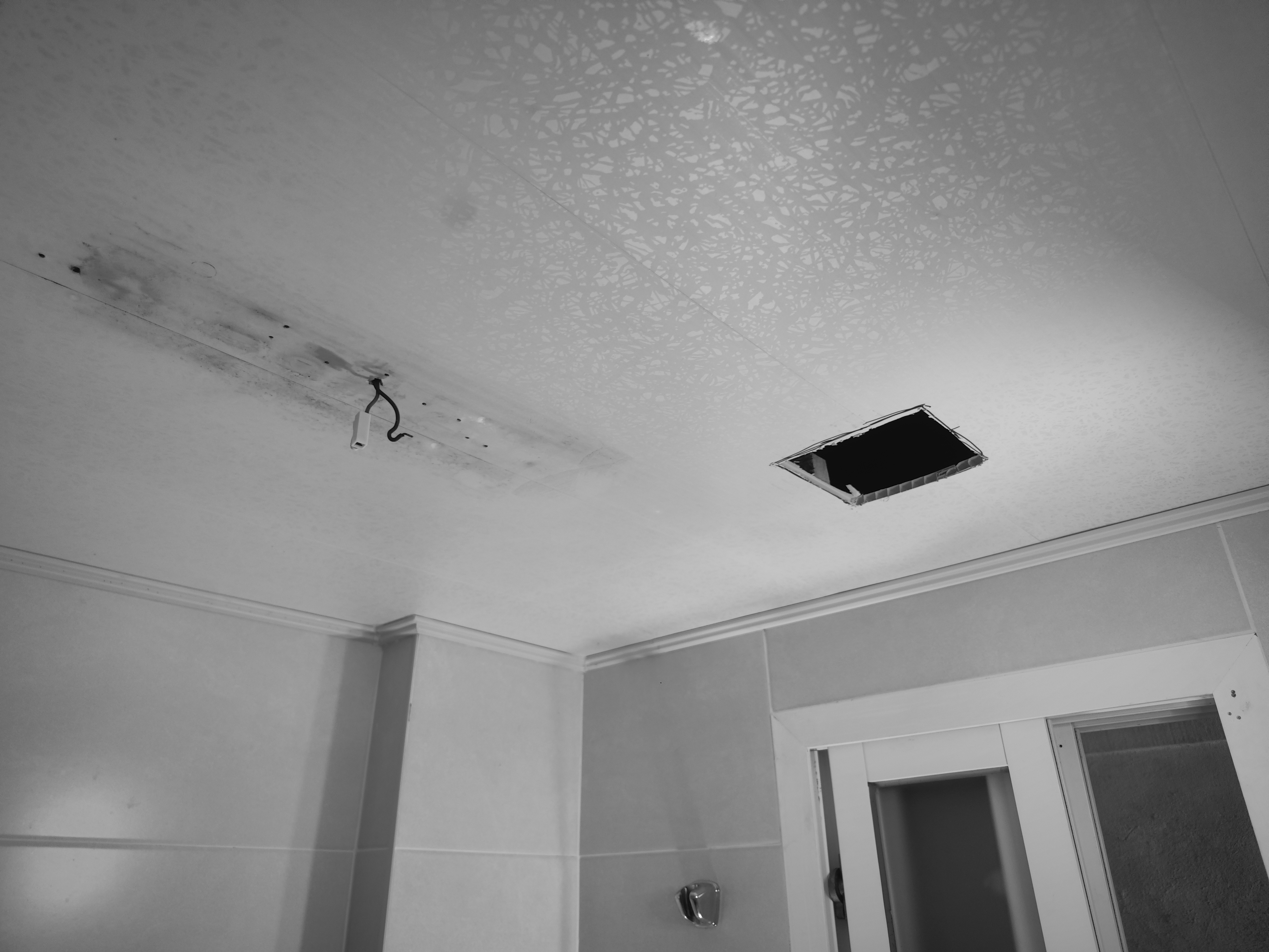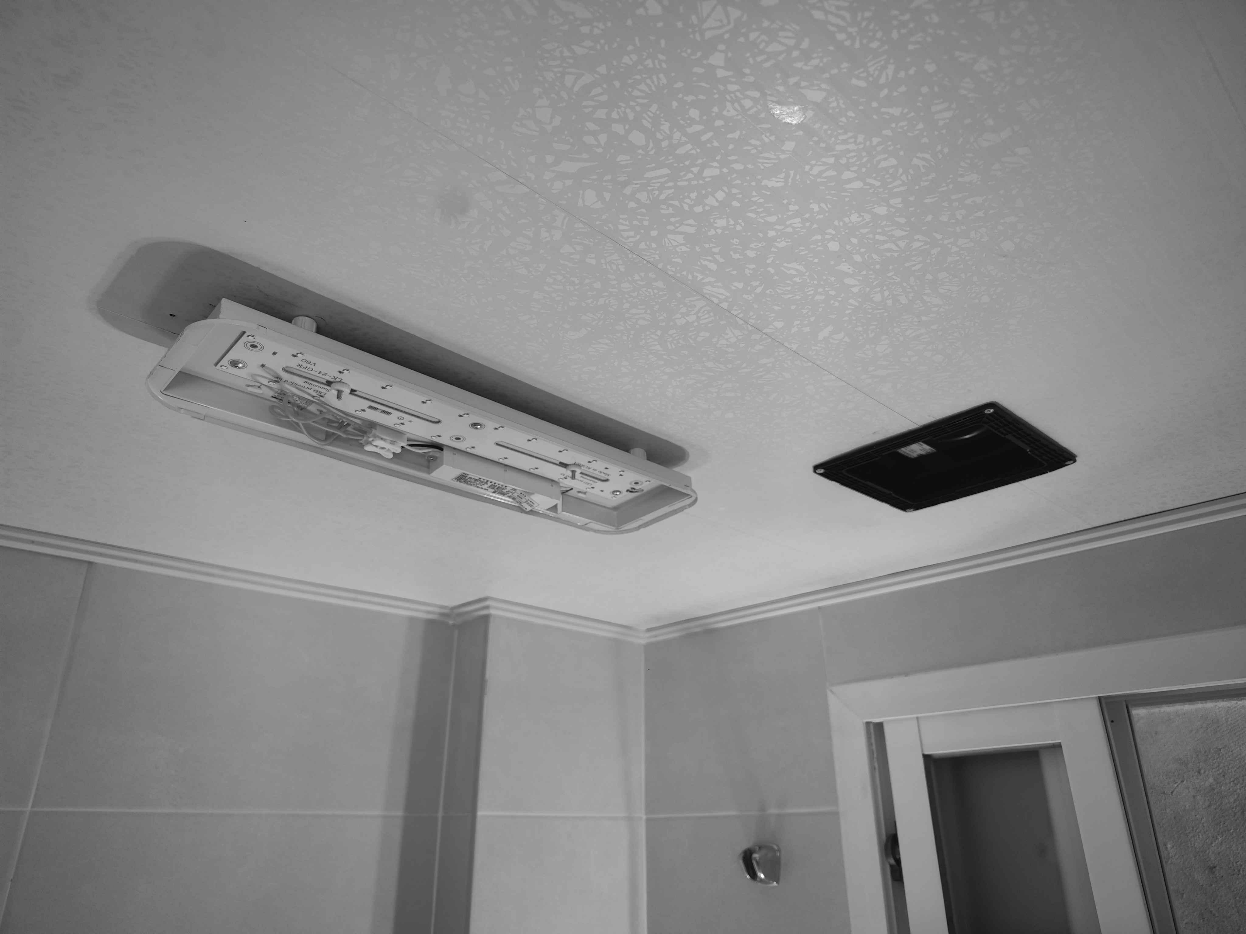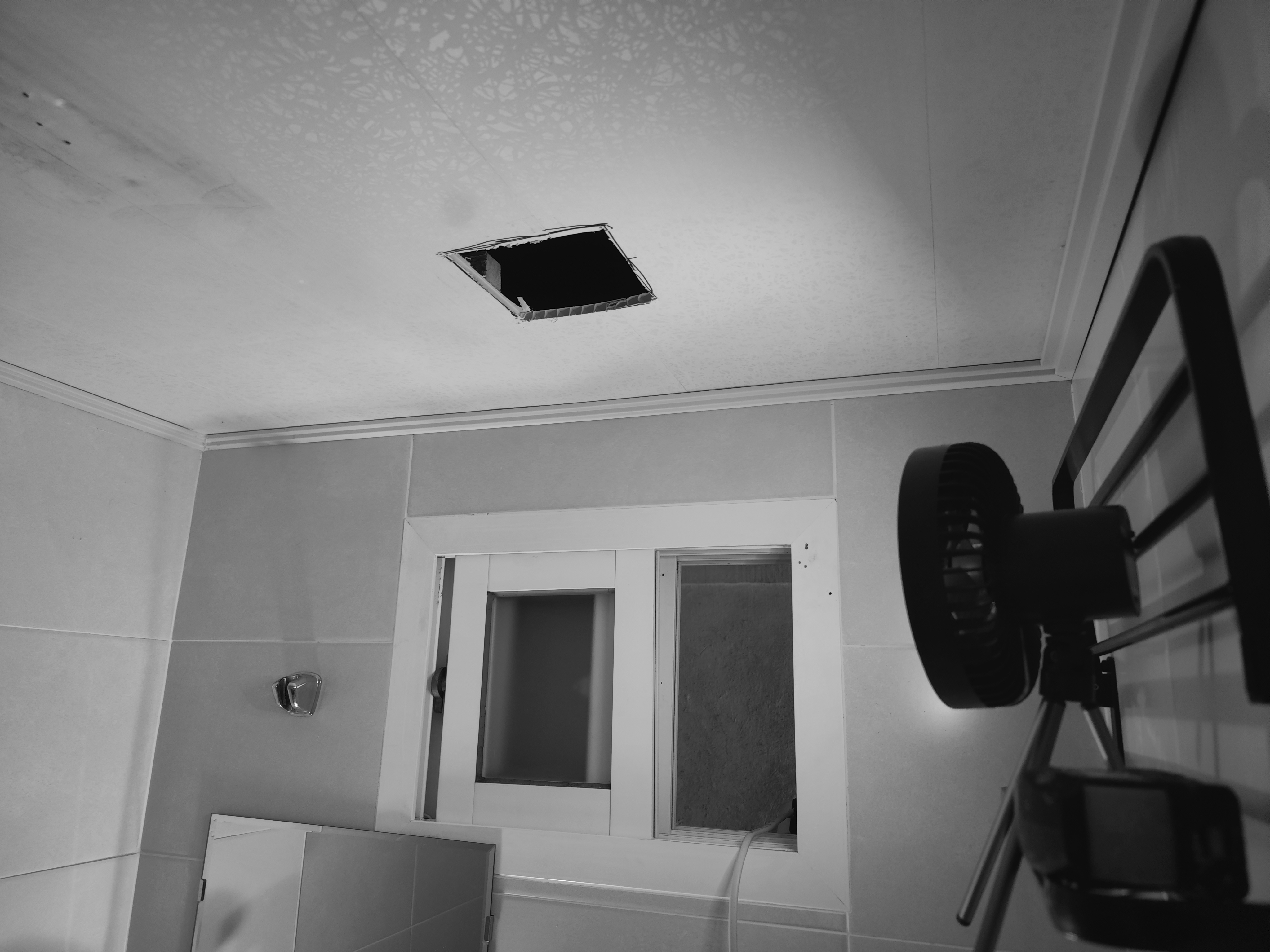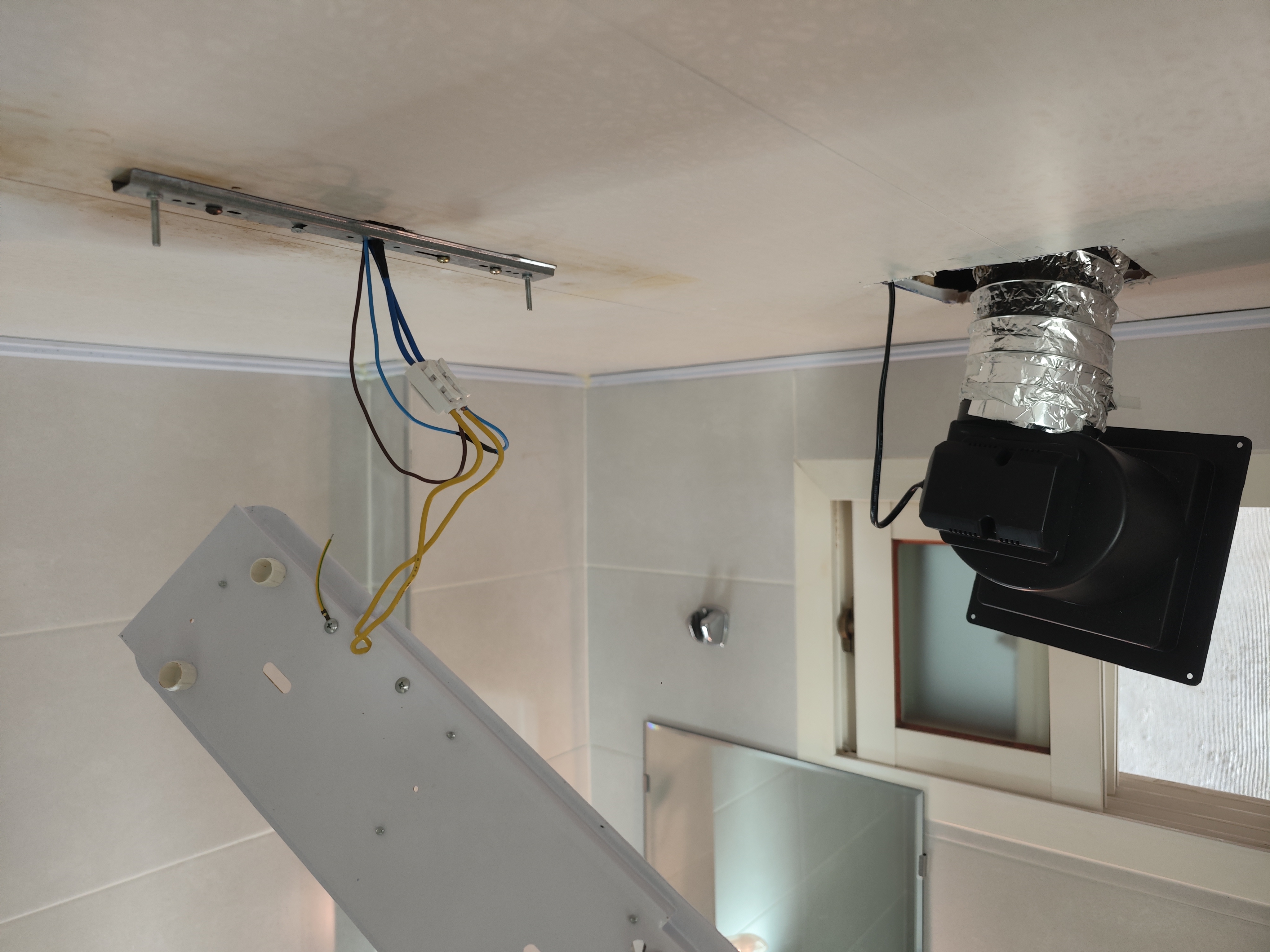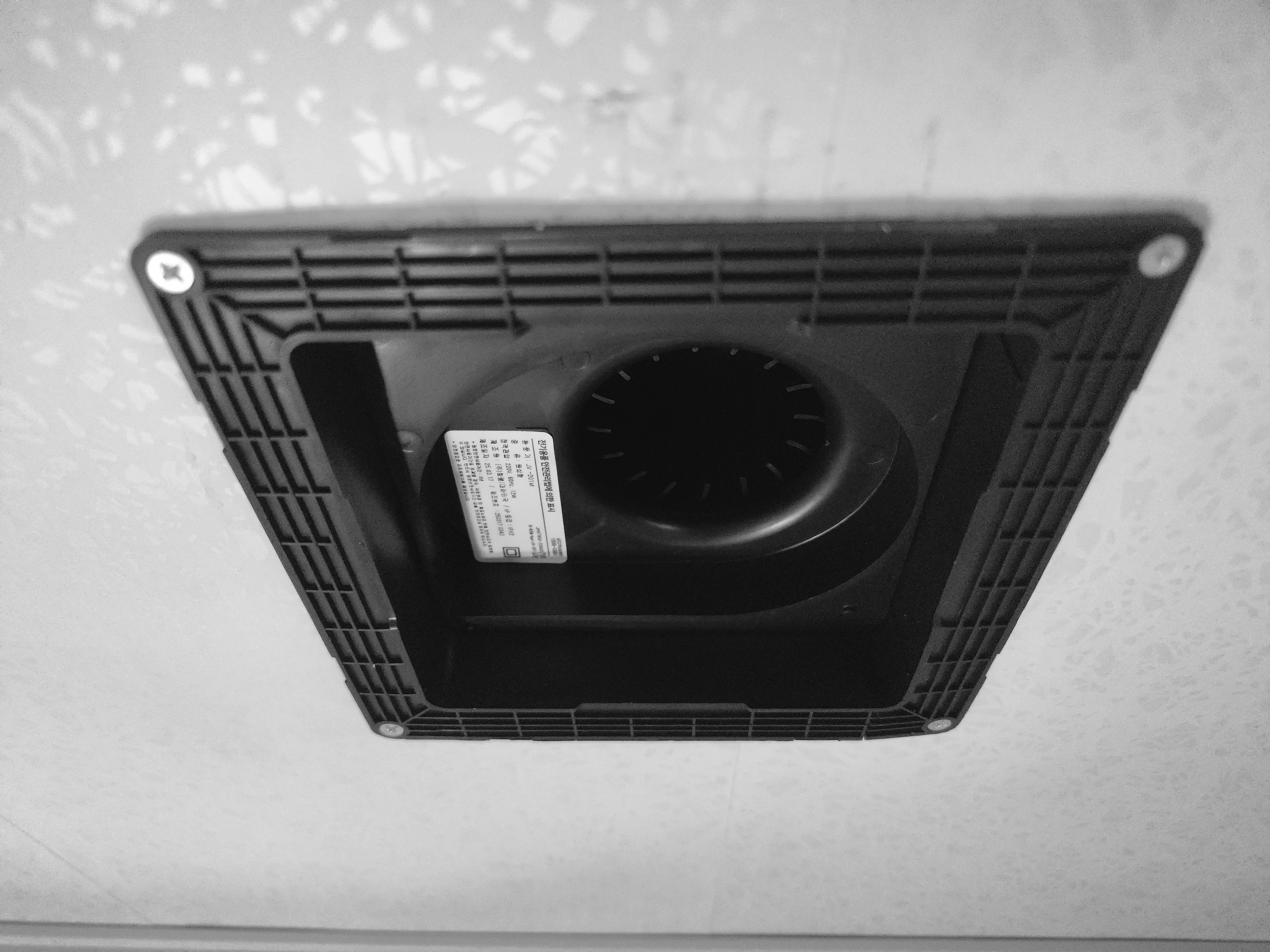 그러면 문제가 무엇이냐, 화장실 천장에 이전에 설치된 환풍기가 없다는 것