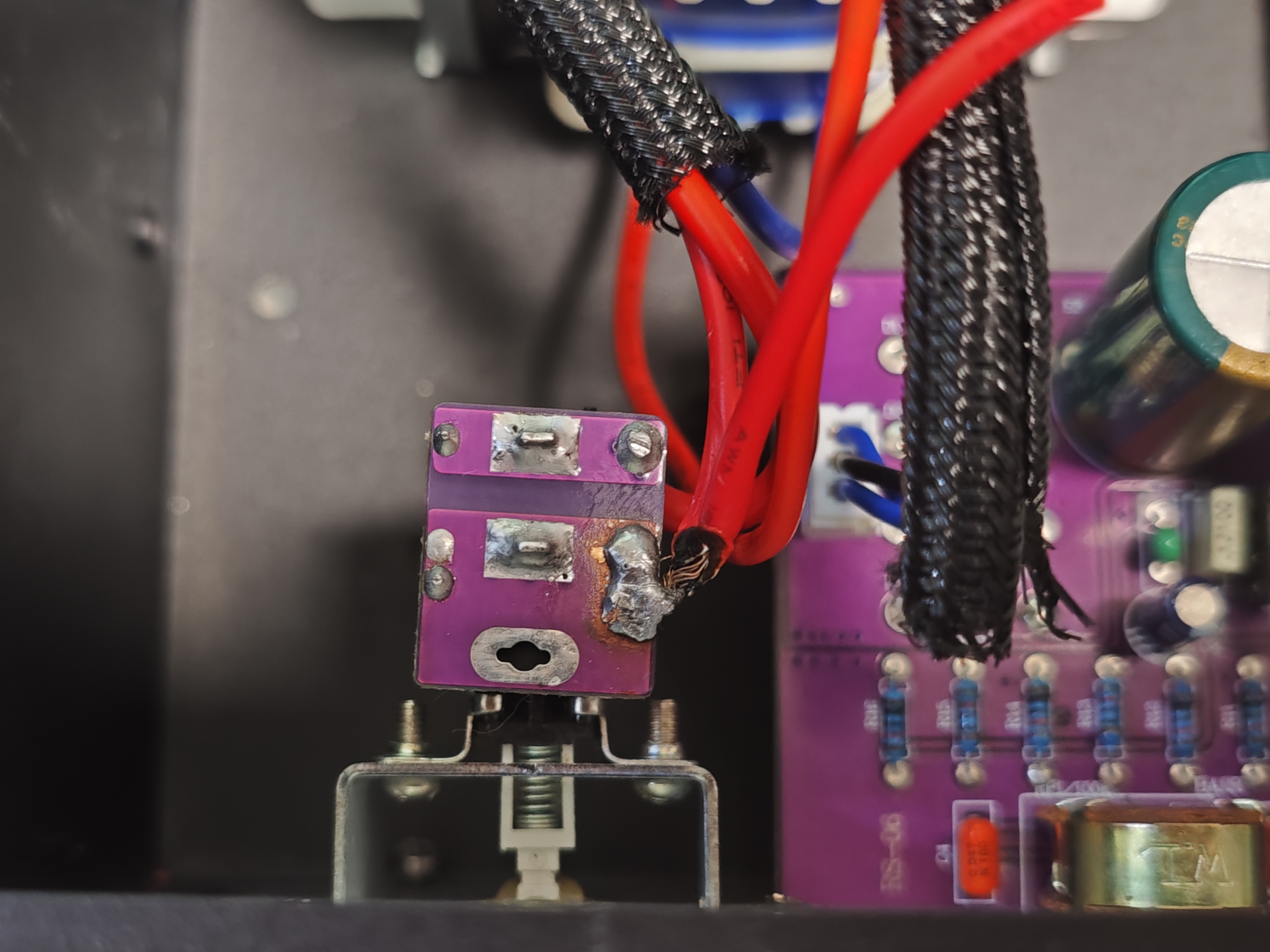 너무 과하게 붙은 납을 좀 떼내고 녹아내린 전선도 좀 잘라내고 깔끔하게 마감을 했다.