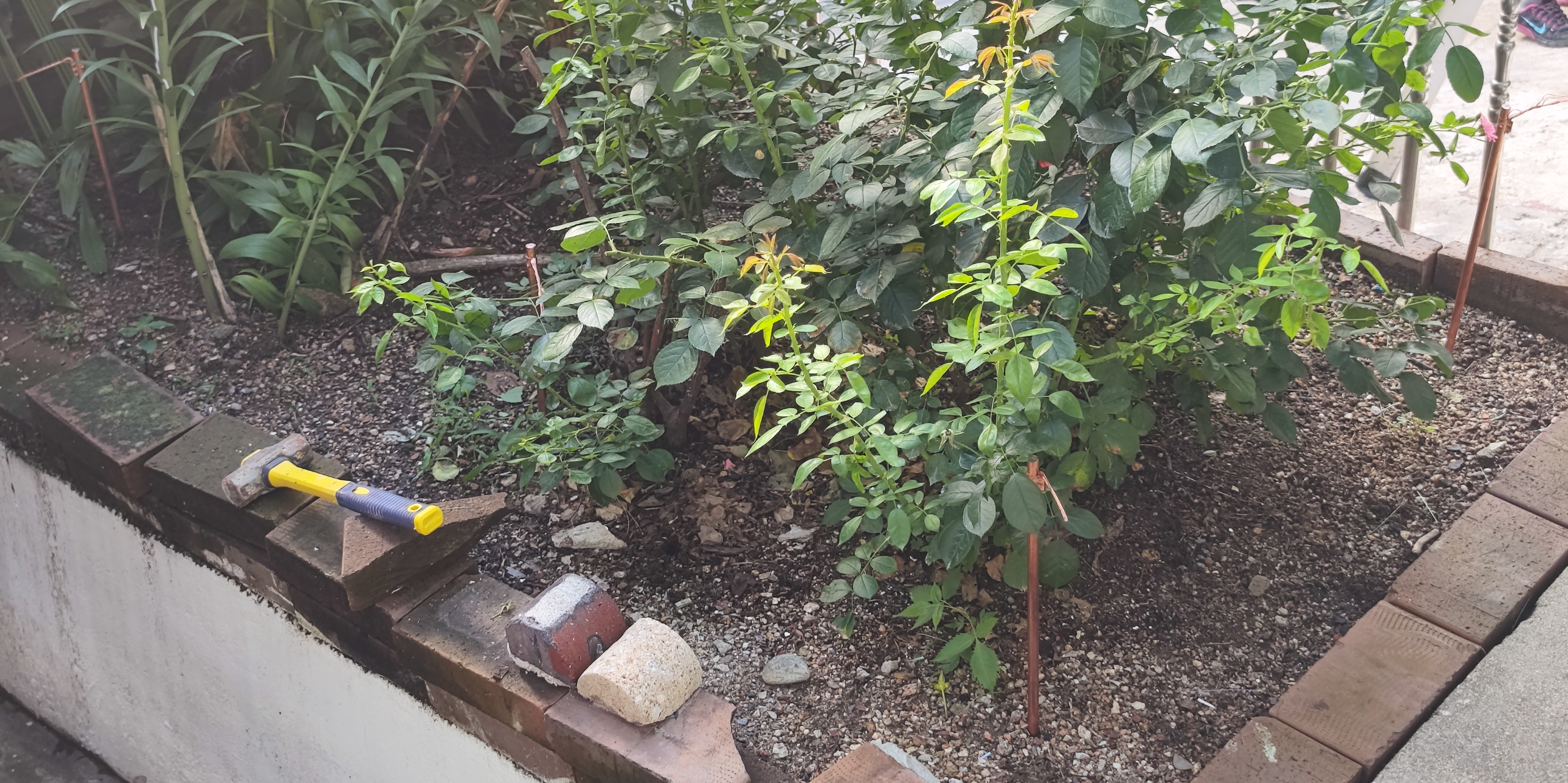 필자의 경우 화단의 깊이를 알 수가 없어서 0.5M 접지봉을 6개 묻어줬다.