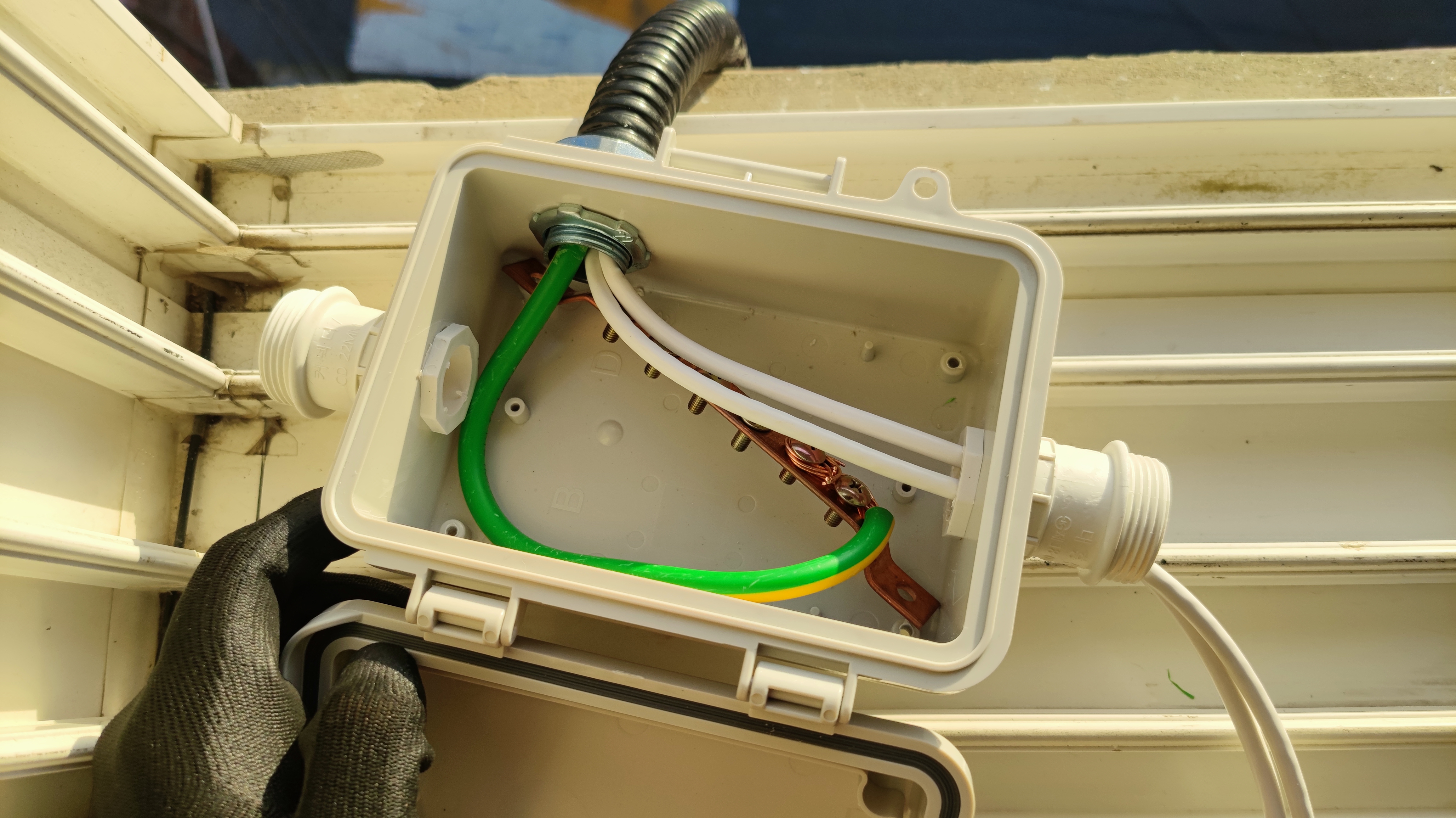 전기공사용 방수 하이박스를 구입해서 내부에 접지용 바를 설치하거나 실내외 연결 등 다양한 용도로 사용한다.