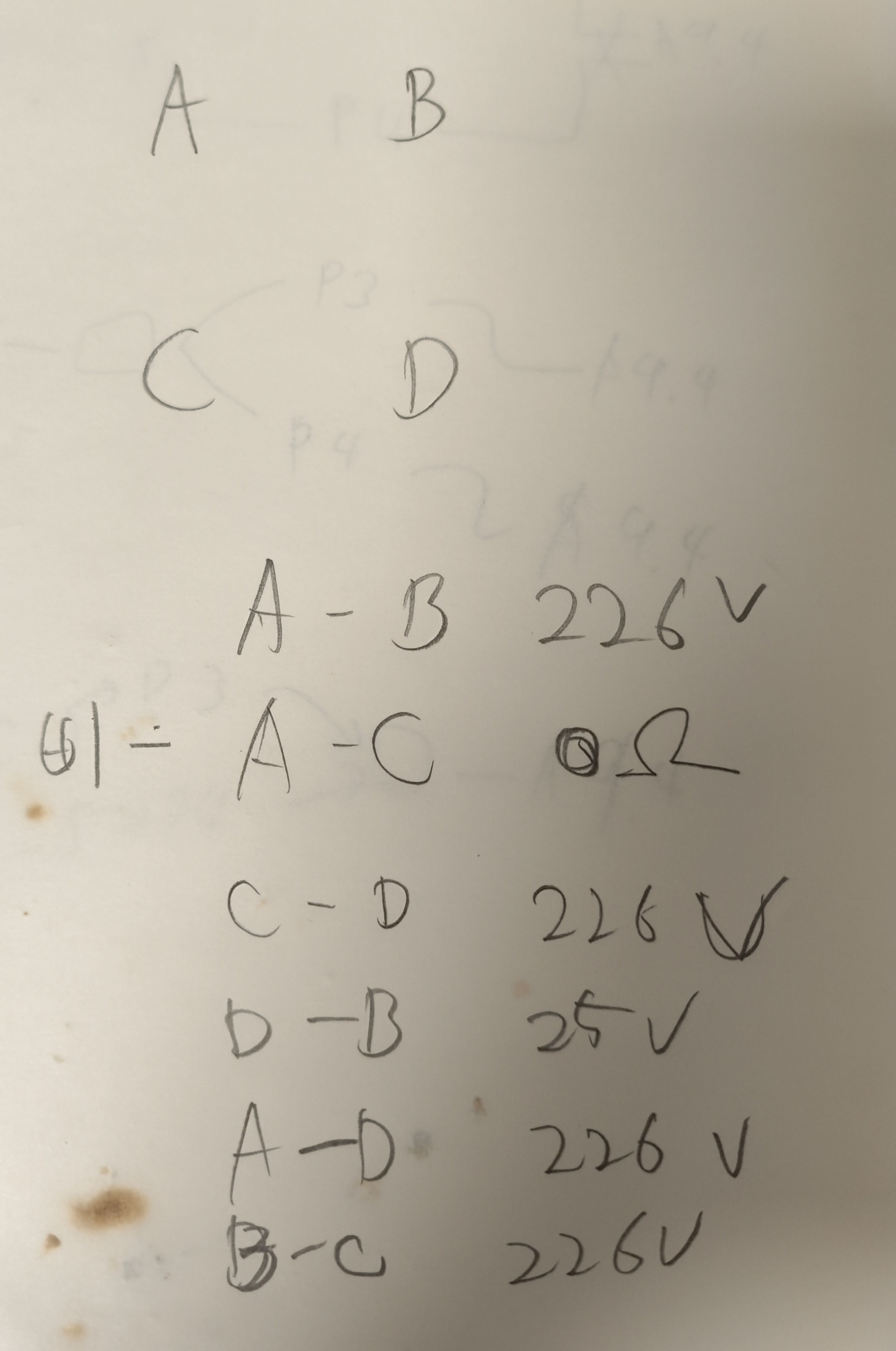 아래 노트를 보면 A, C 라인이 Neutral 라인이고, B, D 라인이 Live 였다.