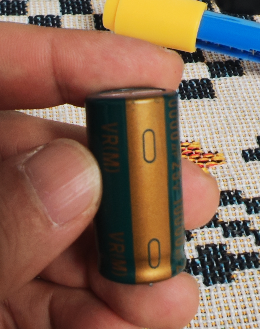 그리고 커패시터 외관을 보면 - 나 타입 C 단자 같은 모양이 인쇄된 다른 색상 무늬 부분이 있는데 이 쪽 방향이 - 단자 쪽이기 때문에 이를 잘 숙지하고 작업하면 된다.