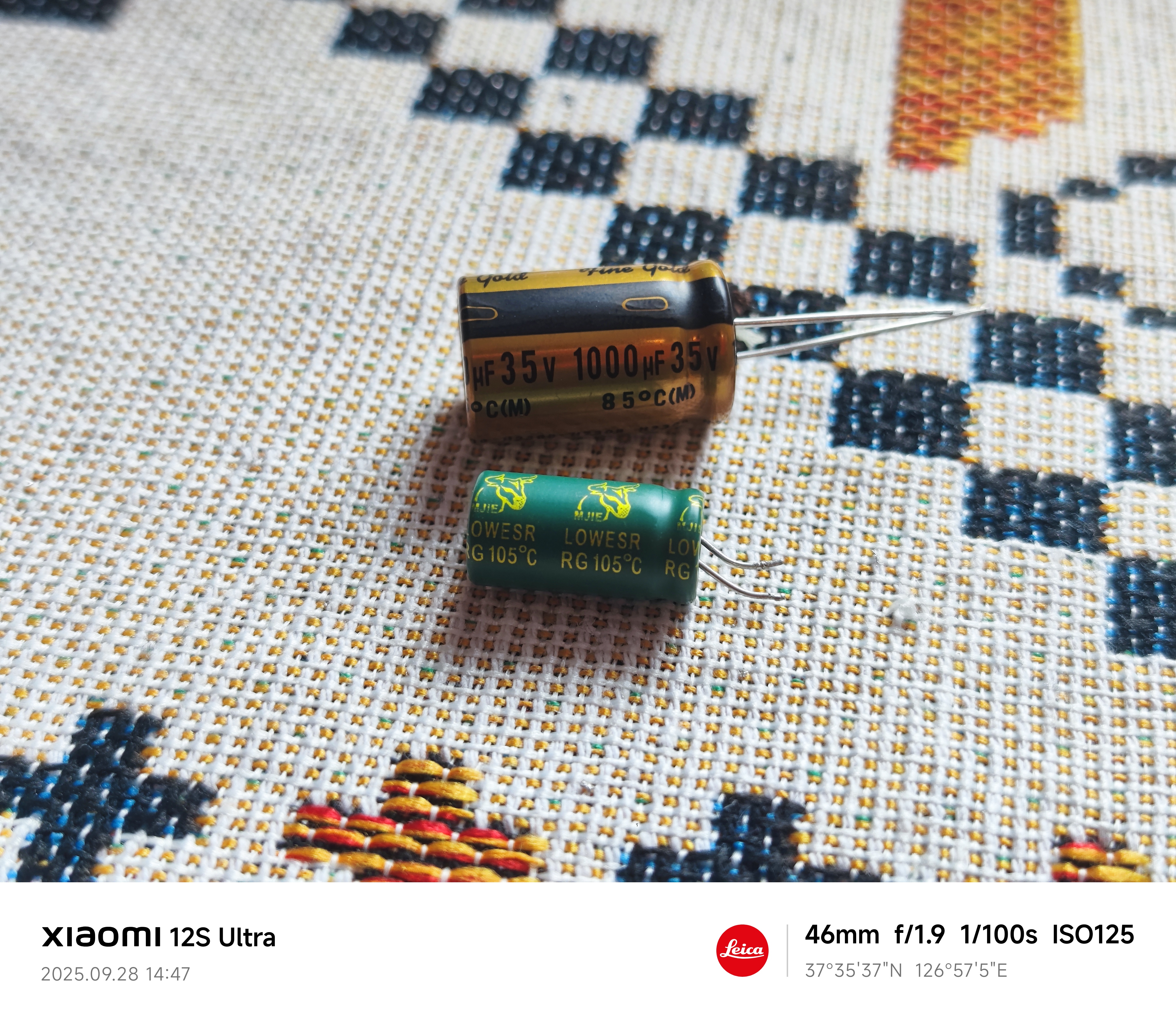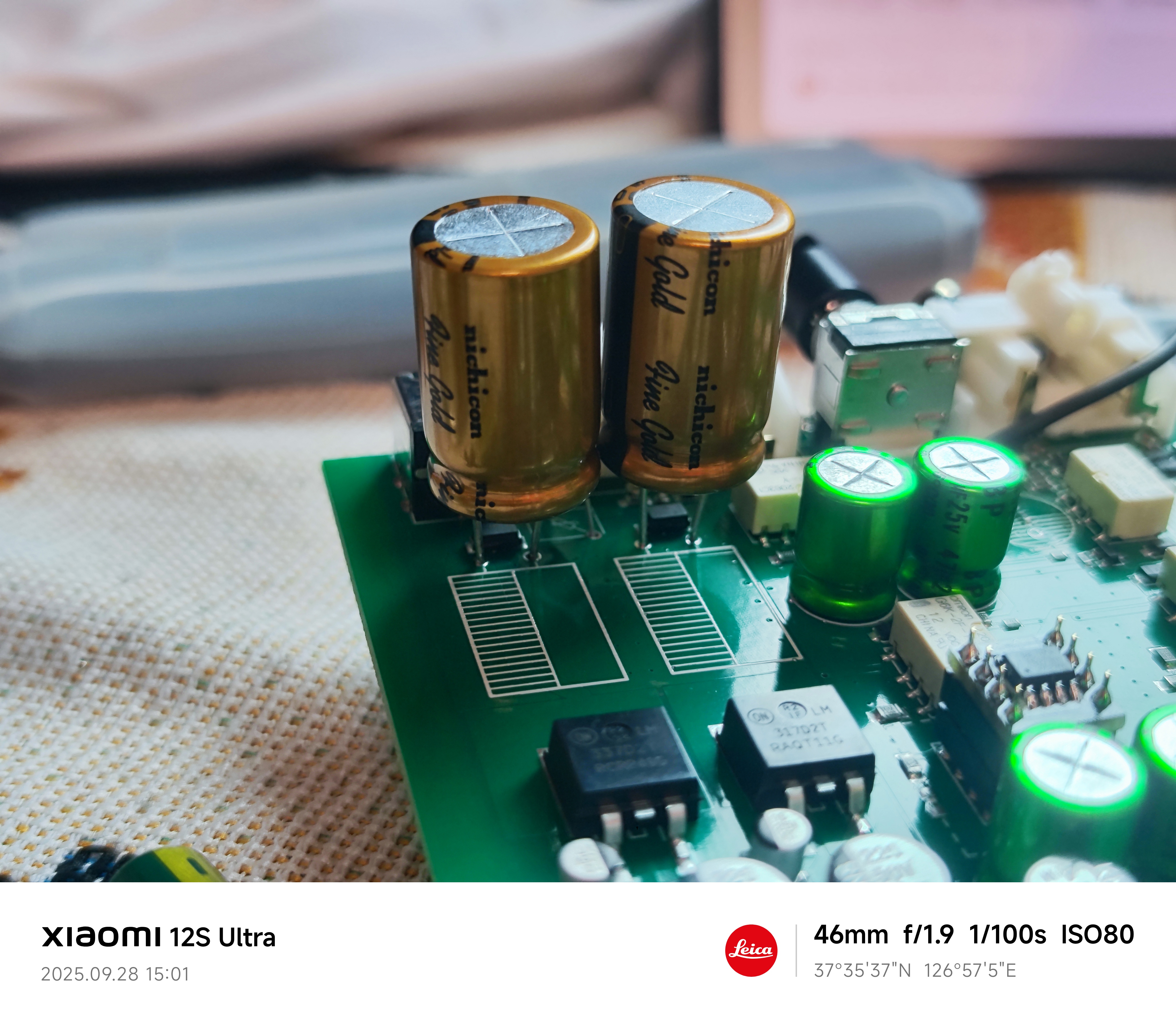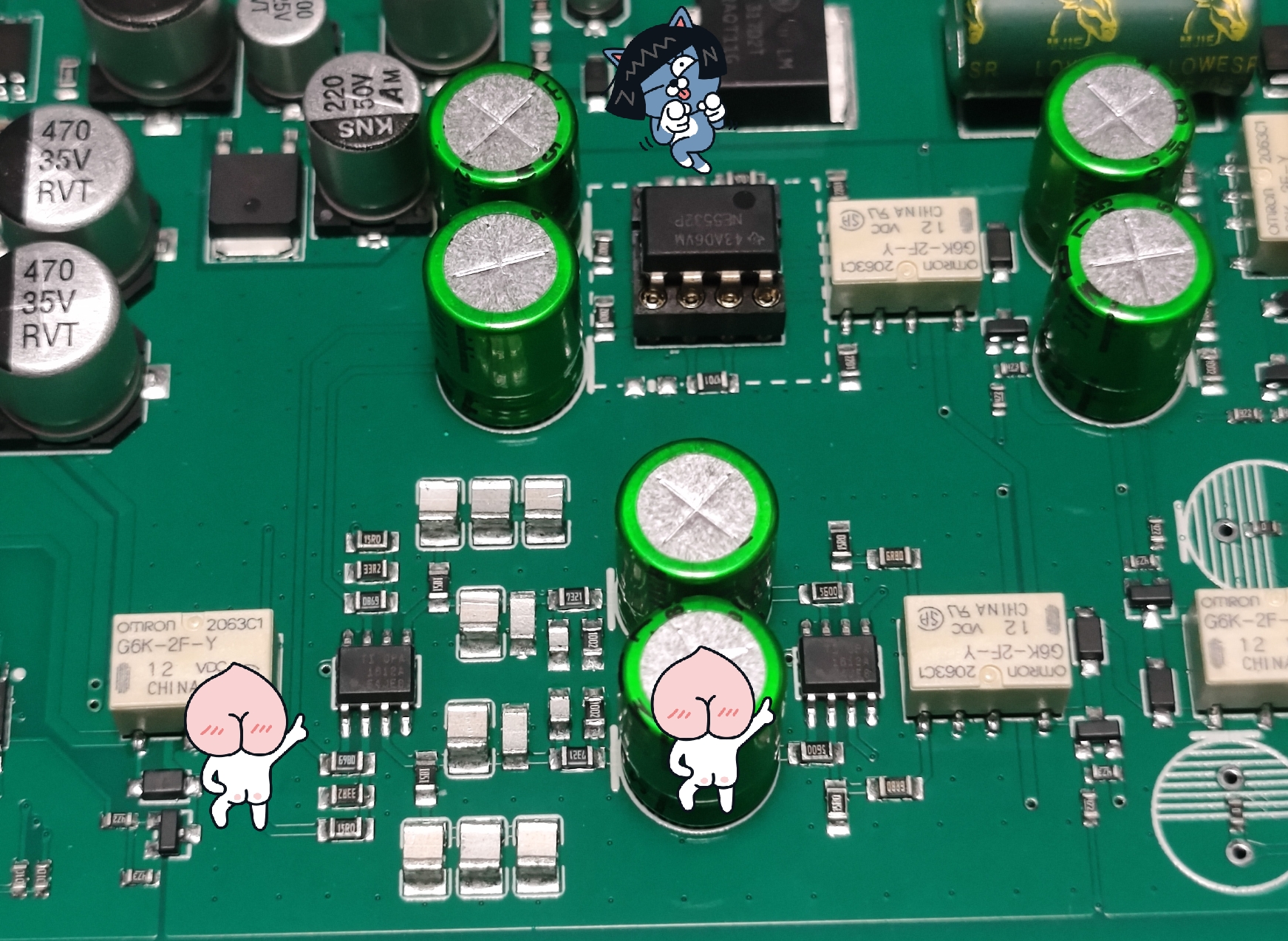 중국산 커패시터인 MJIE의 커패시터는 특유의 황소 머리 프린팅이 인상적인데, 이 부분을 상급 or 오디오그레이드 커패시터로 교체하면 큰 효과를 볼 수 있다.