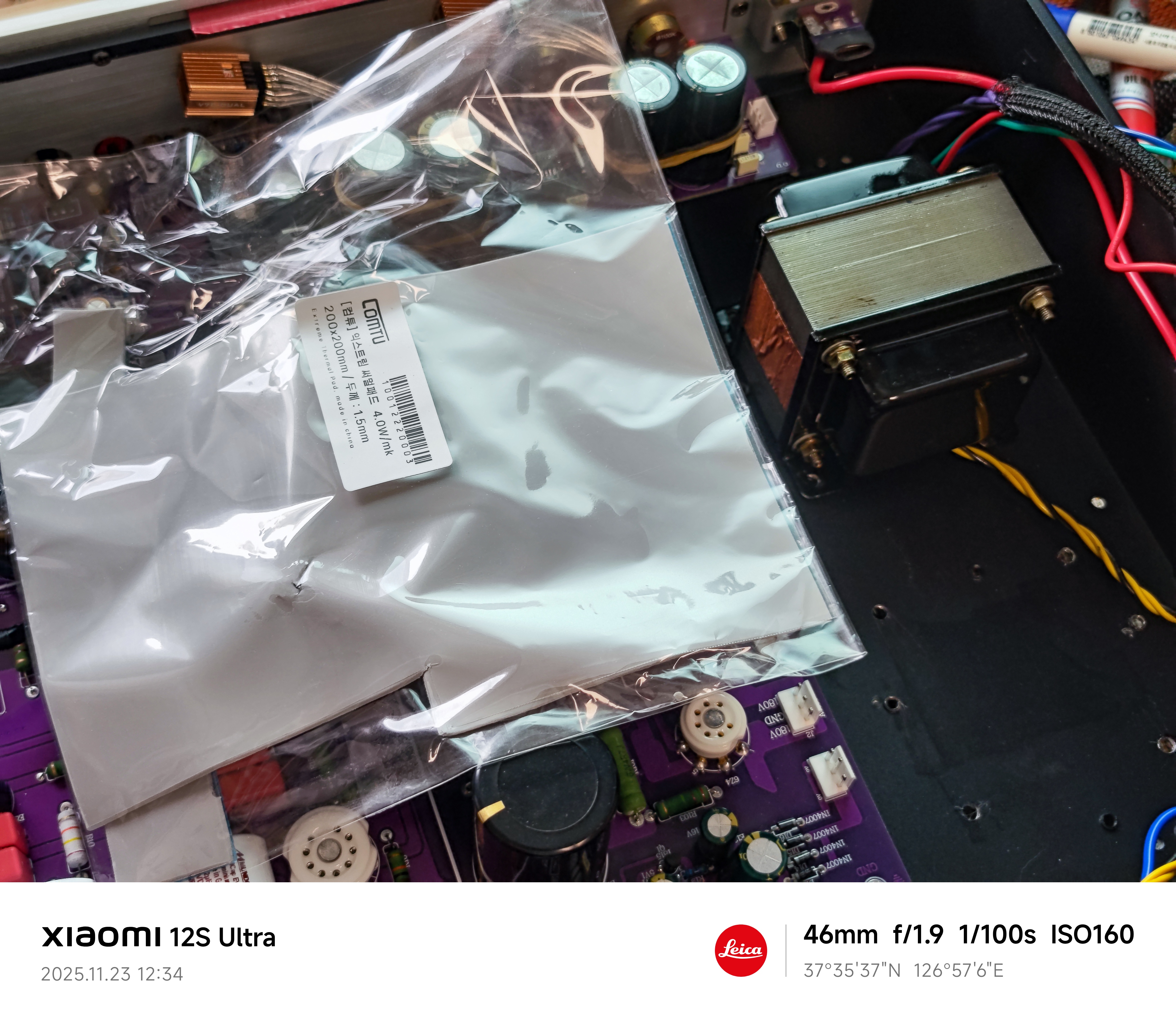 트랜스에서 발생하는 진동과 열을 흡수하기 위한 조치로 써멀패드(열전도 패드)를 트랜스 하단에 부착하였다.